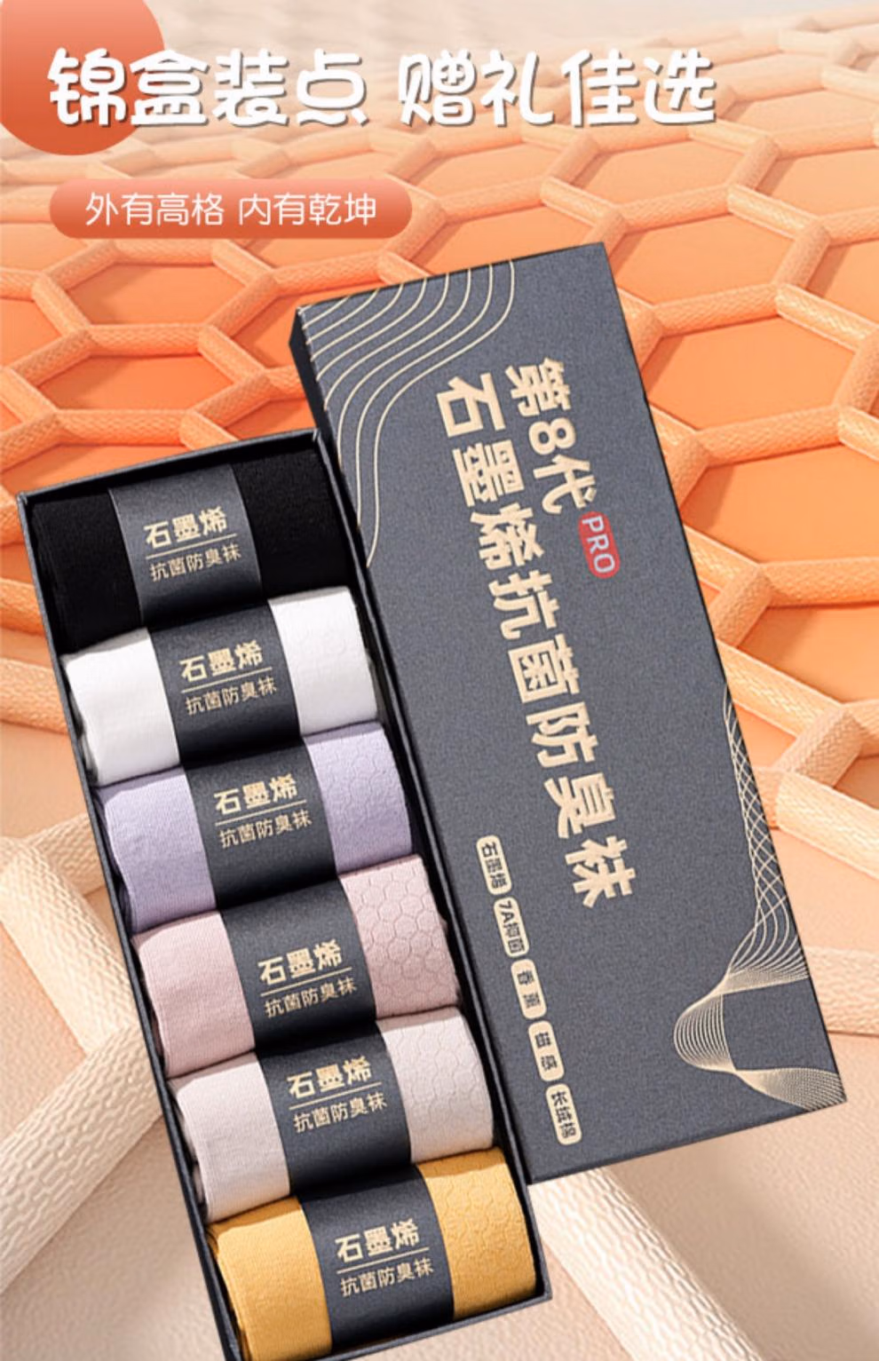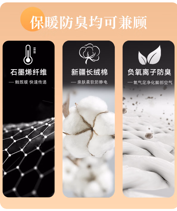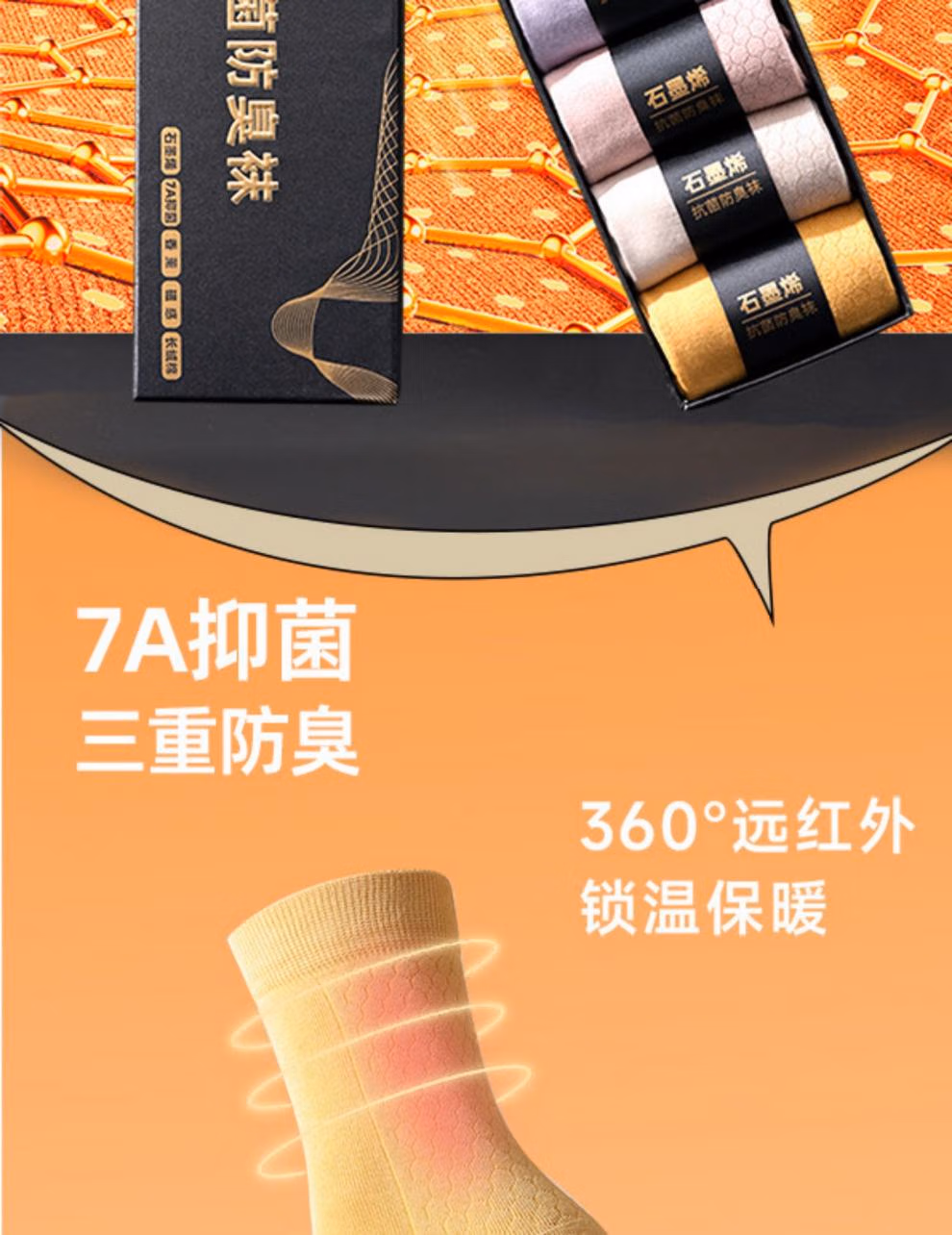 DEATKN德国石墨烯袜子加热防寒男女士冬保暖袜暖脚lh 【6双长筒-黑色】穿上即热24小时保暖