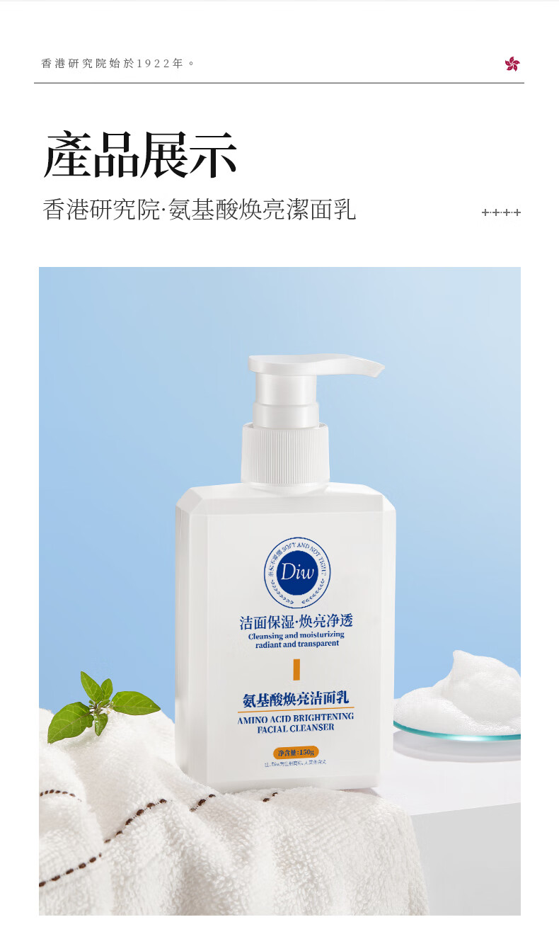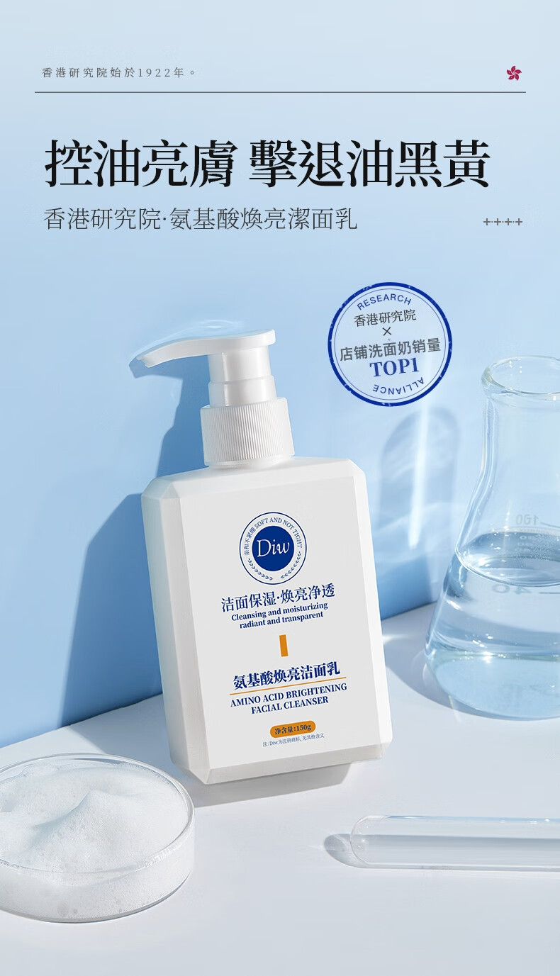DIW香港翳学研究院洗面奶氨基酸提亮肤色温和清洁毛孔控油男女 DIW氨基酸洗面奶 150g