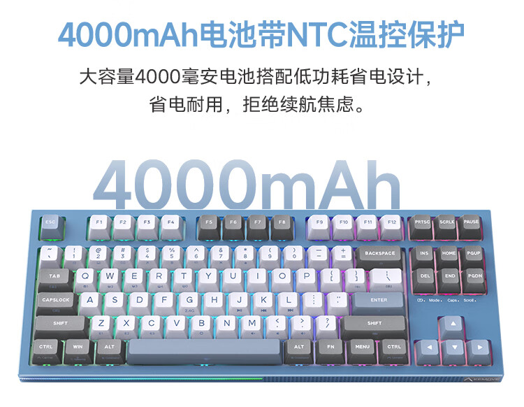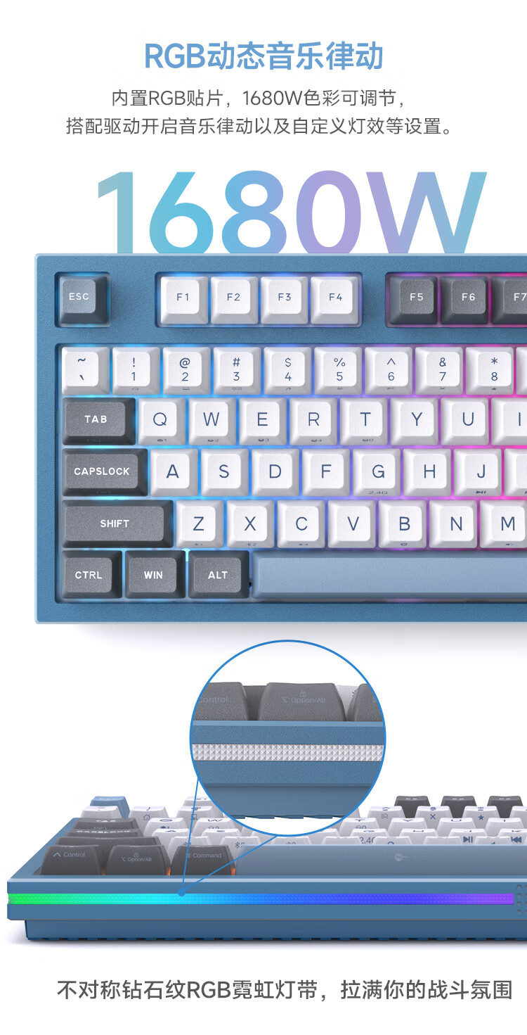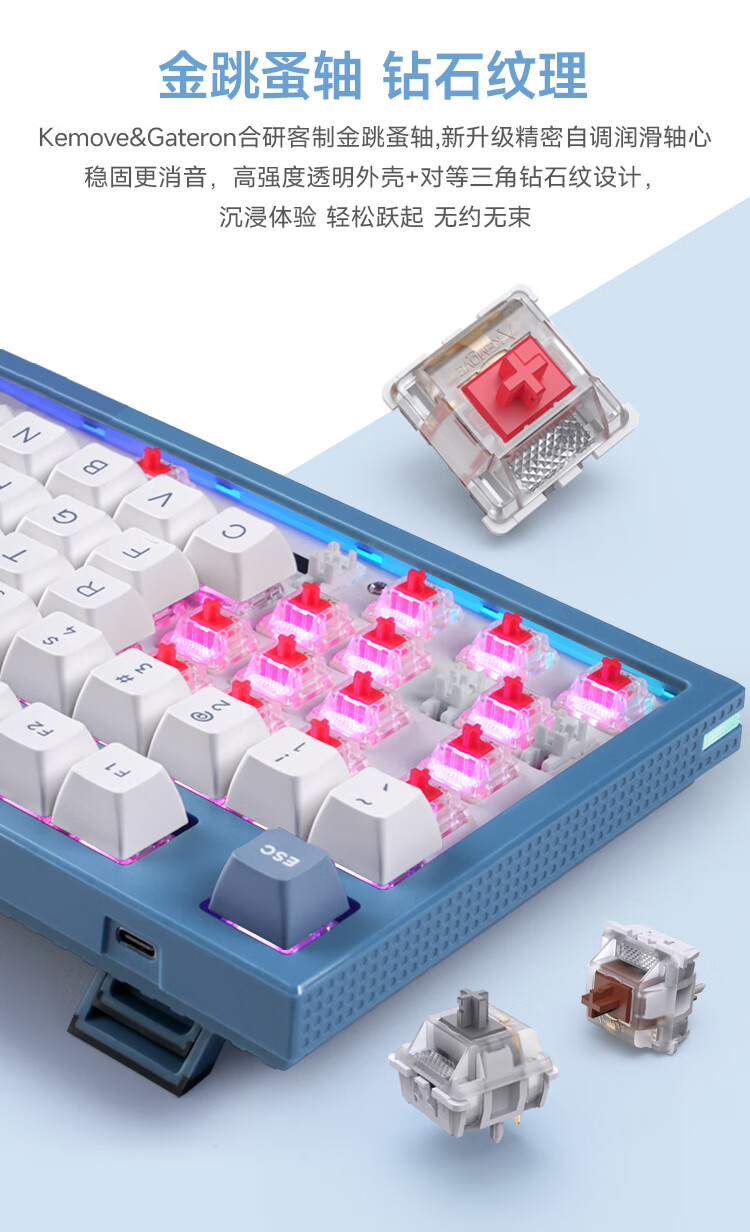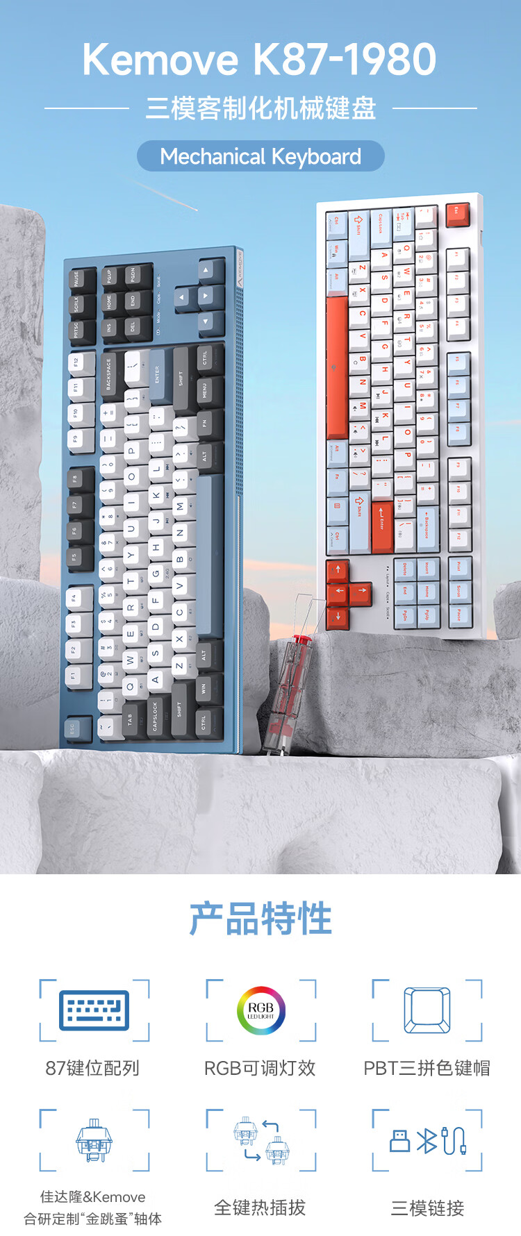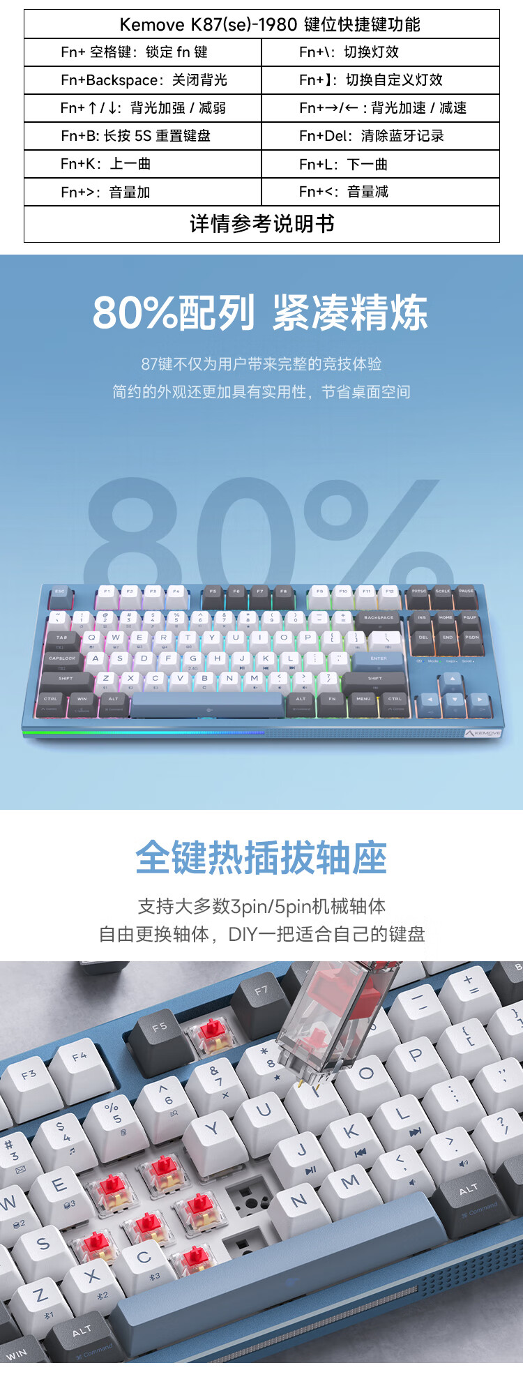 KEMOVE K87 客制化机械键盘三模全键热插拔RGB灯效电竞静音办公游戏键盘 K87 雾蓝 Gateron联合定制 红轴