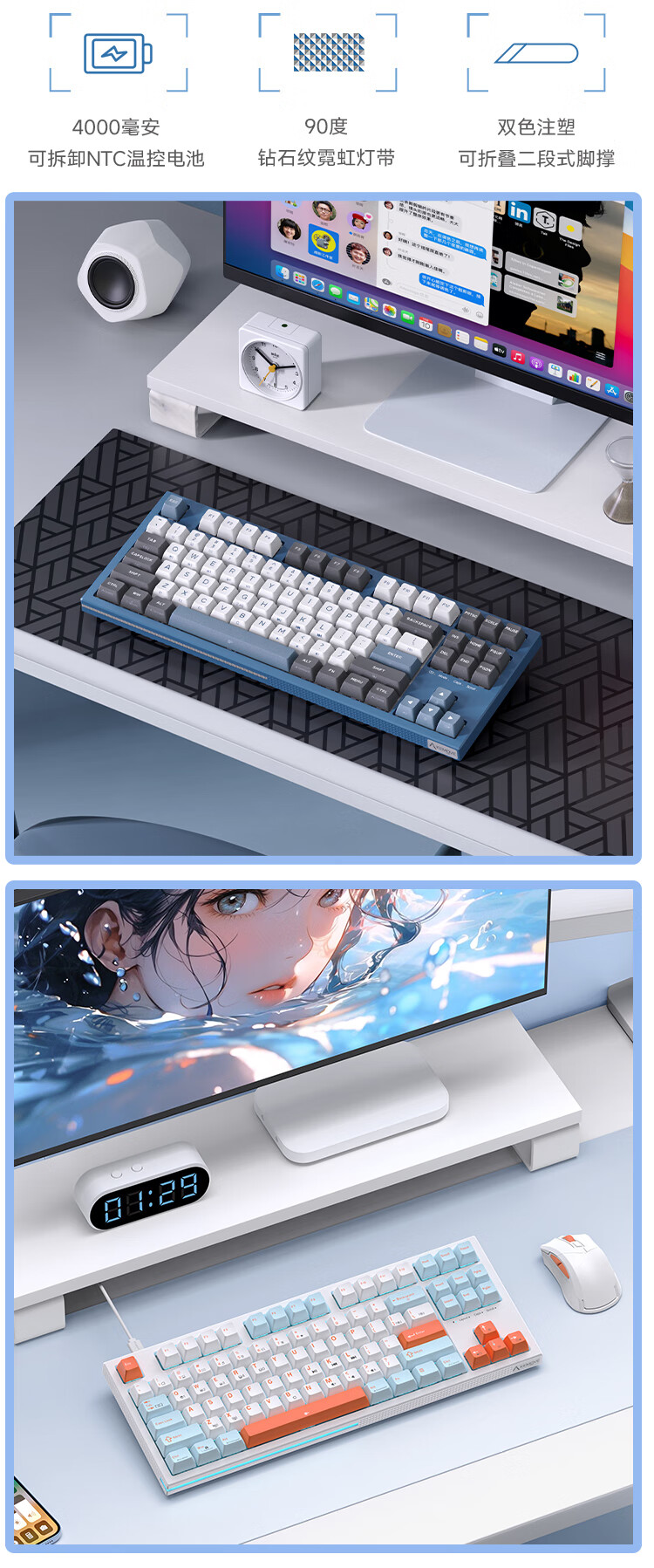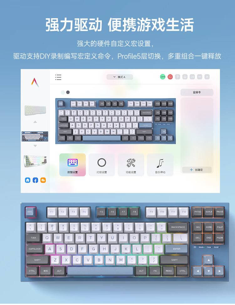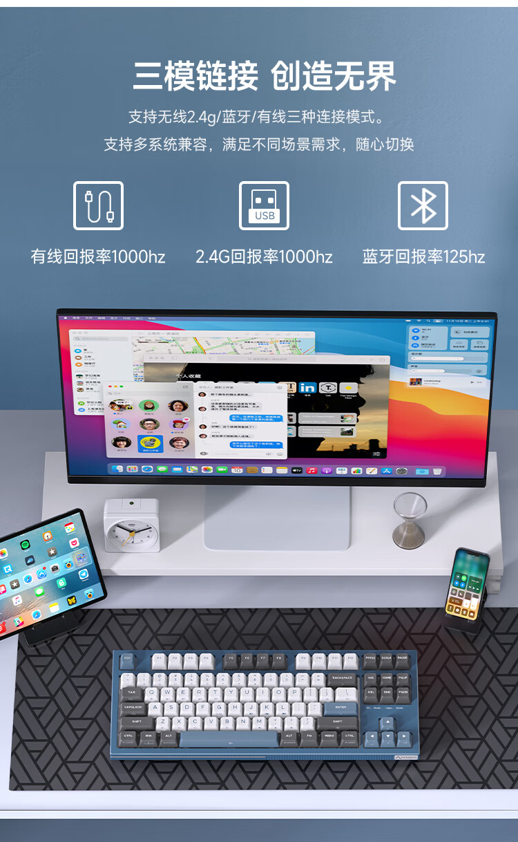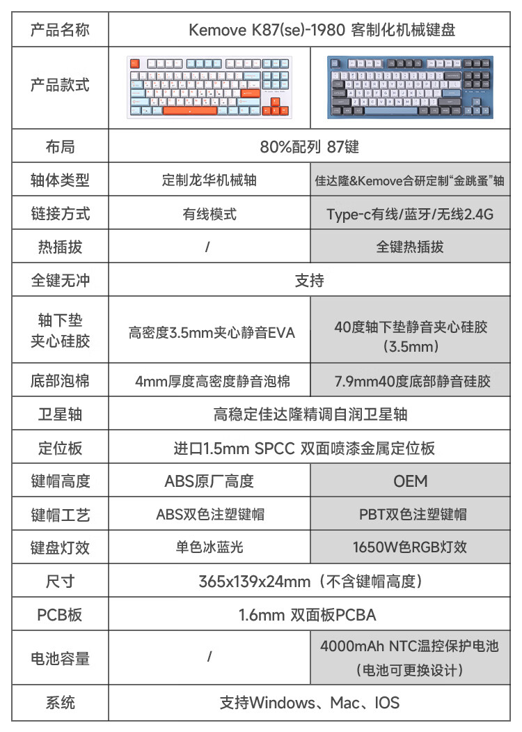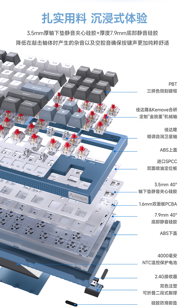 KEMOVE K87 客制化机械键盘三模全键热插拔RGB灯效电竞静音办公游戏键盘 K87 雾蓝 Gateron联合定制 红轴