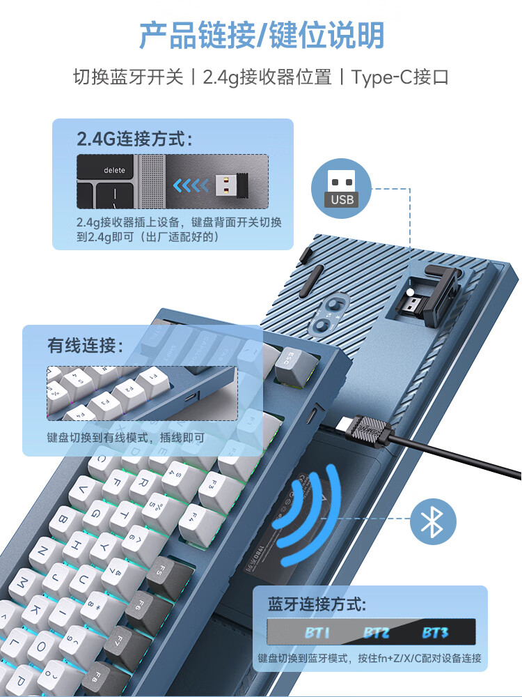 KEMOVE K98 无线机械键盘蓝牙三模客制化全键热插拔双层夹心硅胶填充游戏电竞办公键盘 K98 霓虹 Gateron联合定制 红轴