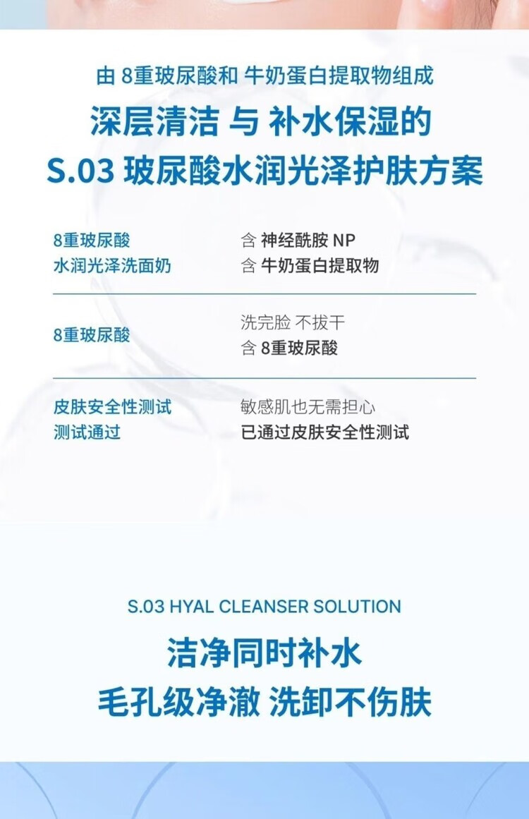 韩国进口S.03玻尿酸补水保湿洗面奶进口温和提亮不刺激水润 1支