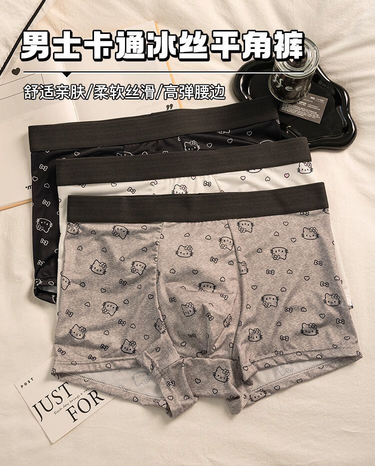 开始绽放(KALL'S BLOOMS)【礼盒装】甜恋心蒂*男士内裤可爱卡通冰丝薄款宽松四角平角裤 礼盒:心蒂白+心蒂灰+心蒂黑 3XL 建议体重145-170斤