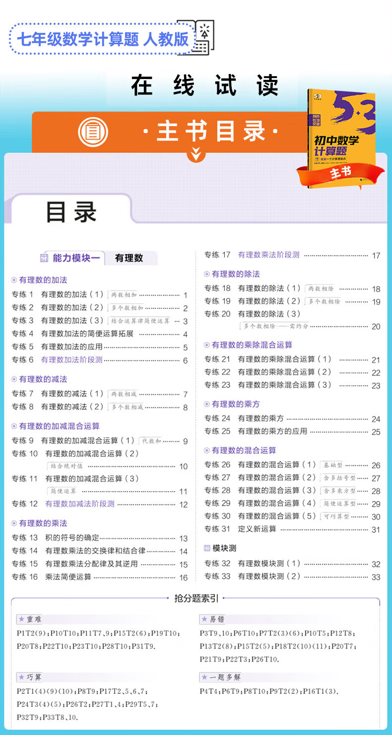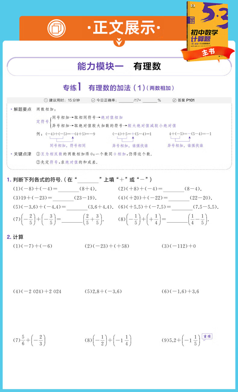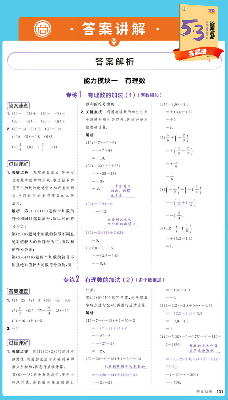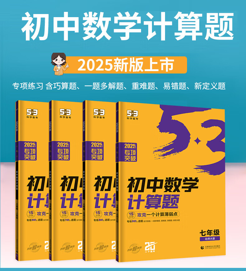 25版初中53五三语文数学英语专项突破 七年级计算题-人教