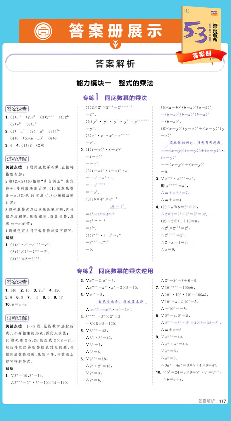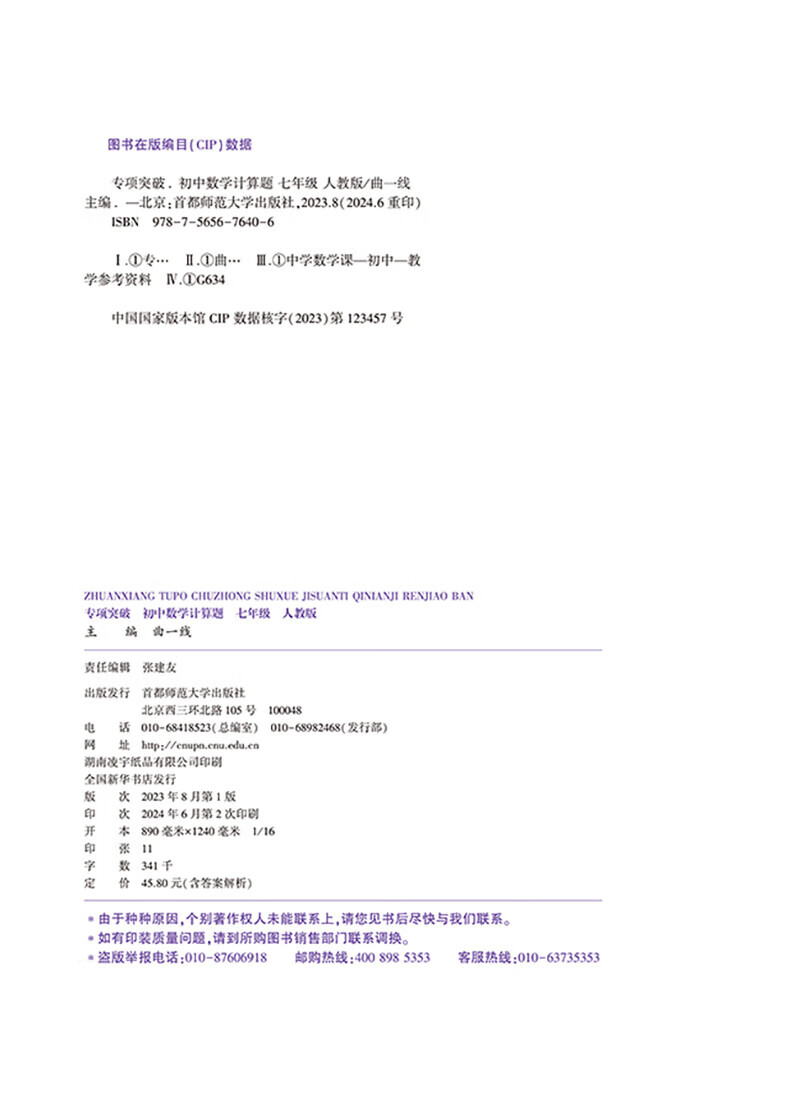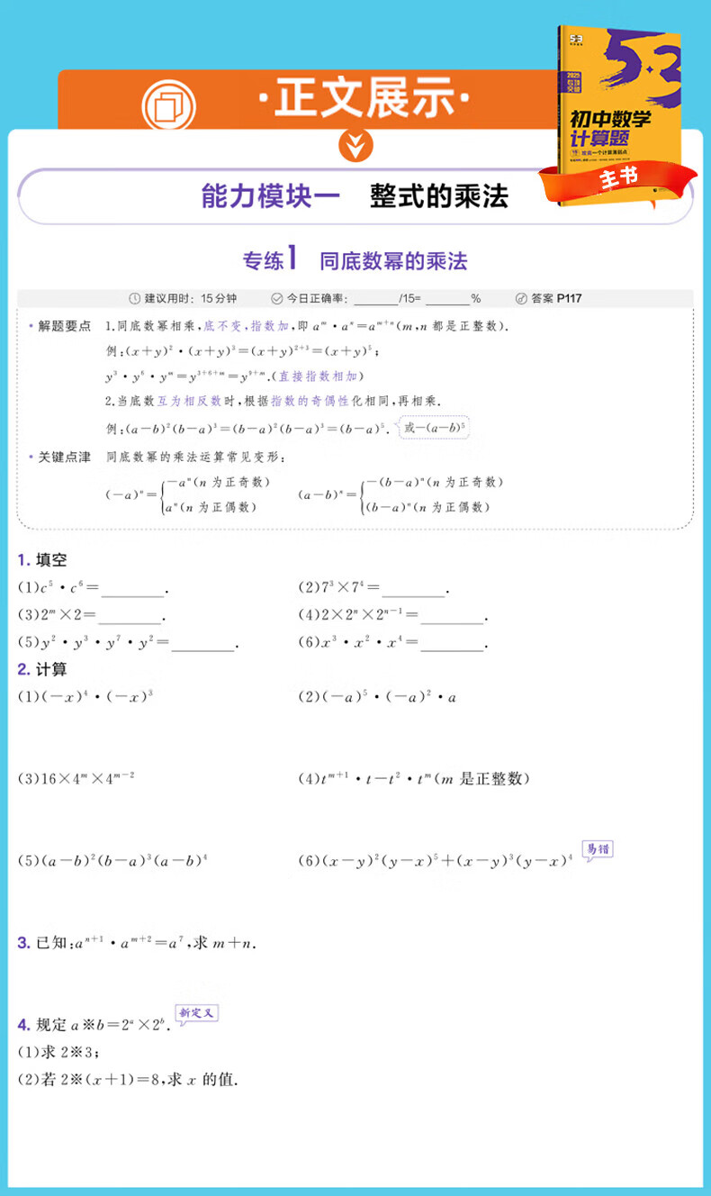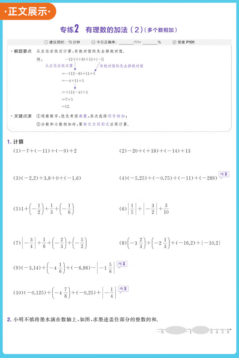 25版初中53五三语文数学英语专项突破 七年级计算题-人教