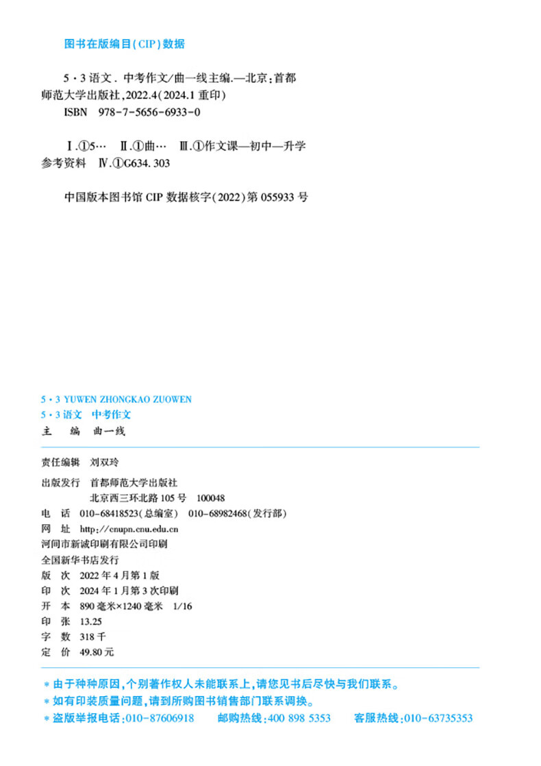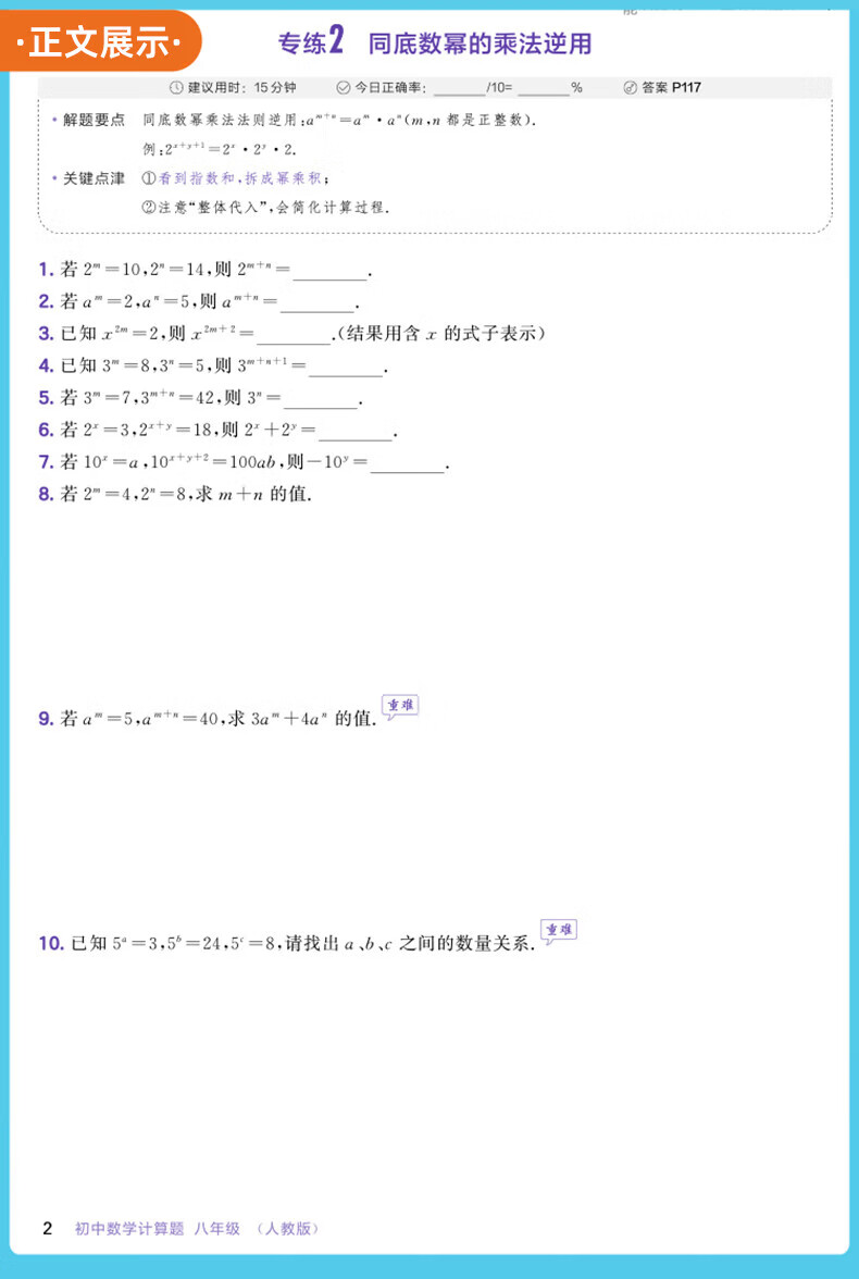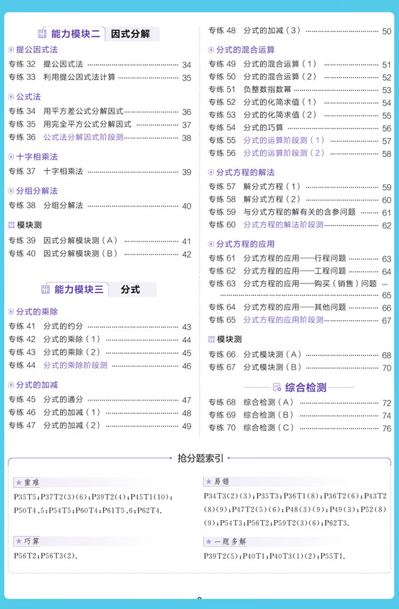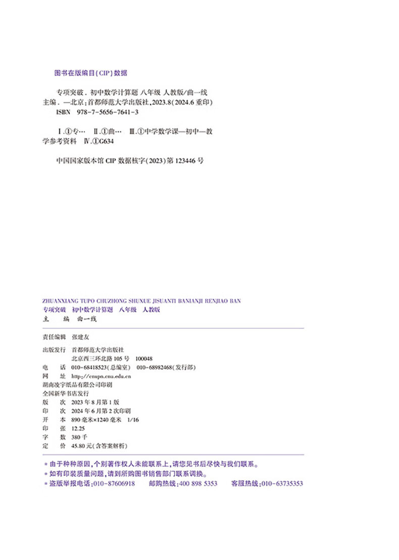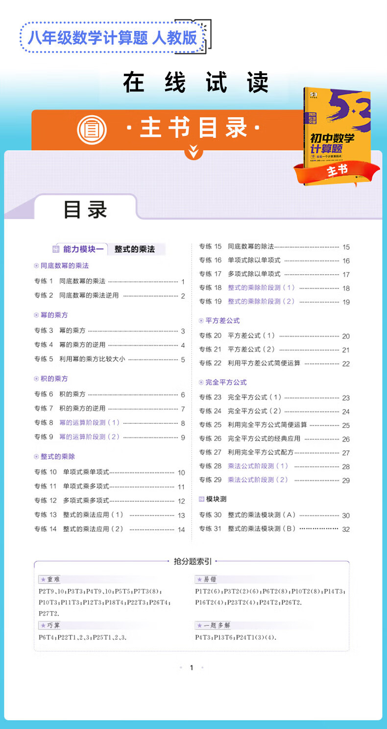 25版初中53五三语文数学英语专项突破 七年级计算题-人教
