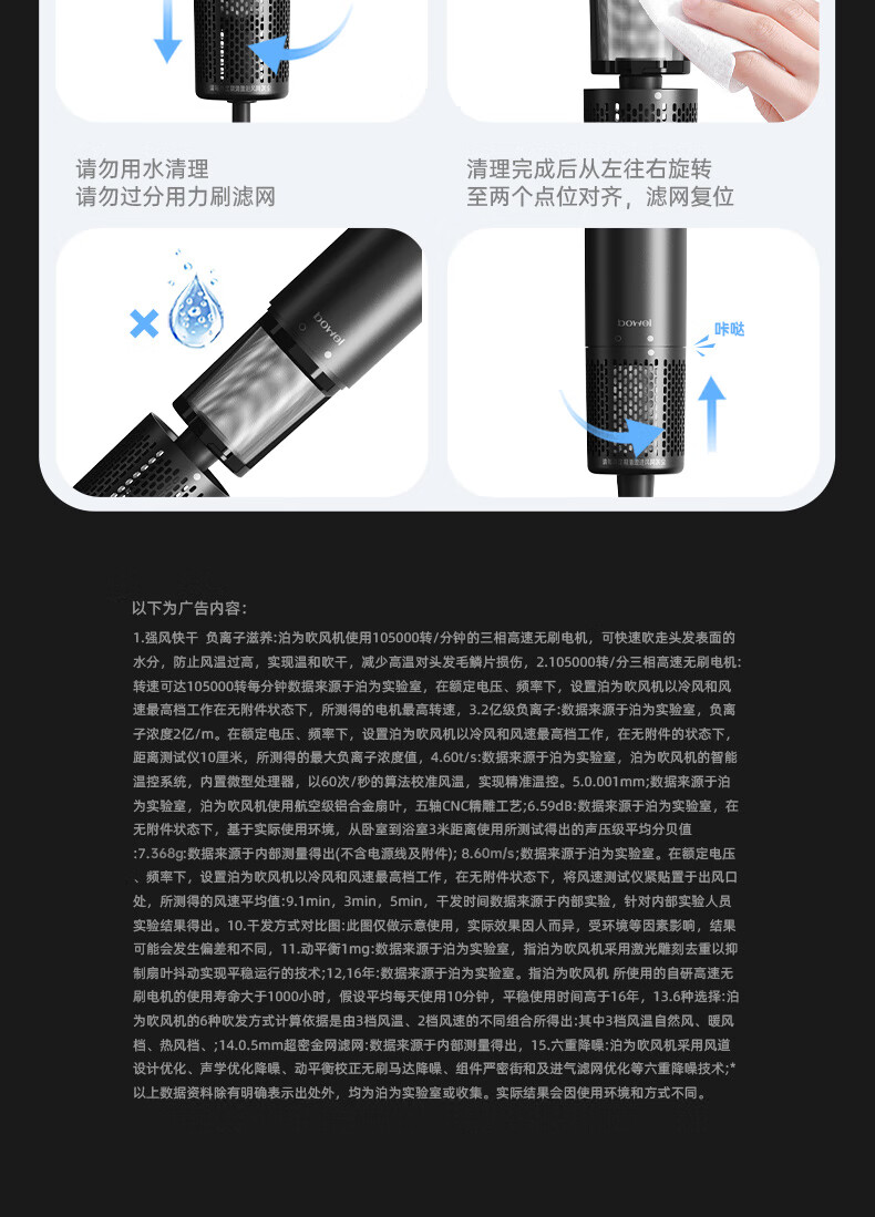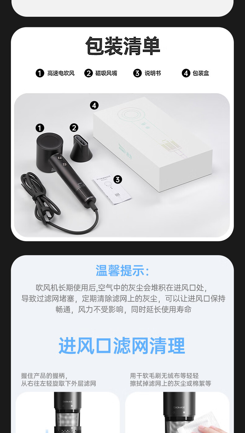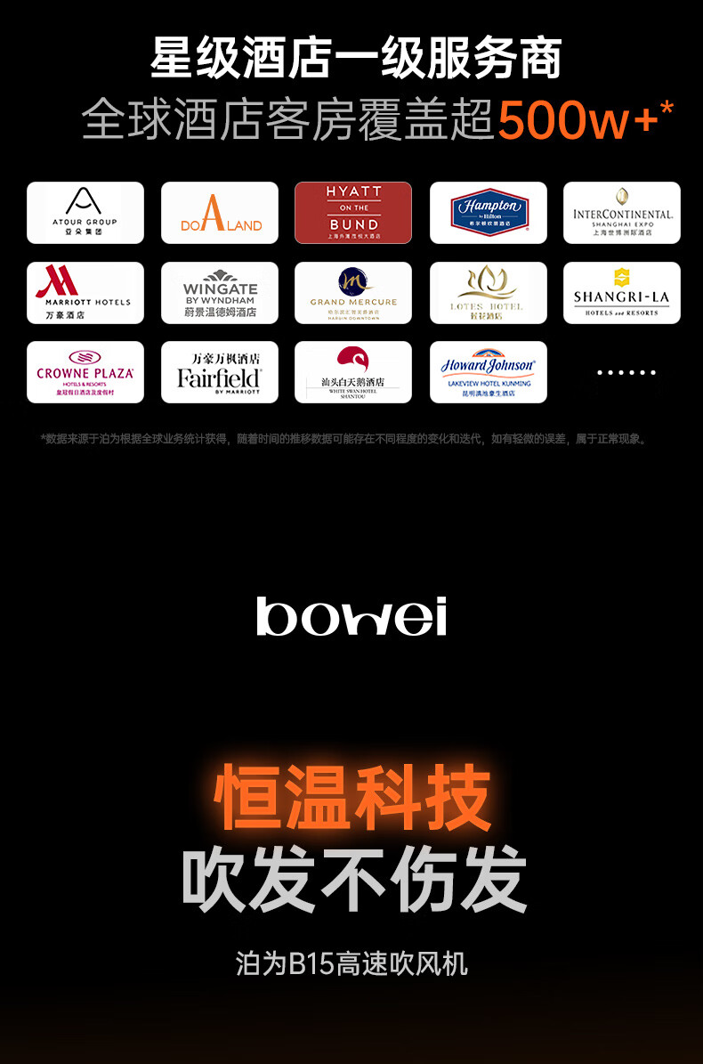 泊为(BOWEI)高速吹风机B15家用大风力速干负离子不伤发恒温低噪便携无叶电吹风筒情人节生日礼物亚朵酒店同款 B15太空灰 【亚朵酒店同款】