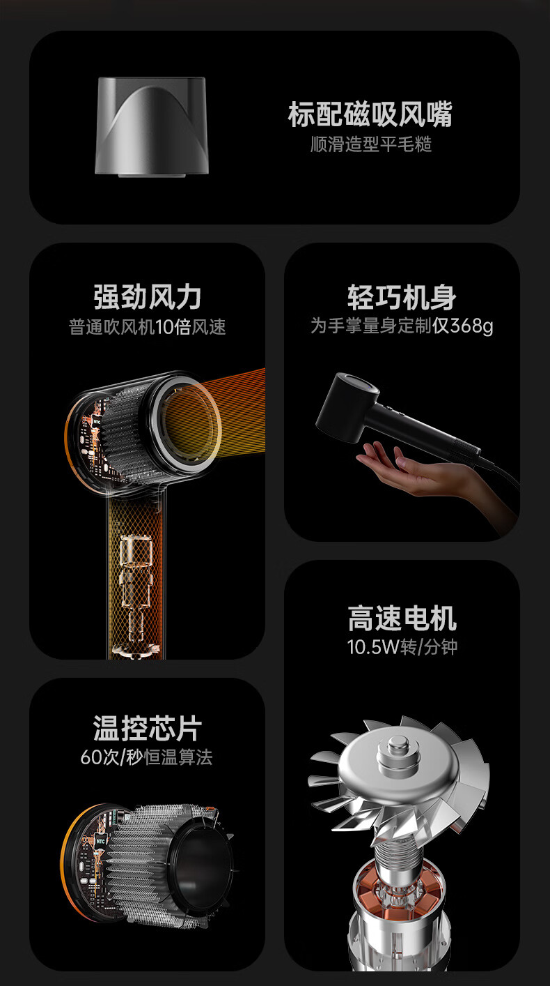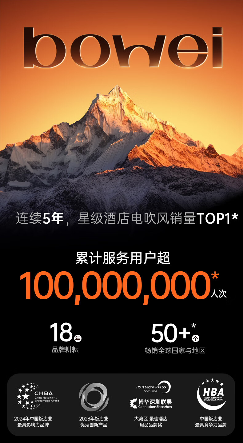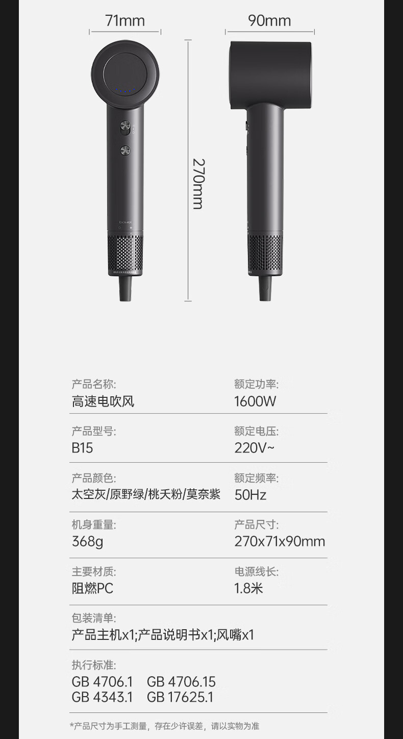 泊为(BOWEI)高速吹风机B15家用大风力速干负离子不伤发恒温低噪便携无叶电吹风筒情人节生日礼物亚朵酒店同款 B15太空灰 【亚朵酒店同款】
