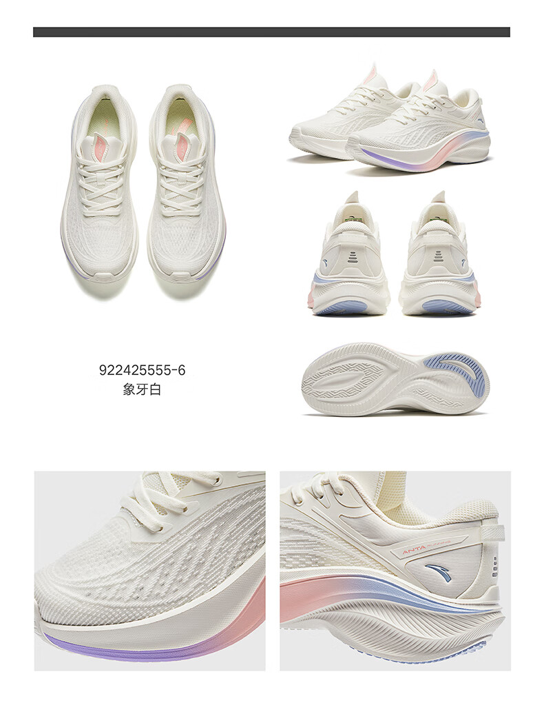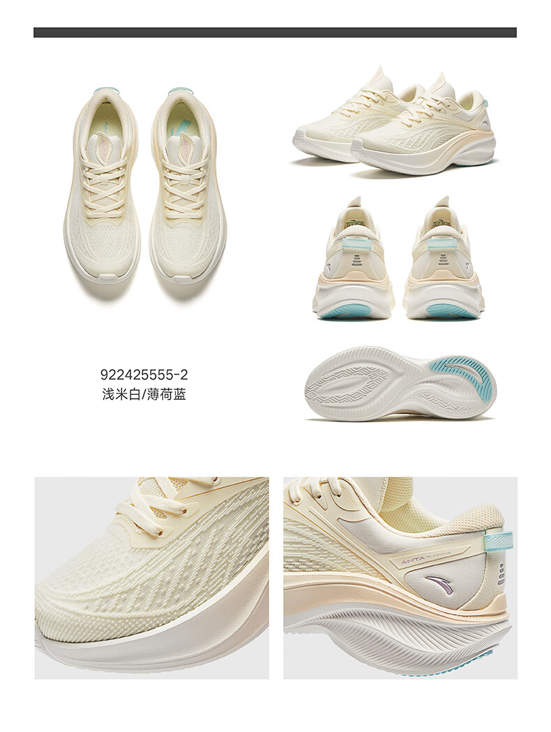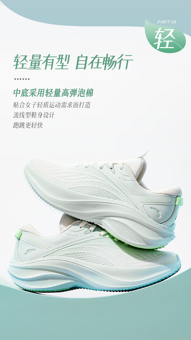 安踏叶子5丨轻质厚底跑步鞋女鞋轻便回弹减震耐磨增高运动鞋