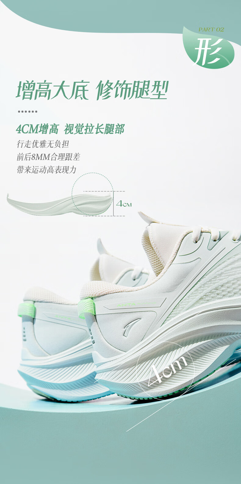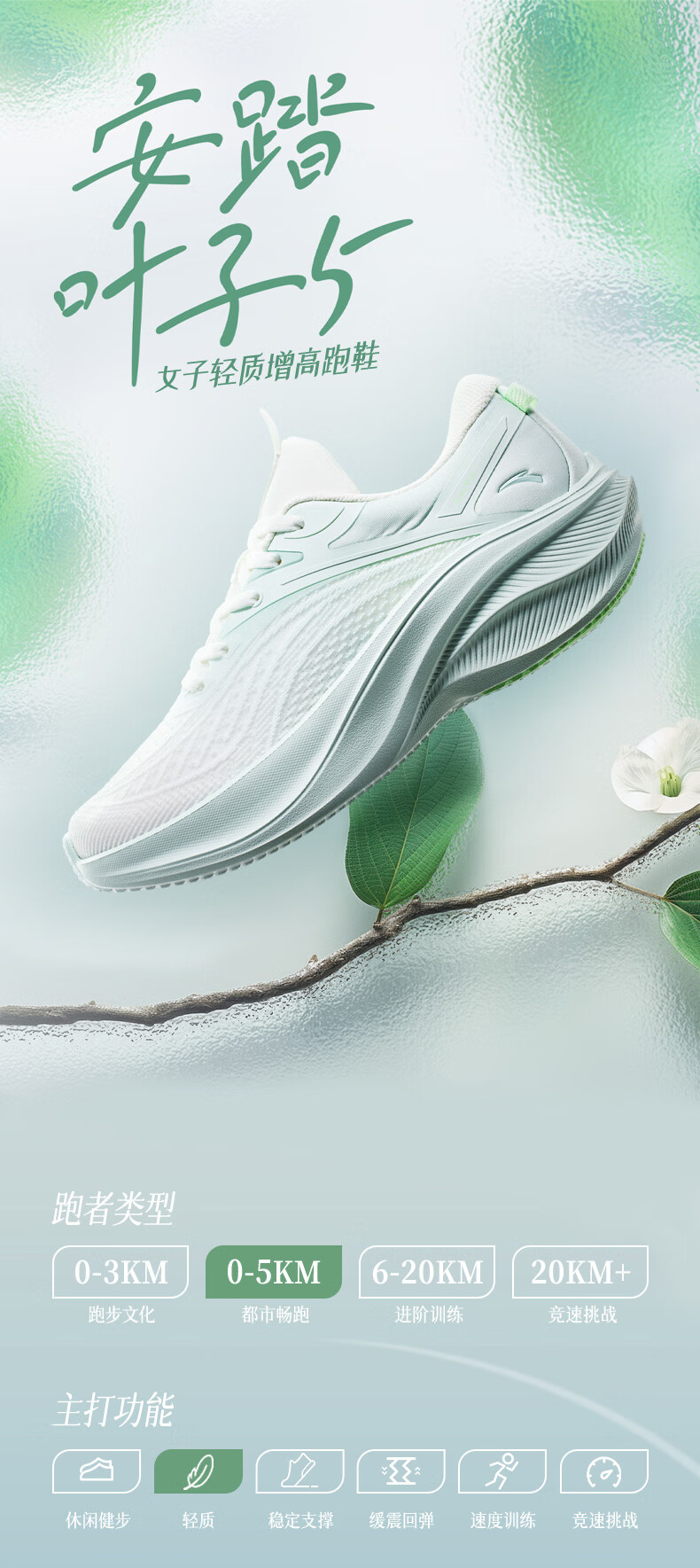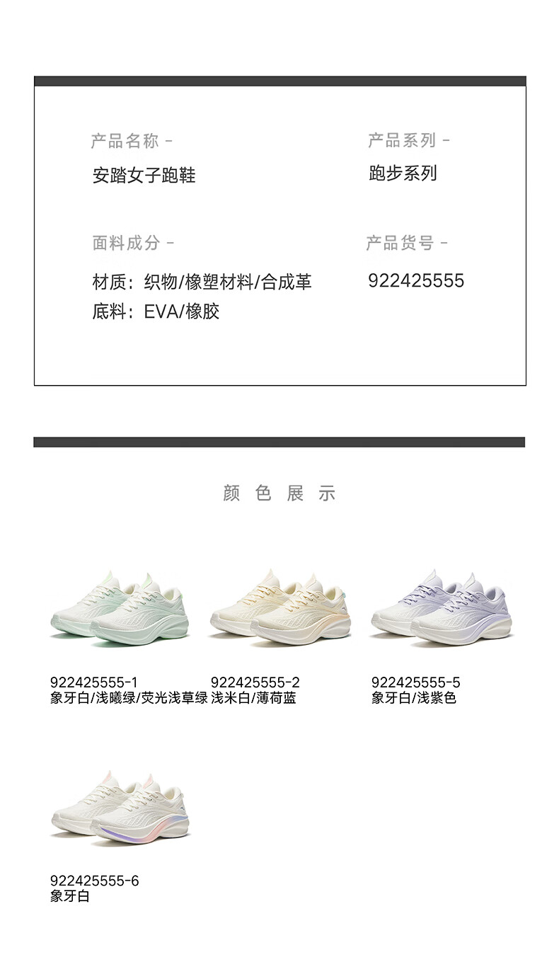 安踏叶子5丨轻质厚底跑步鞋女鞋轻便回弹减震耐磨增高运动鞋