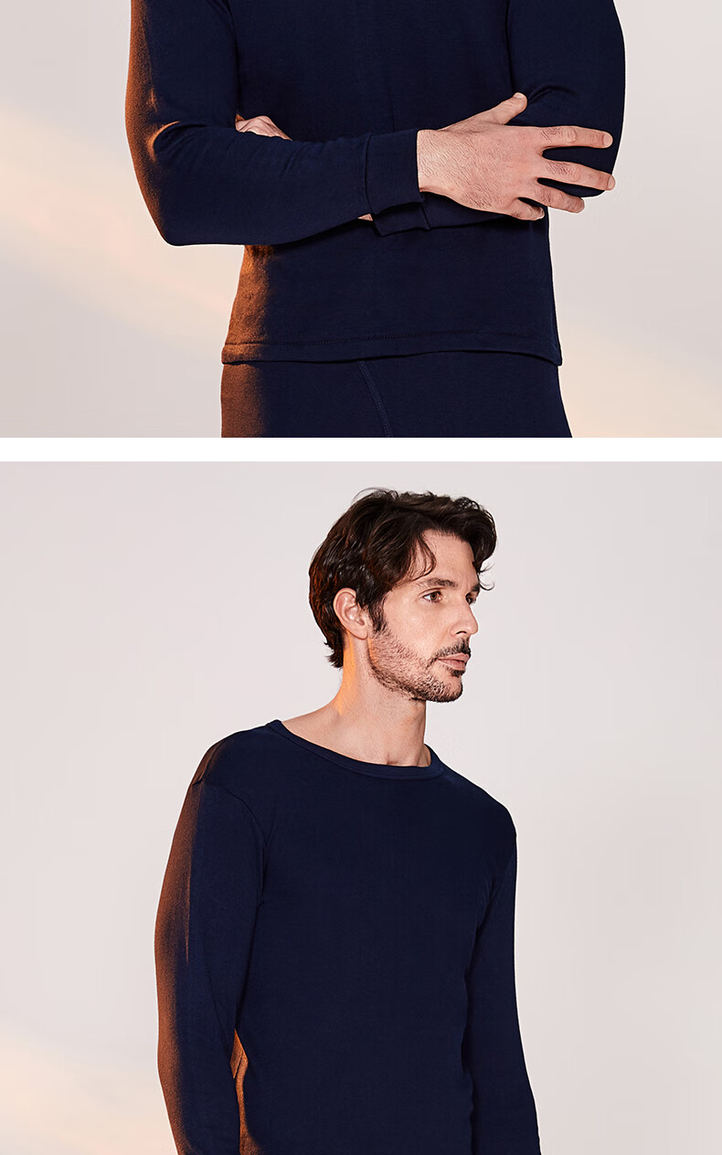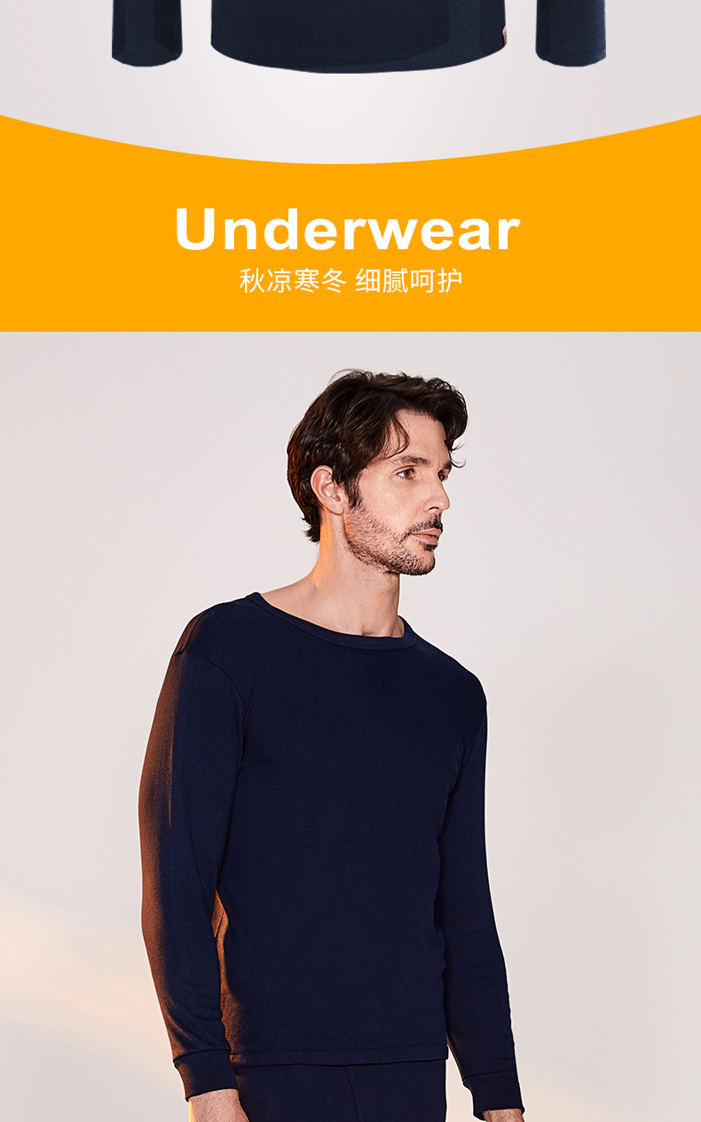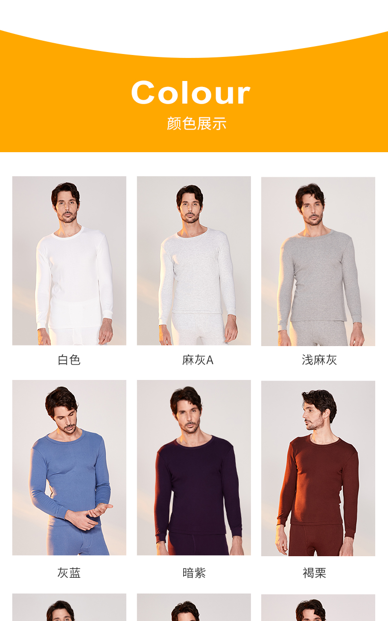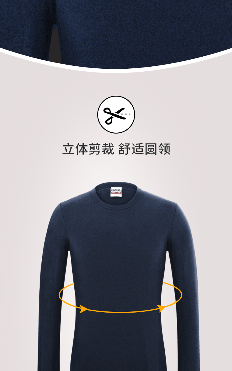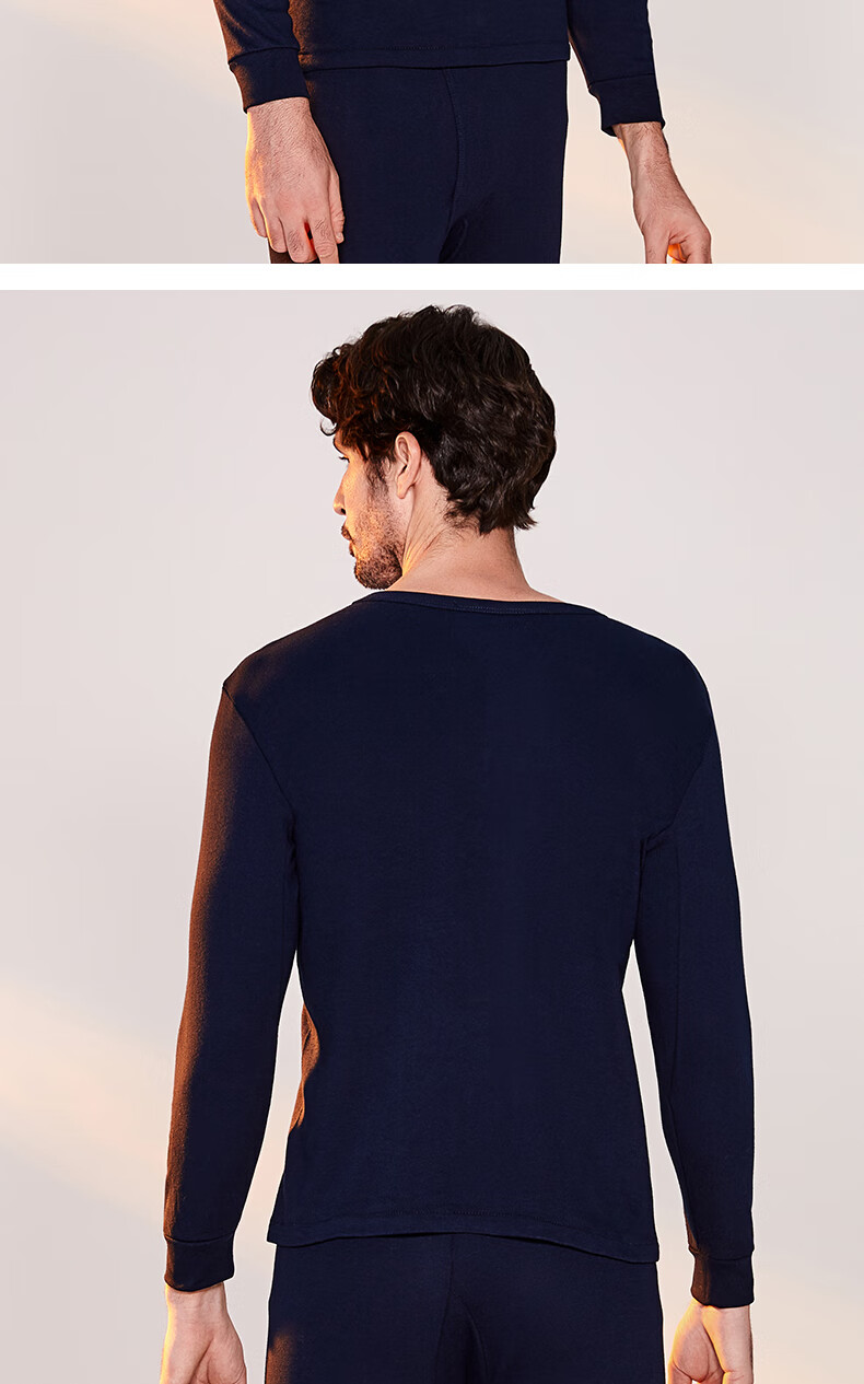 宜而爽【一等品100%纯棉】秋衣男保暖上衣全棉抗静电内衣棉毛衫秋冬