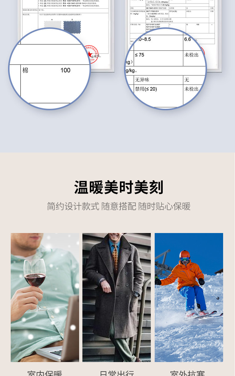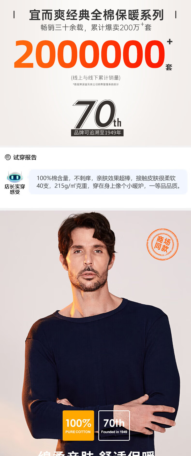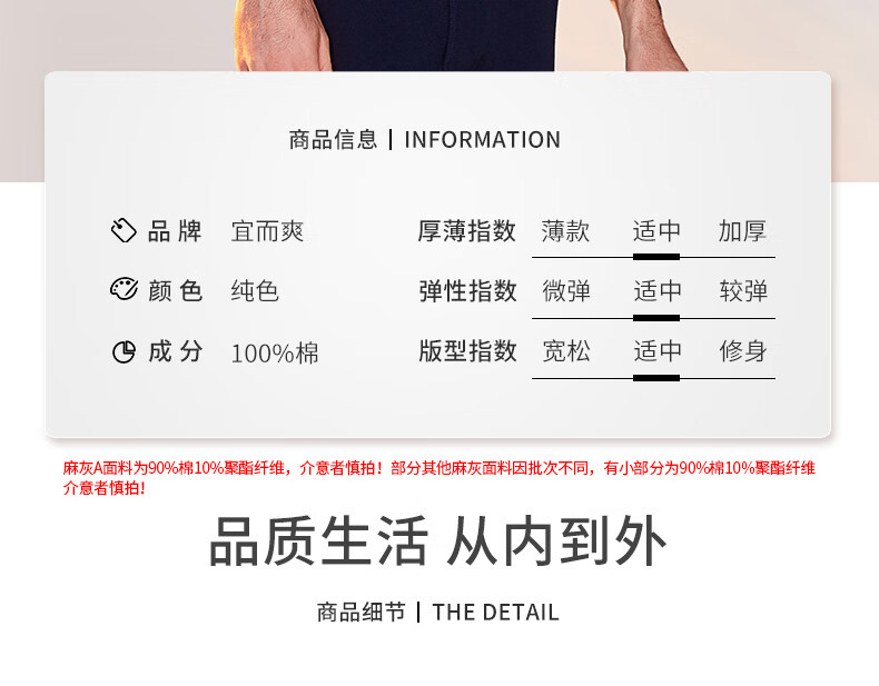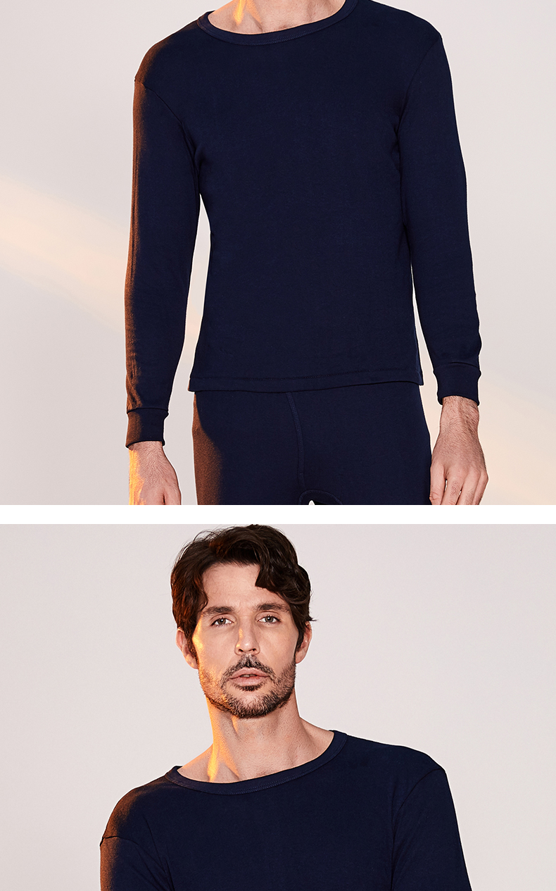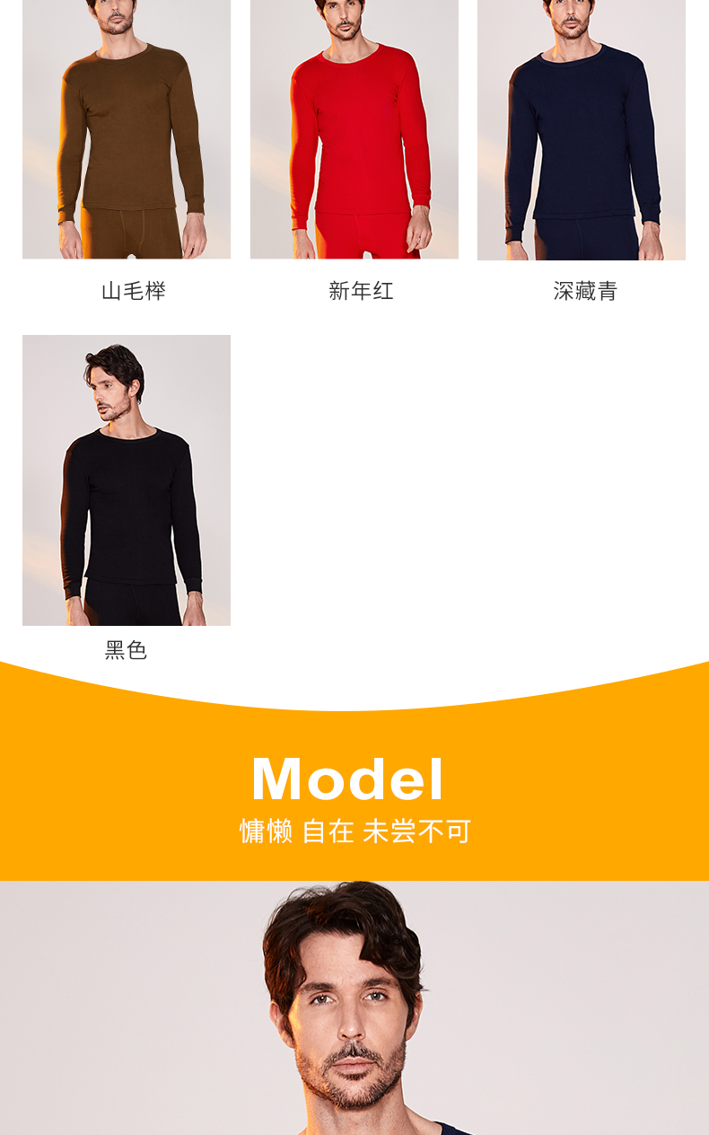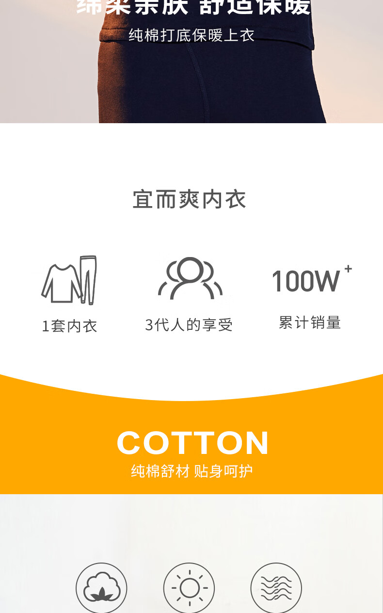 宜而爽【一等品100%纯棉】秋衣男保暖上衣全棉抗静电内衣棉毛衫秋冬