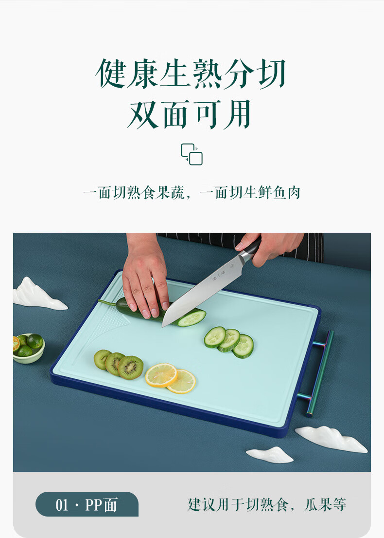 张小泉青绿系列菜板砧板家用双面菜板PP无漆无蜡加厚切菜板 乌檀木+PP(38.5cm*26.5cm*1.85cm)