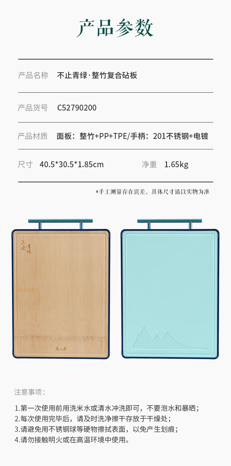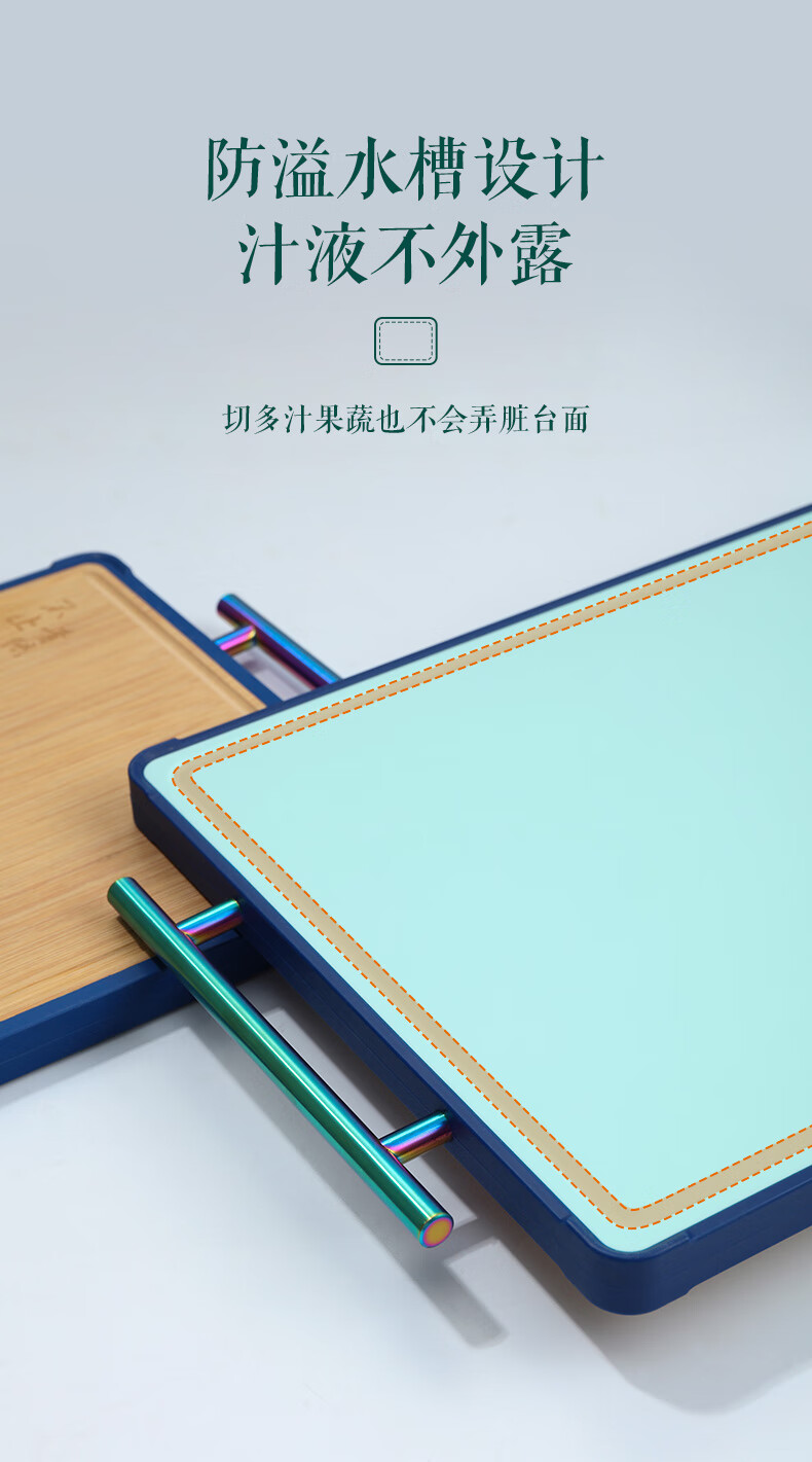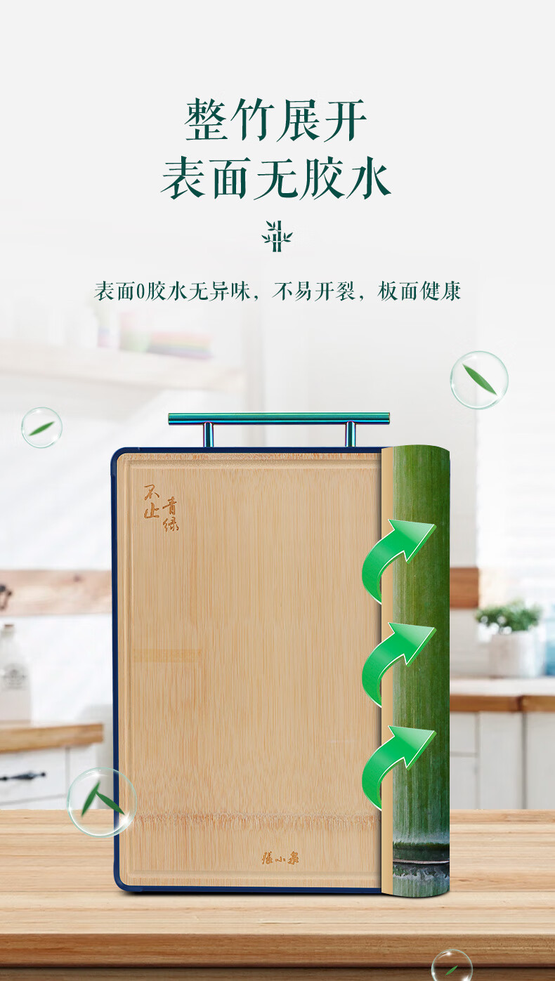 张小泉青绿系列菜板砧板家用双面菜板PP无漆无蜡加厚切菜板 整竹+PP(40.5cm*30.5cm*1.85cm)