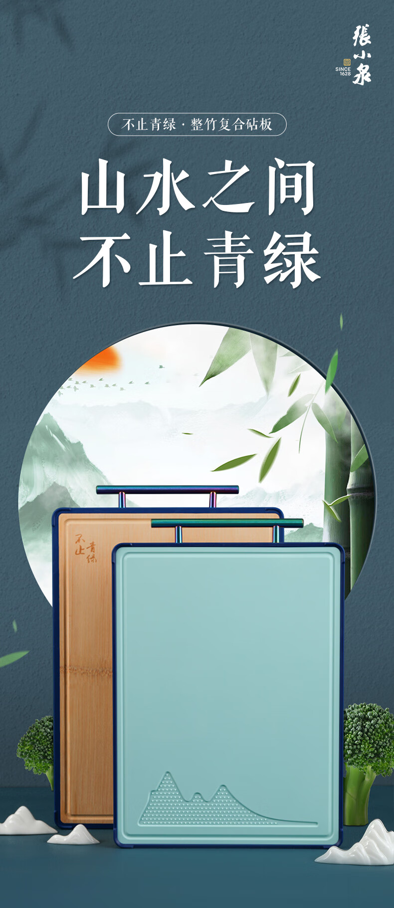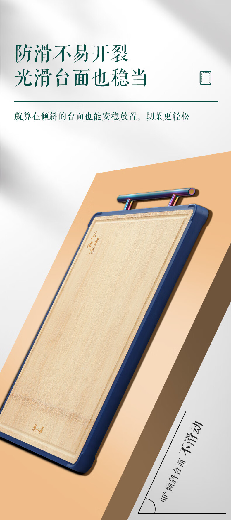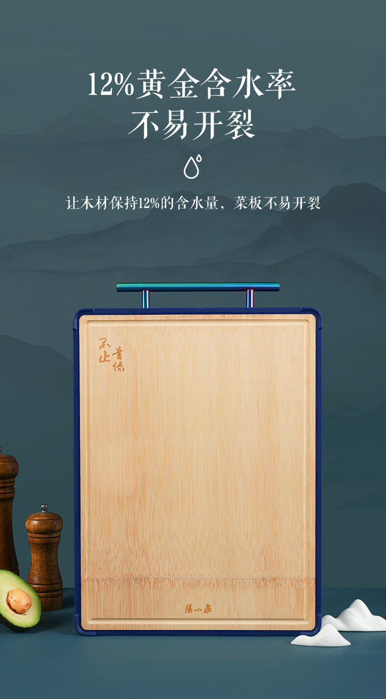 张小泉青绿系列菜板砧板家用双面菜板PP无漆无蜡加厚切菜板 整竹+PP(40.5cm*30.5cm*1.85cm)