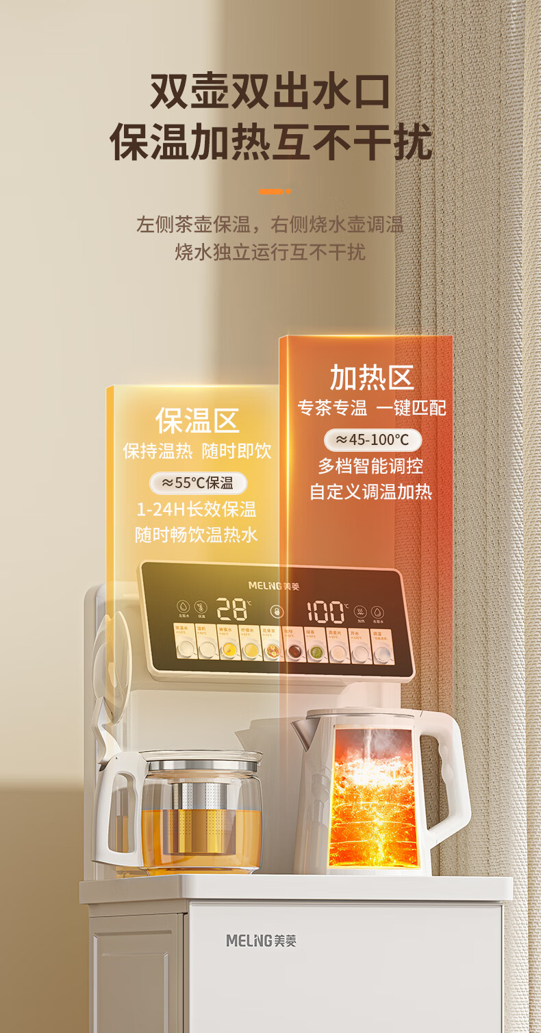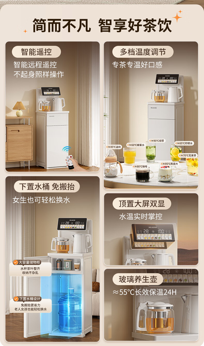 美菱(MeiLing)茶吧机 家用立式温热型饮水机多功能智能遥控茶吧机 高端旗舰【升级底部上水】 温热型