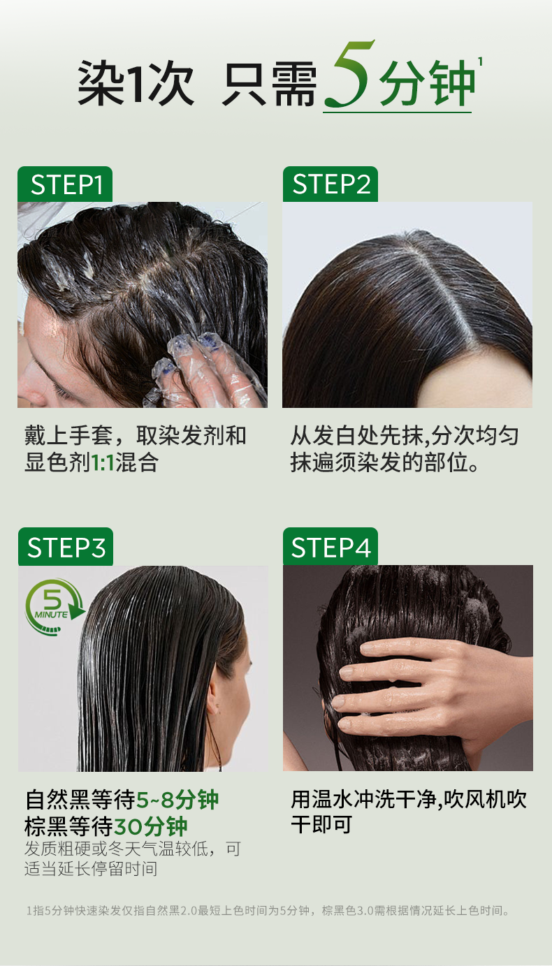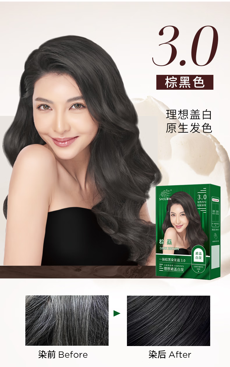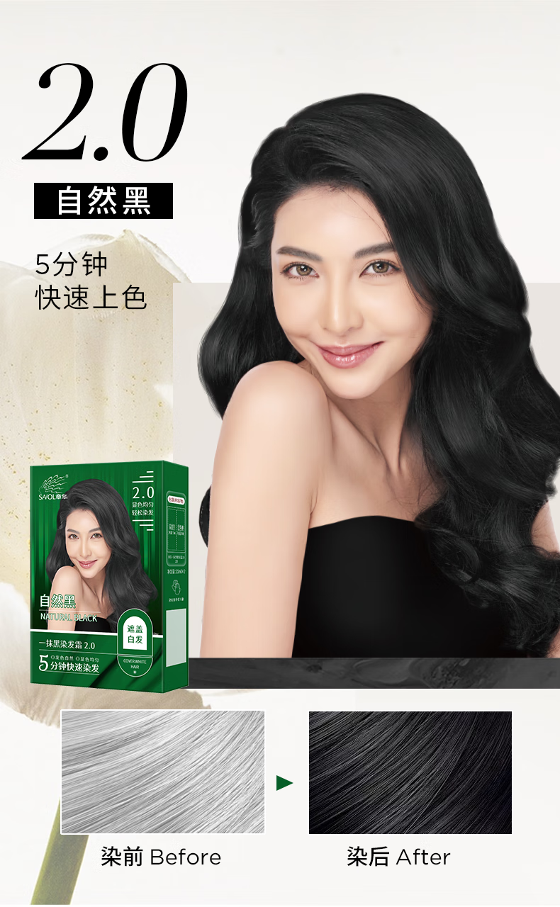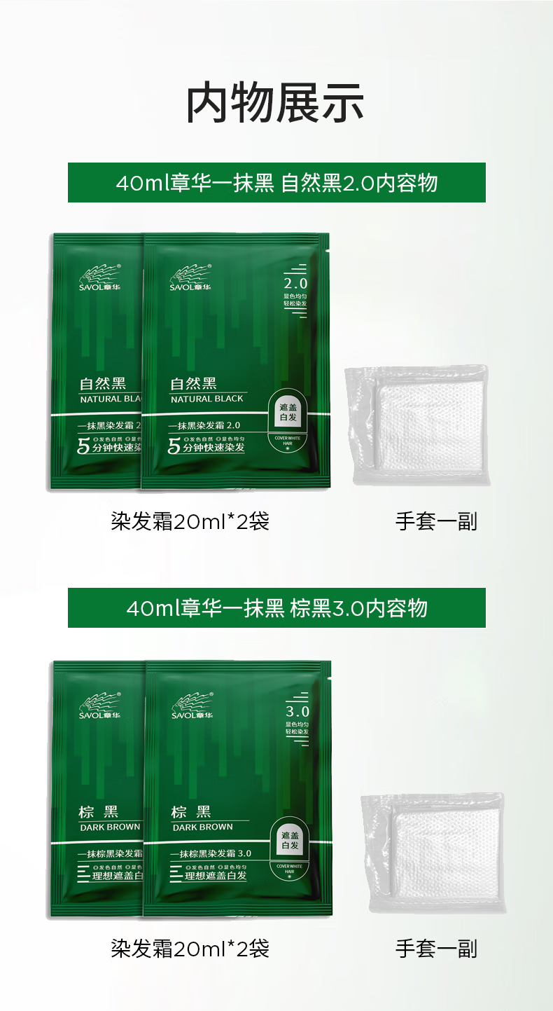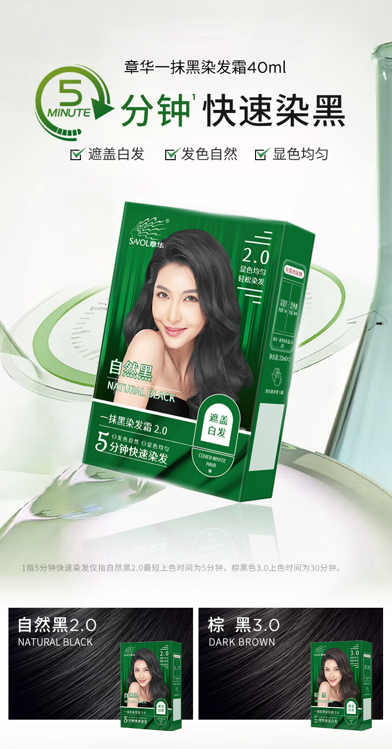 章华(SAVOL)一抹黑染发霜自然黑40ml*5盒(盖白染发膏5分钟速黑染发剂)