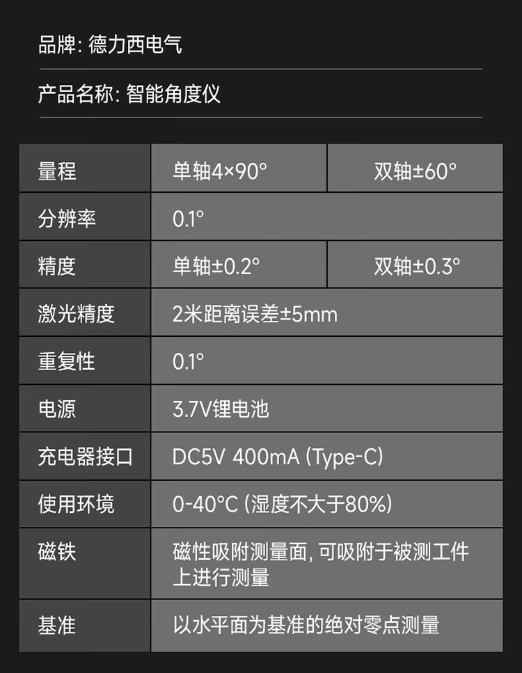 德力西电气双激光数显倾角仪高精度水平尺角度测量仪多功能角度尺强磁角度仪 升级单激光/智能倾角仪