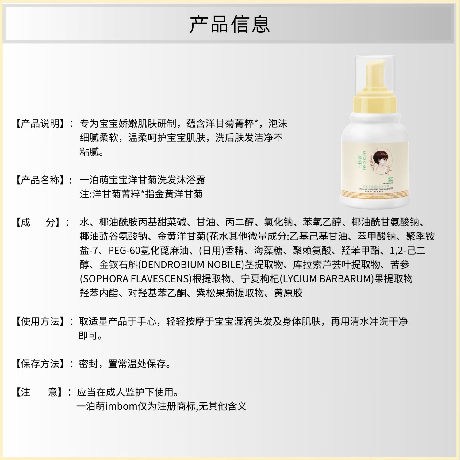 一泊萌洋甘菊洗发沐浴露儿童二合一多泡泡柔顺无泪洗发水沐浴露清洁润肤 洋甘菊320ml*3