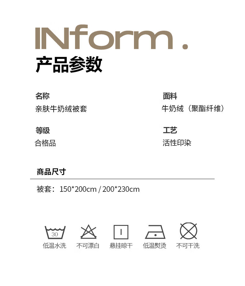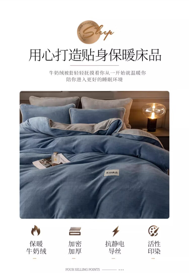 无印良品牛奶绒被套单件 法兰绒家用床上用品被套被罩 200*230cm