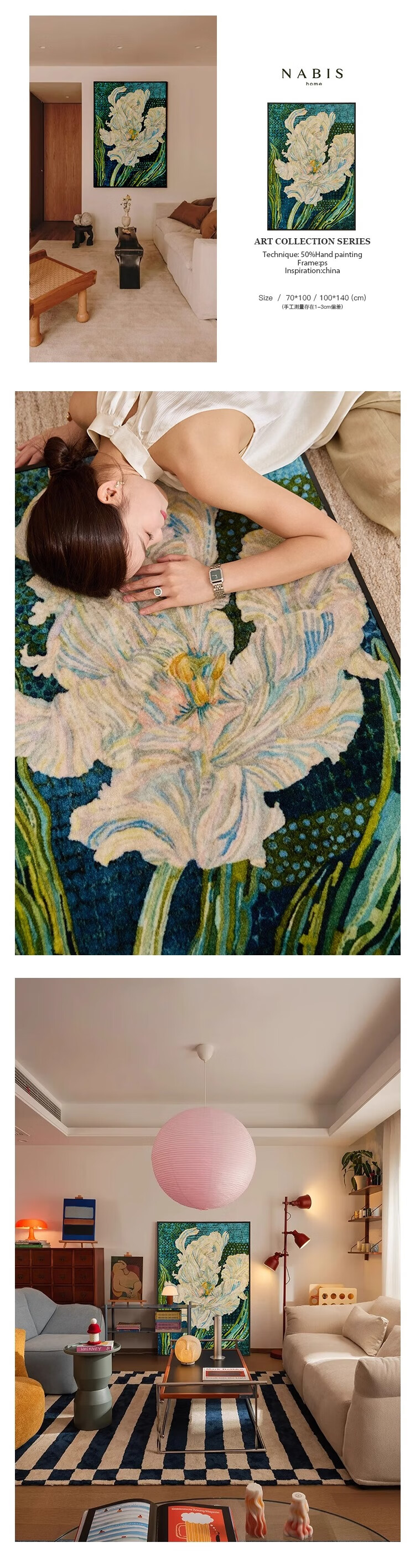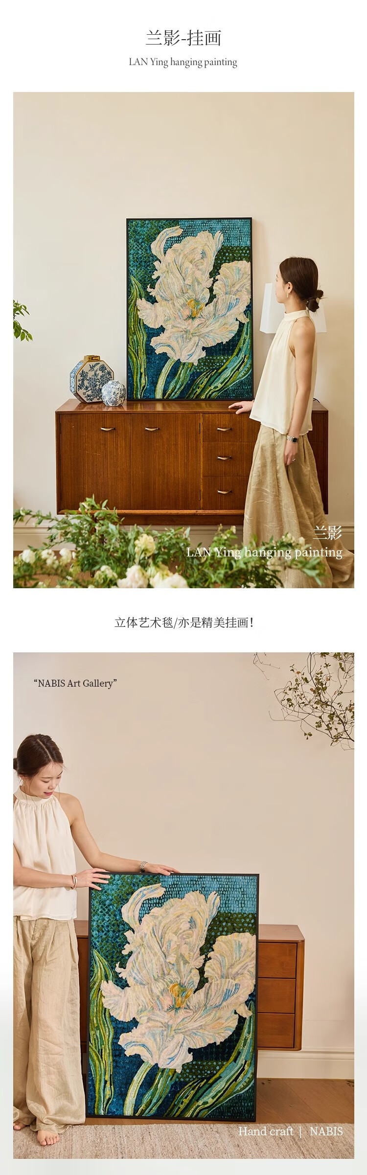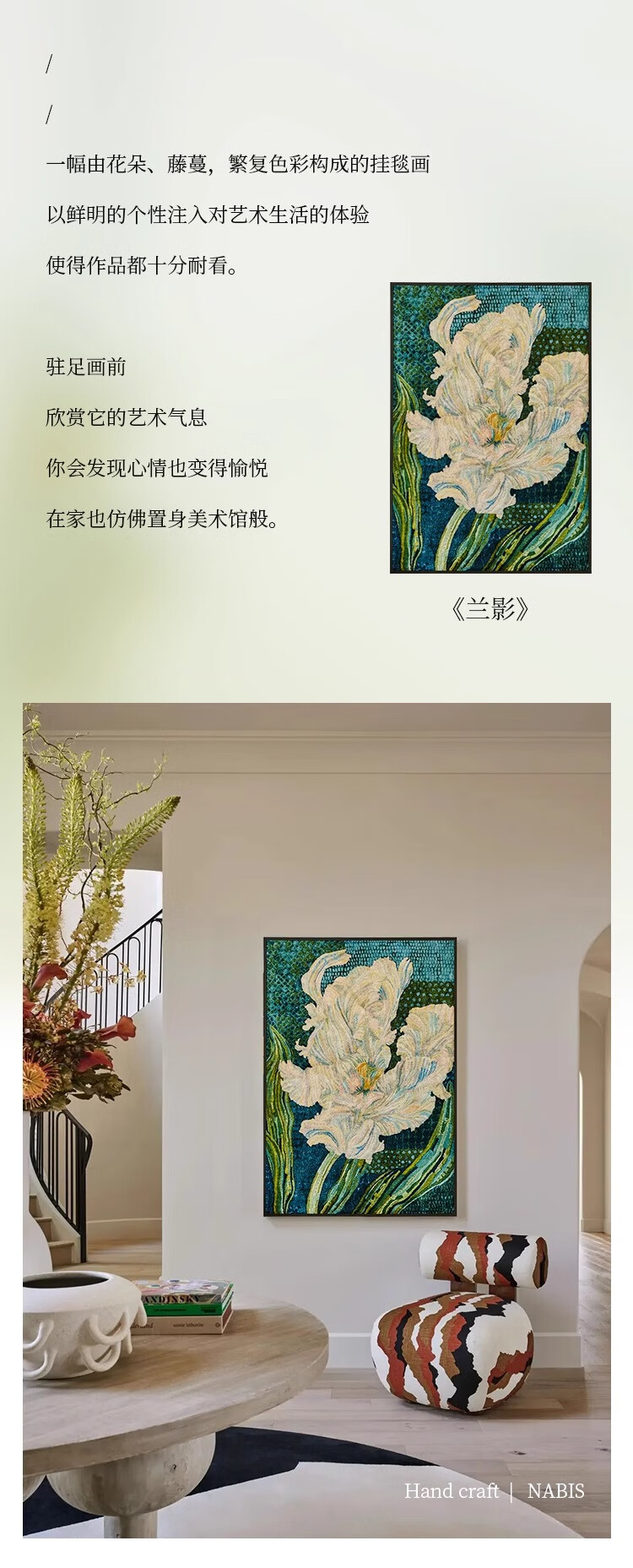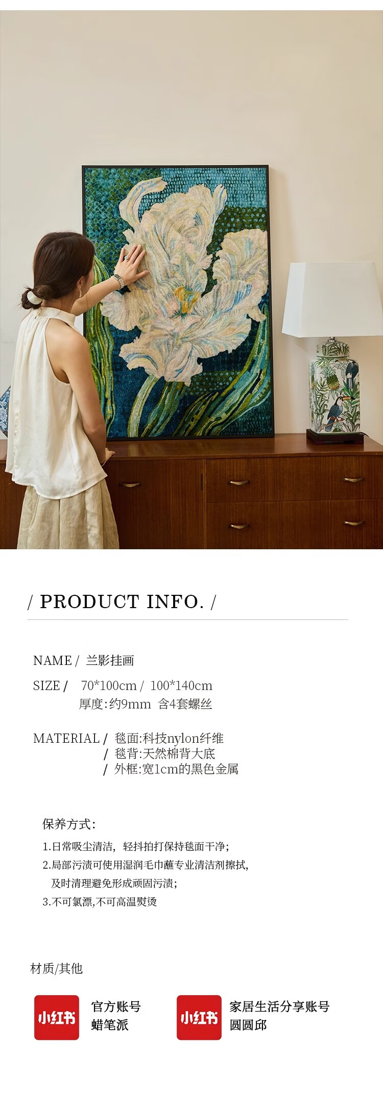 蜡笔派兰影挂画中古风高级氛围感客厅装饰画挂毯画边柜艺术画 兰影挂画毯画(赠送挂画配件) 70*100cm
