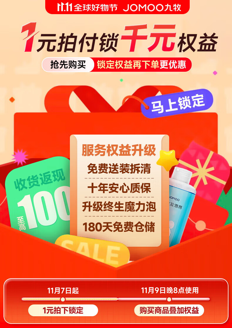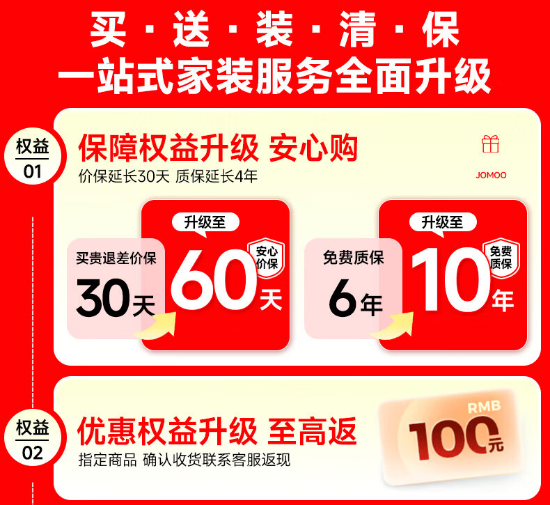 九牧(JOMOO)1元锁定专属特权一站式升级服务700P/800/860/780/8650/9650/8450 -至高返100元