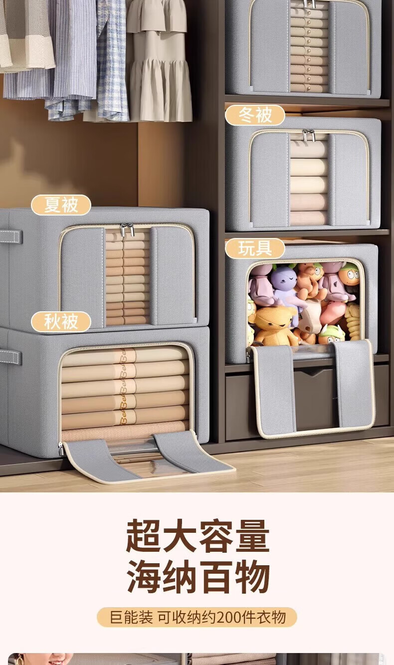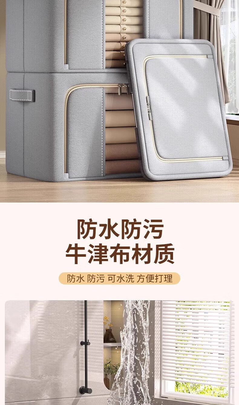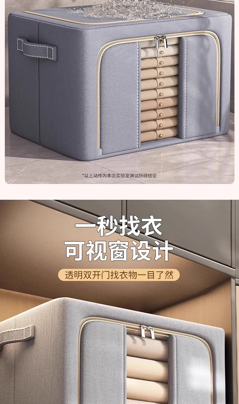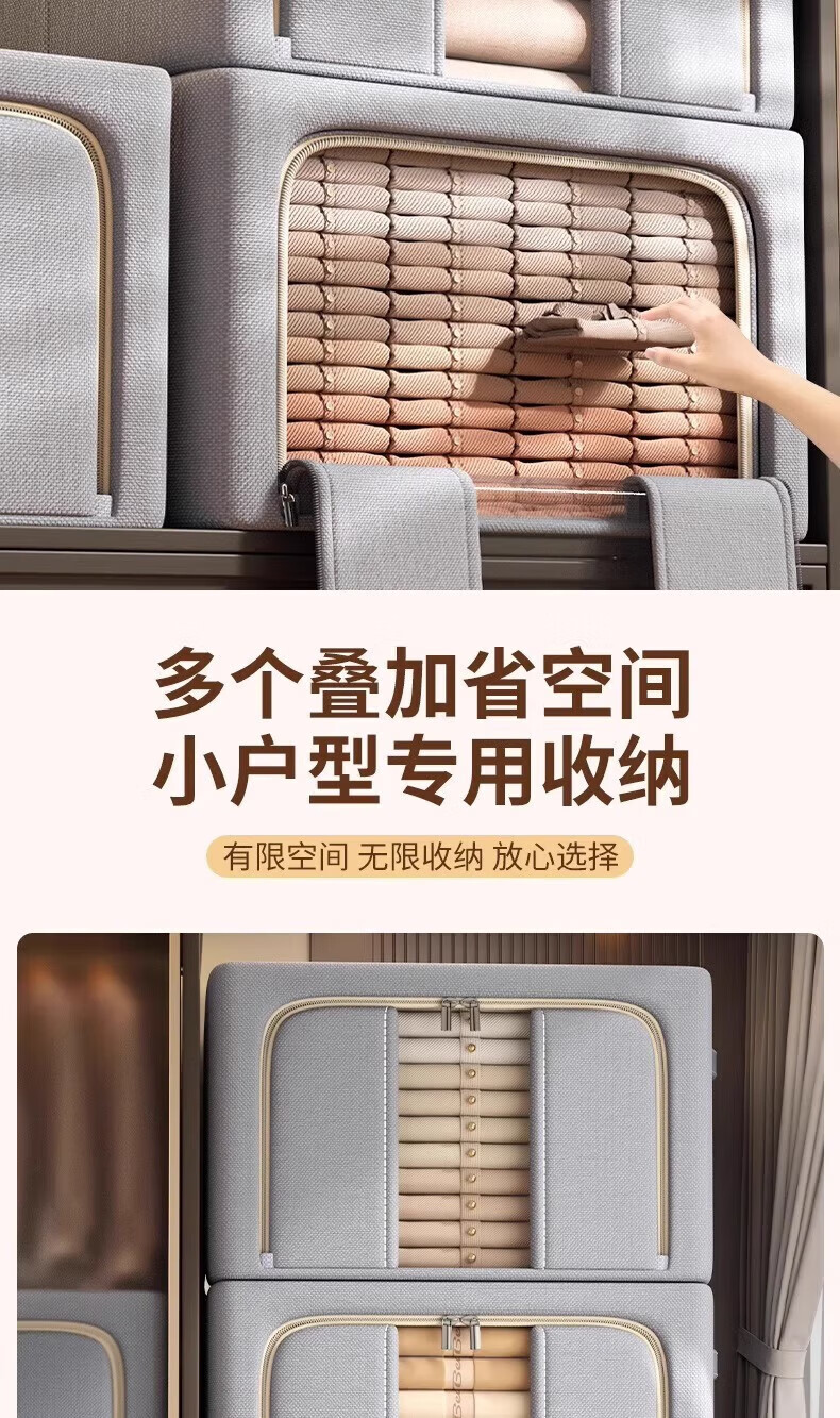 纳份爱衣服收纳箱家用布艺装衣物整理盒折叠衣柜筐袋牛津布储物箱子神器 星空灰-66L【3个装-单窗】50*40*33CM