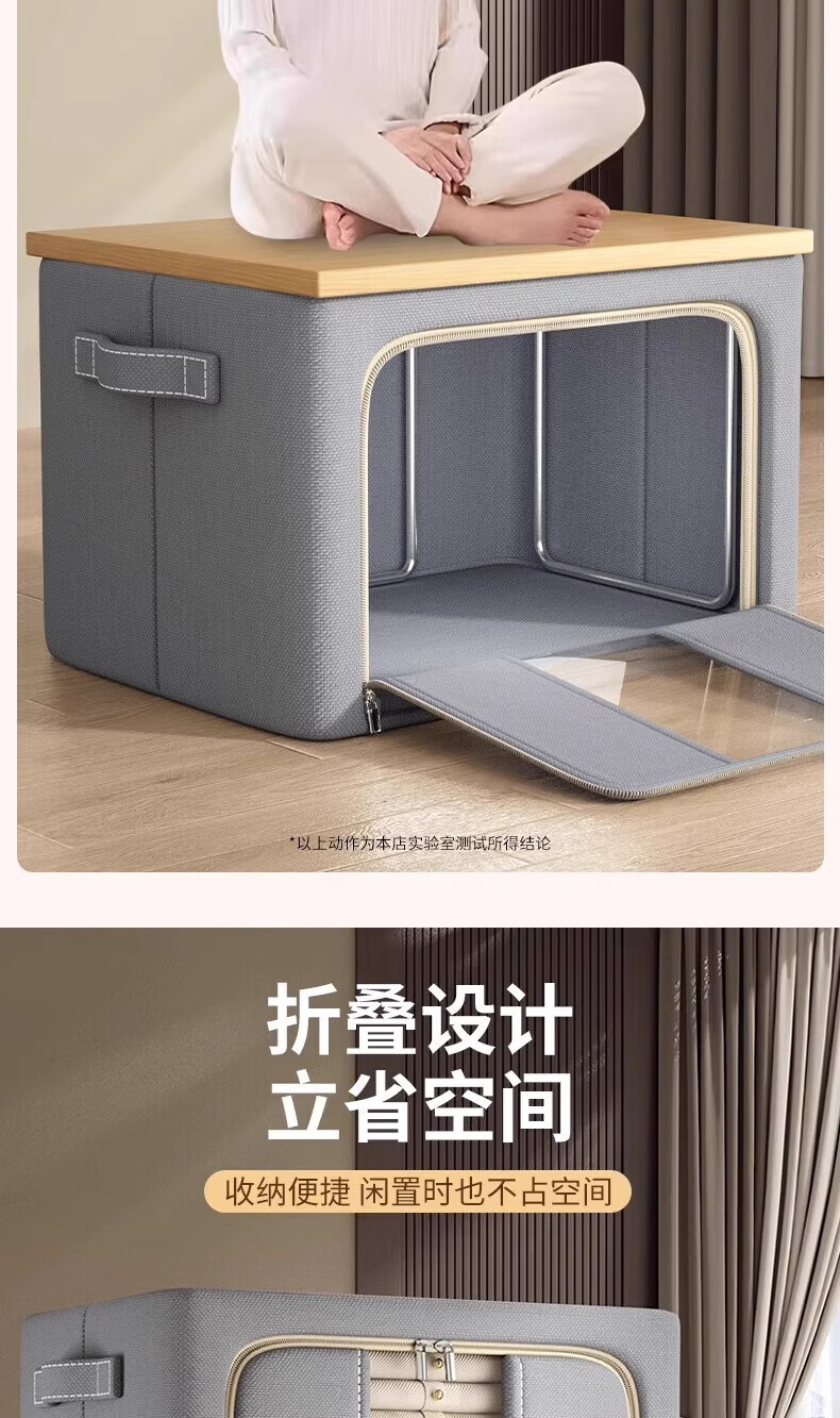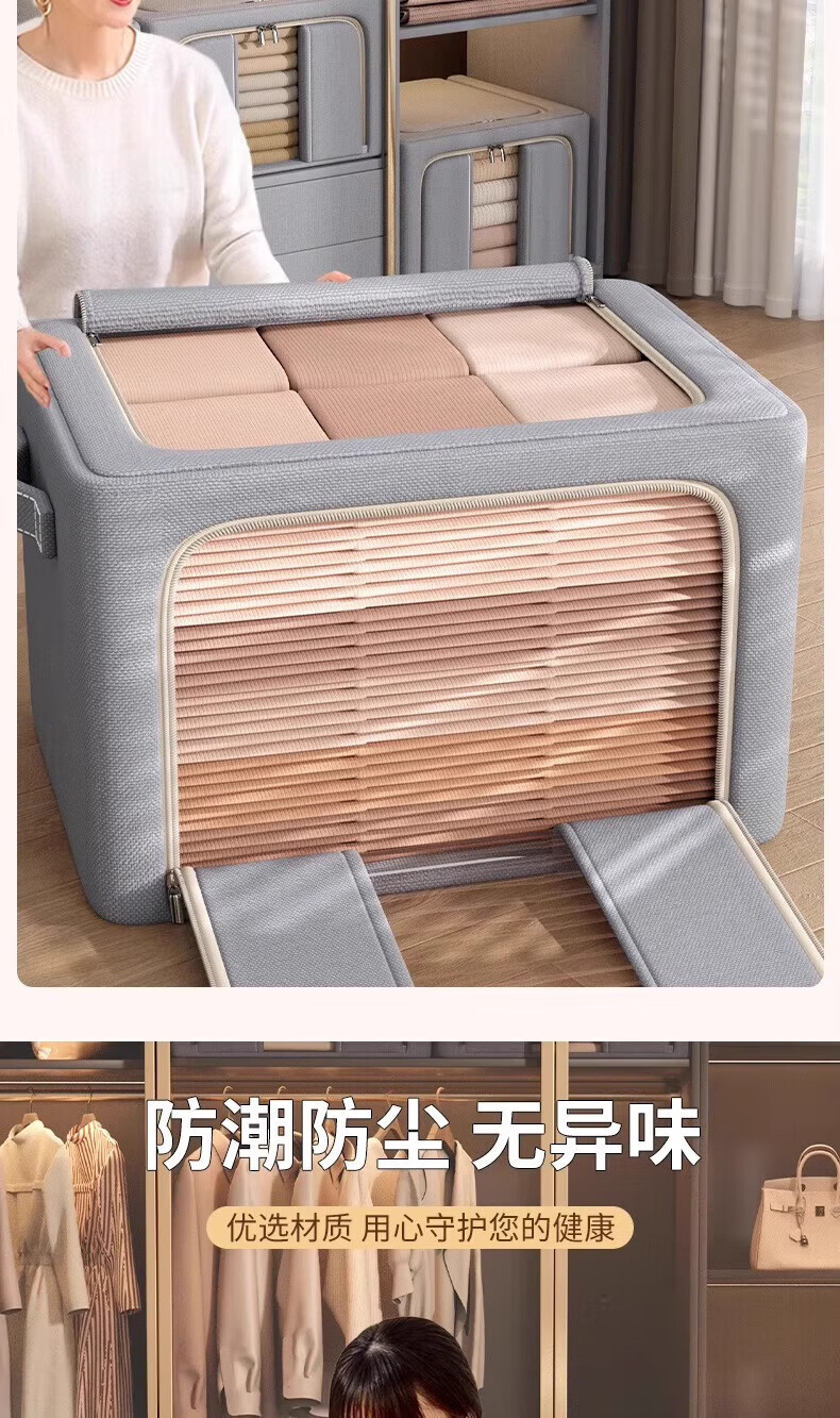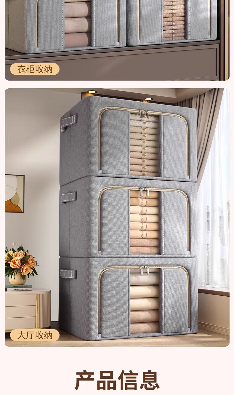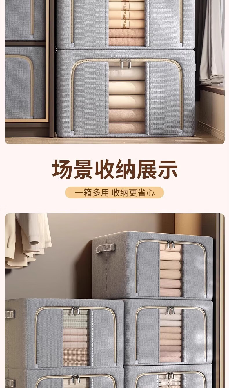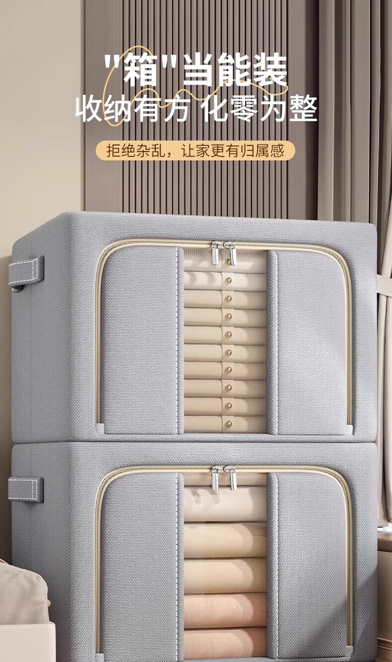 纳份爱衣服收纳箱家用布艺装衣物整理盒折叠衣柜筐袋牛津布储物箱子神器 星空灰-66L【3个装-单窗】50*40*33CM