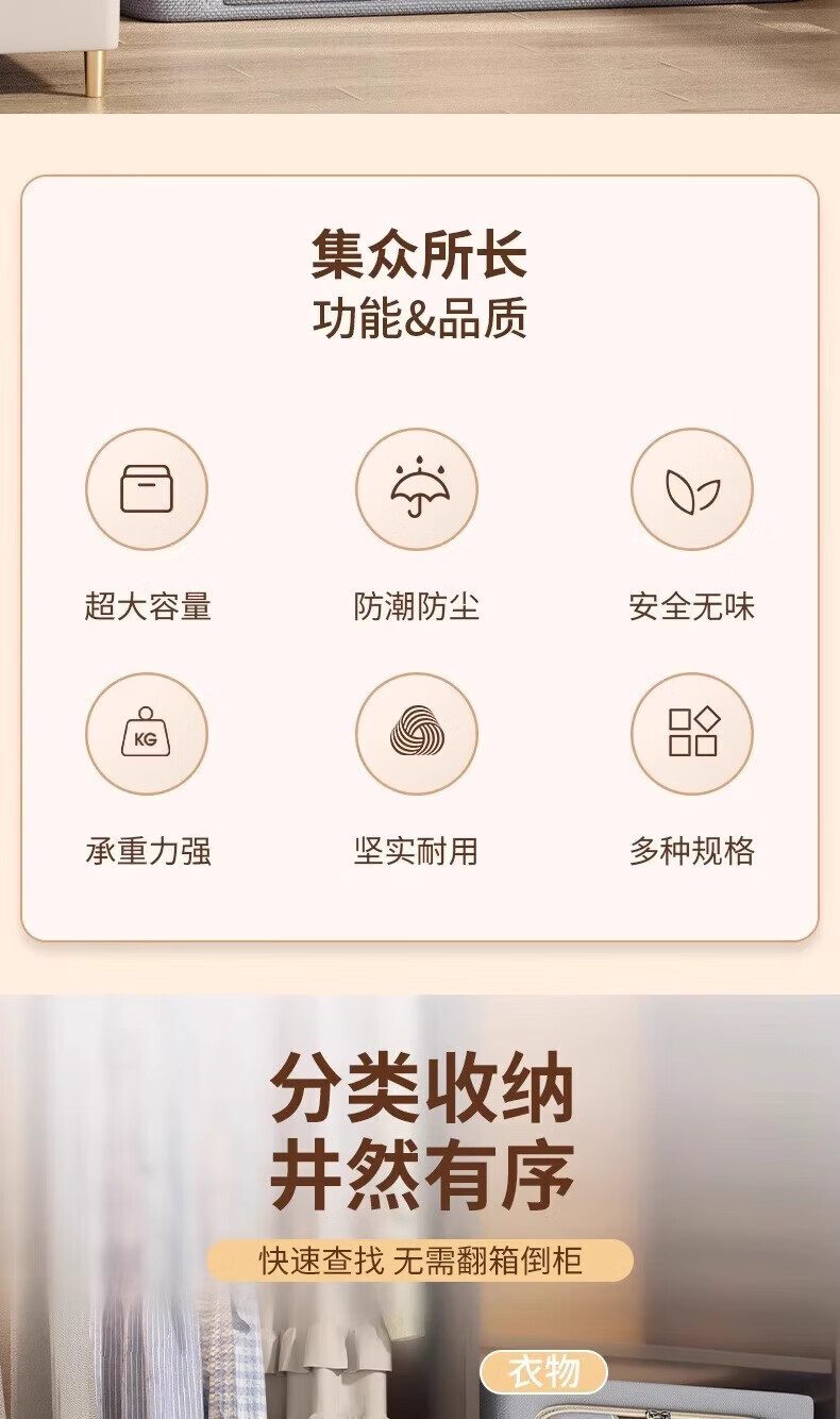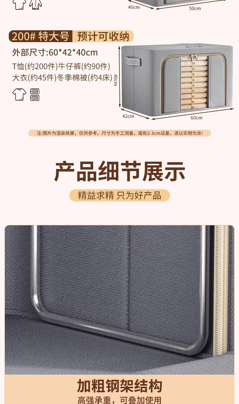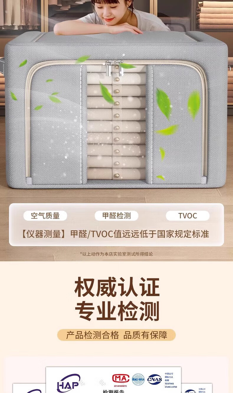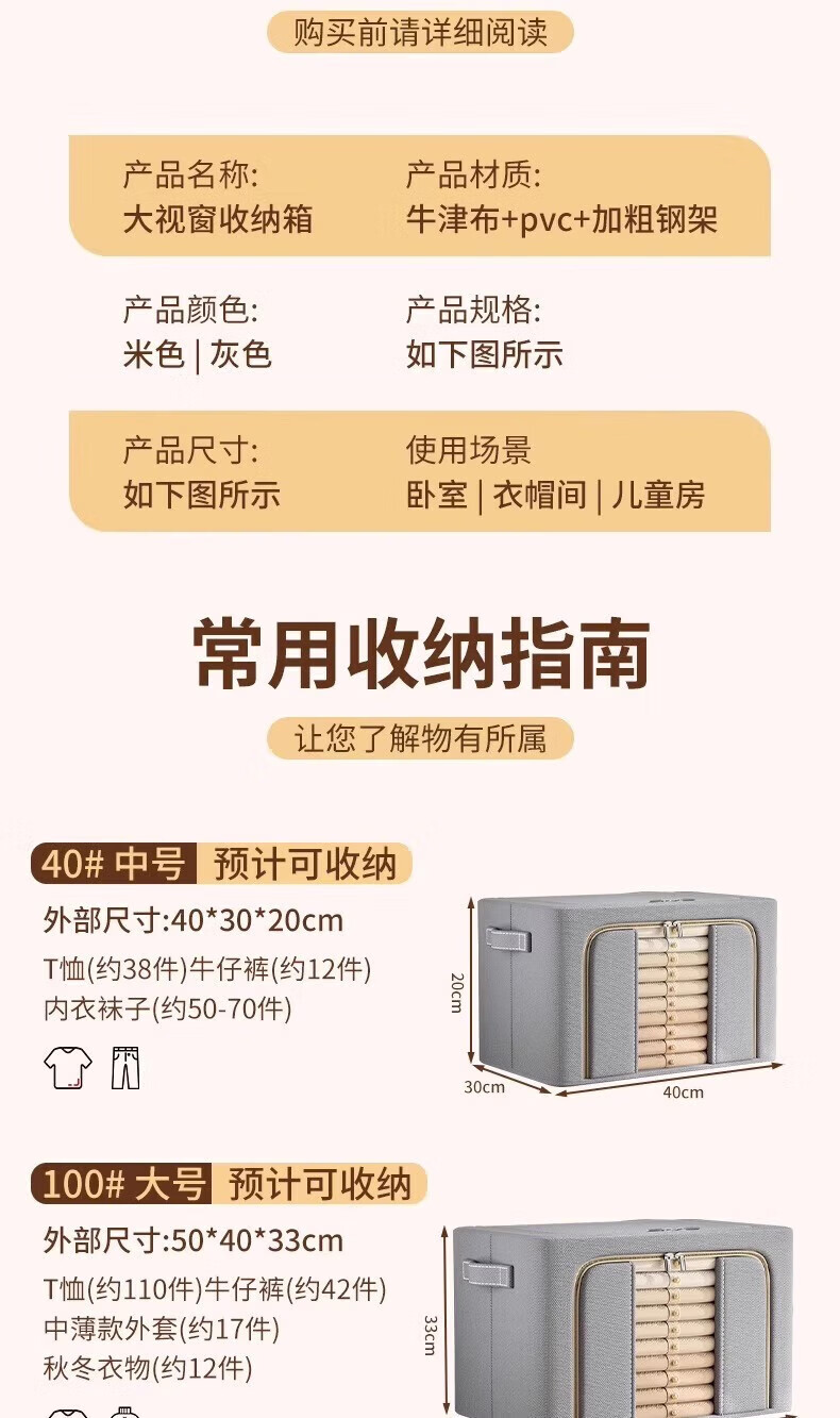 纳份爱衣服收纳箱家用布艺装衣物整理盒折叠衣柜筐袋牛津布储物箱子神器 星空灰-66L【3个装-单窗】50*40*33CM
