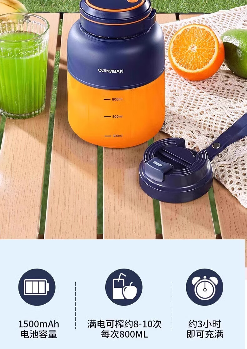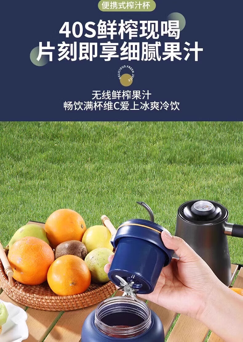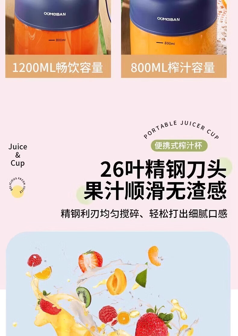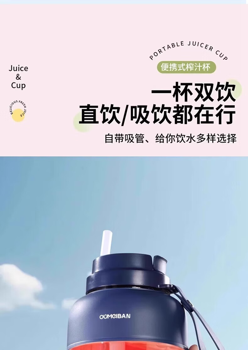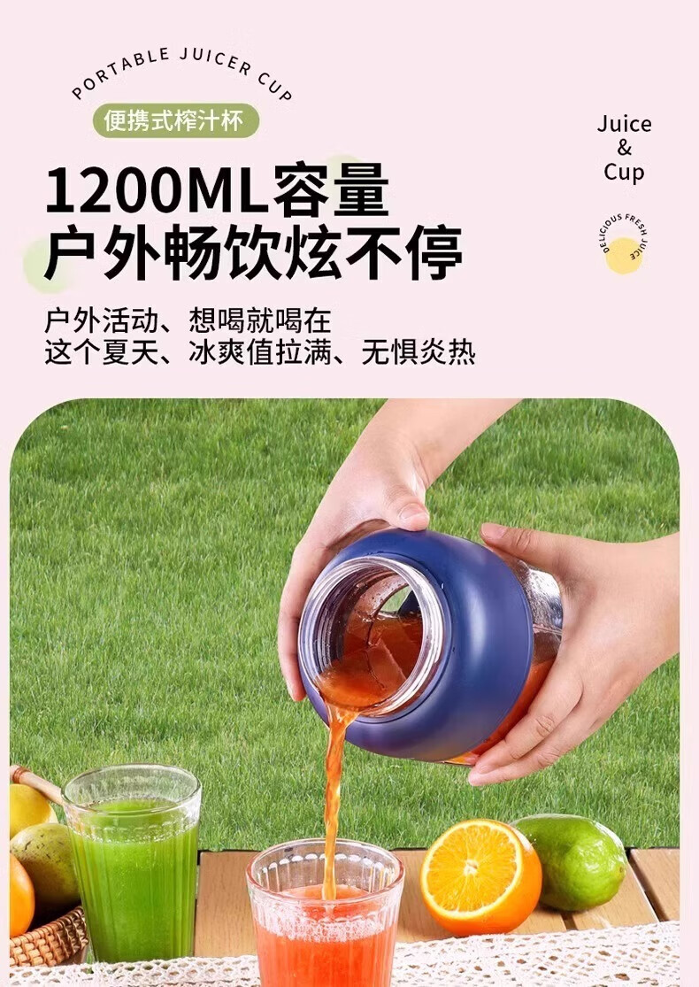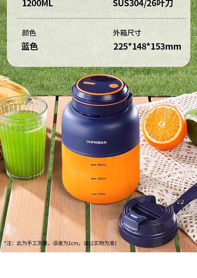 DEATKN德国2025新款38叶刀榨汁机电动榨汁杯大容量无线迷你便携式吨吨桶 [深海蓝]38叶刀头1100毫升