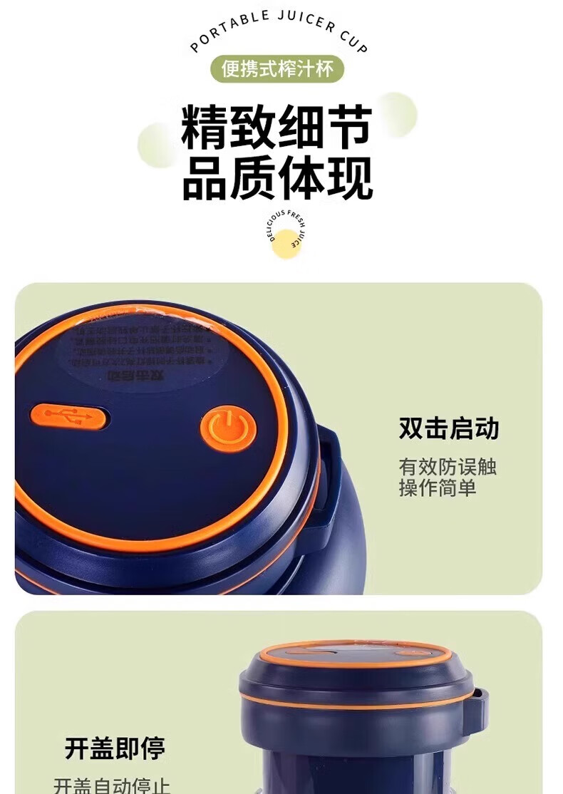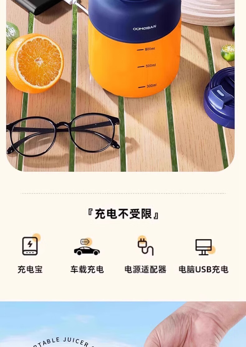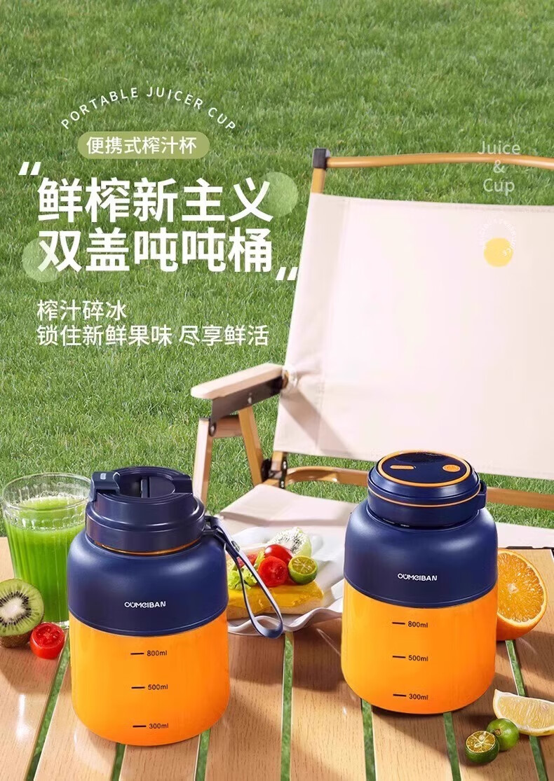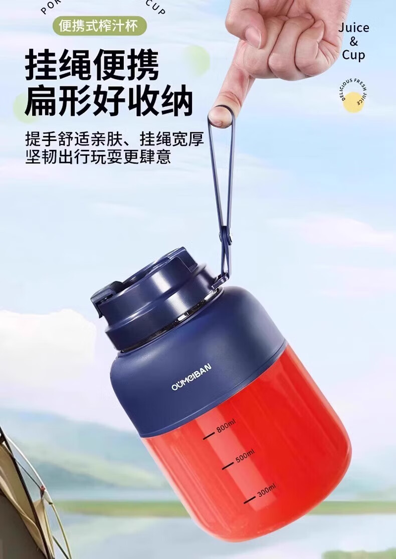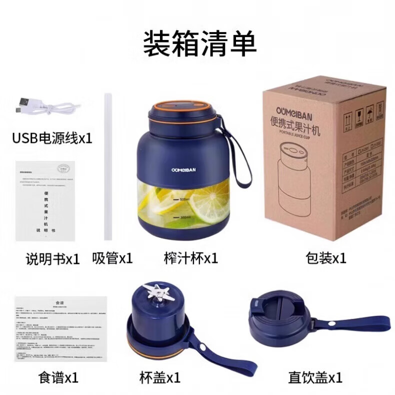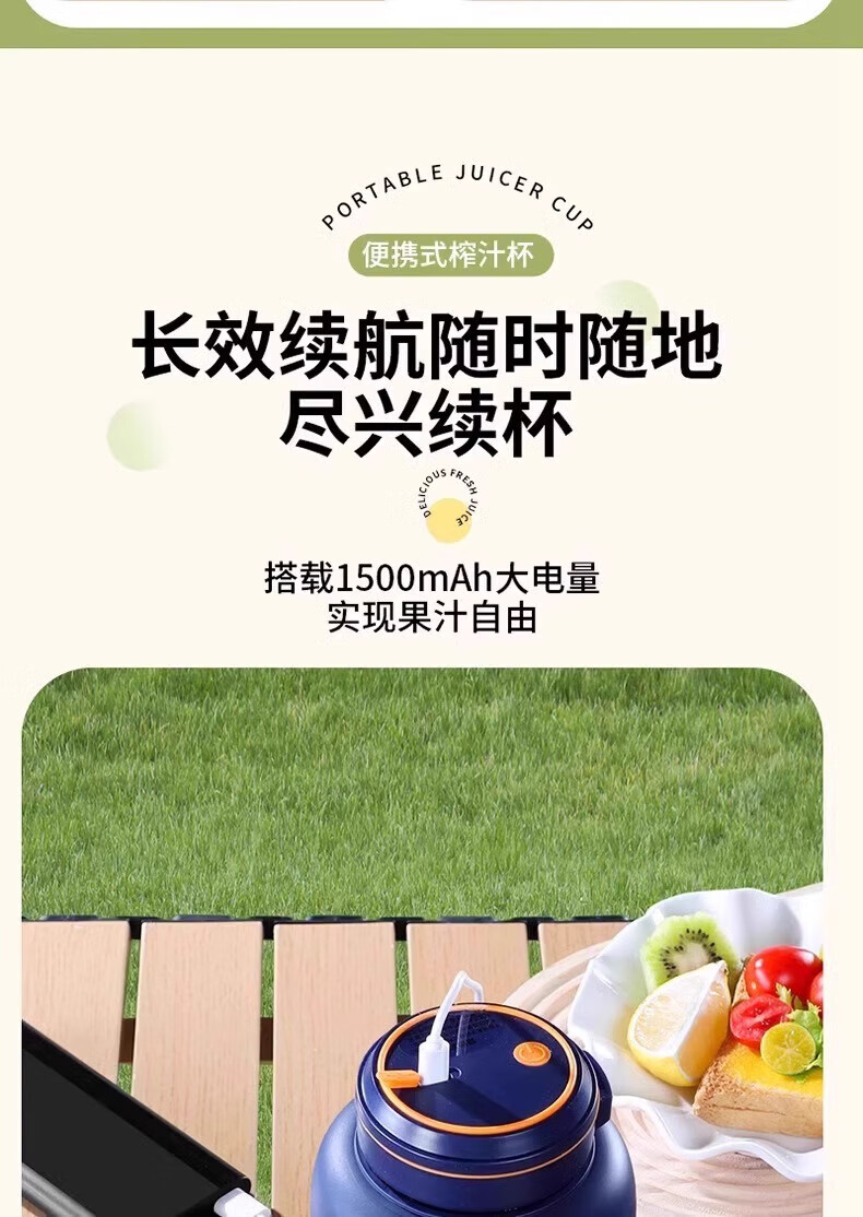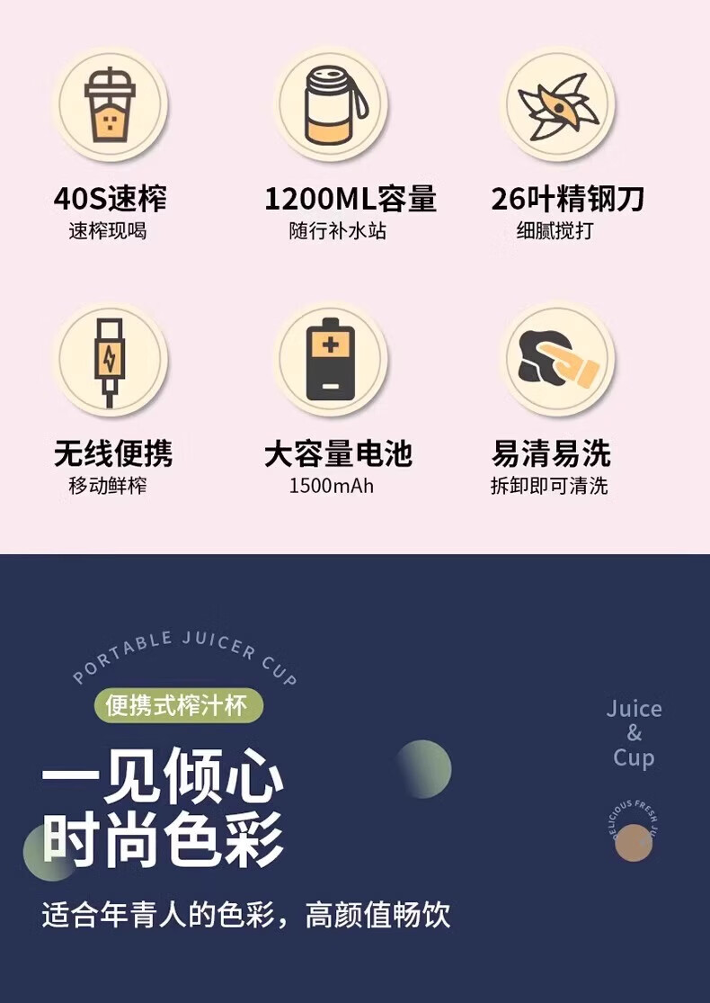 DEATKN德国2025新款38叶刀榨汁机电动榨汁杯大容量无线迷你便携式吨吨桶 [深海蓝]38叶刀头1100毫升