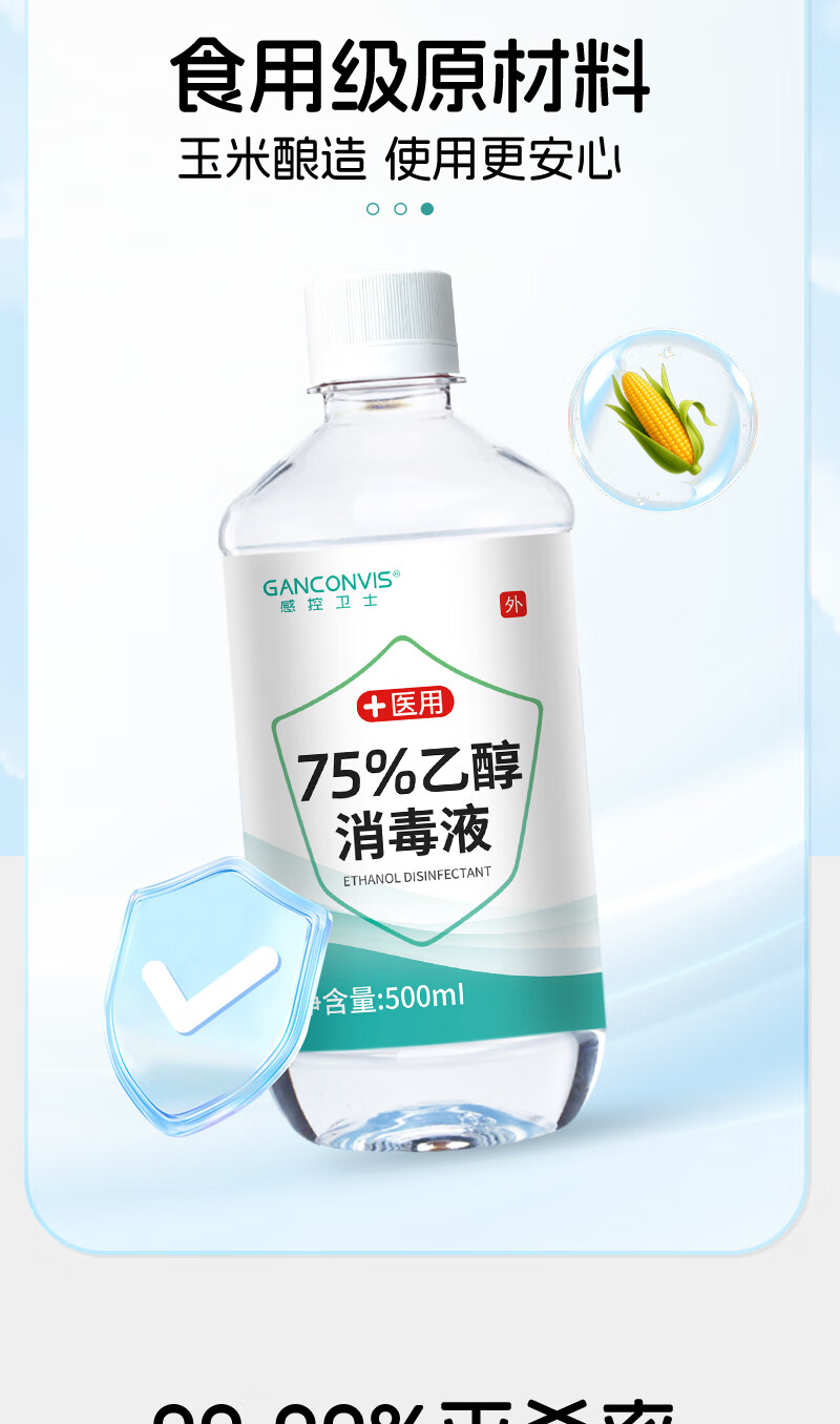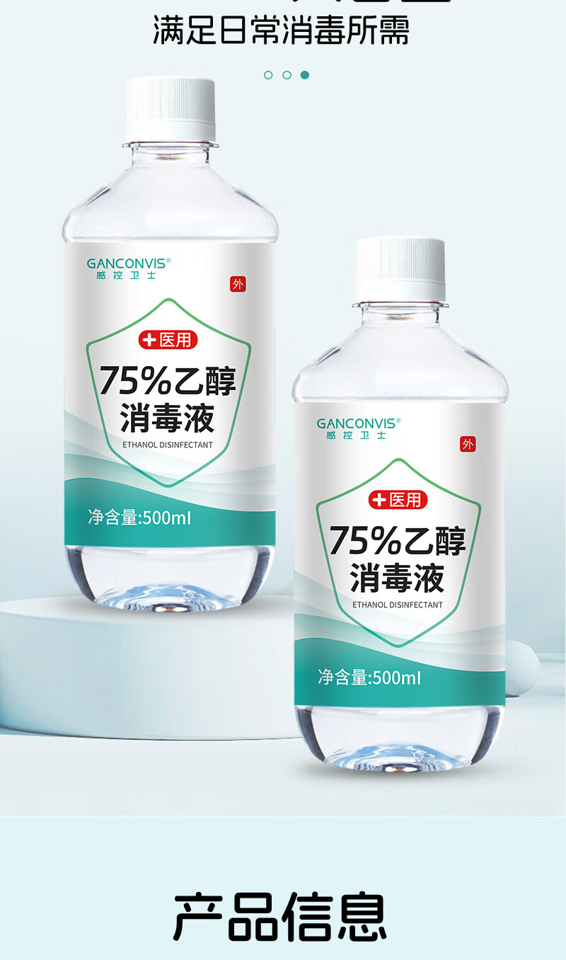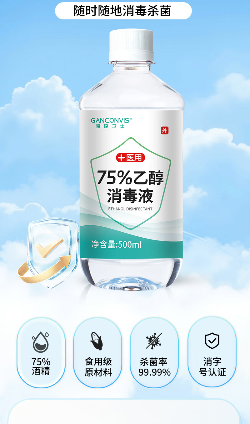 GANCONVIS医用酒精75%消毒液500ml乙醇酒精喷雾替换装皮肤物品清洁消毒