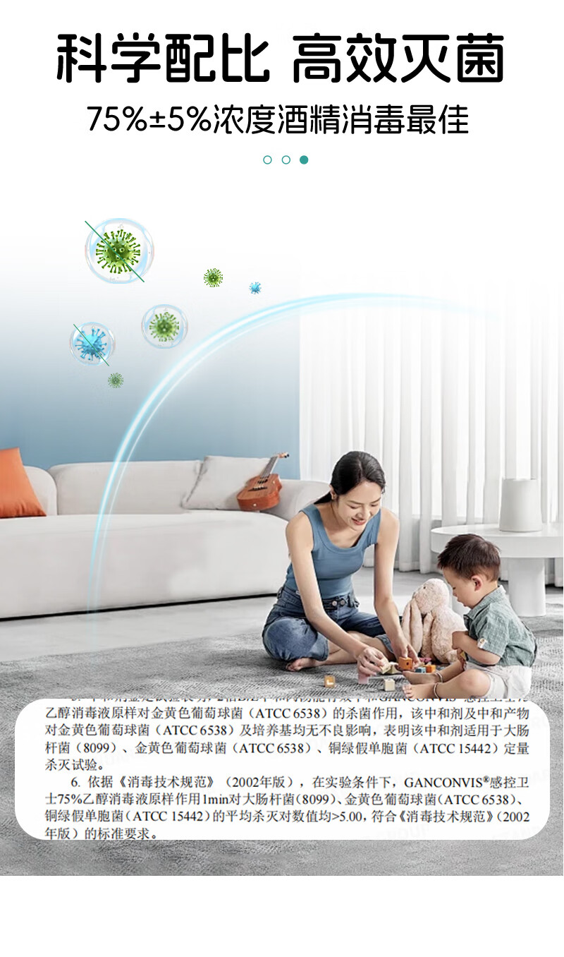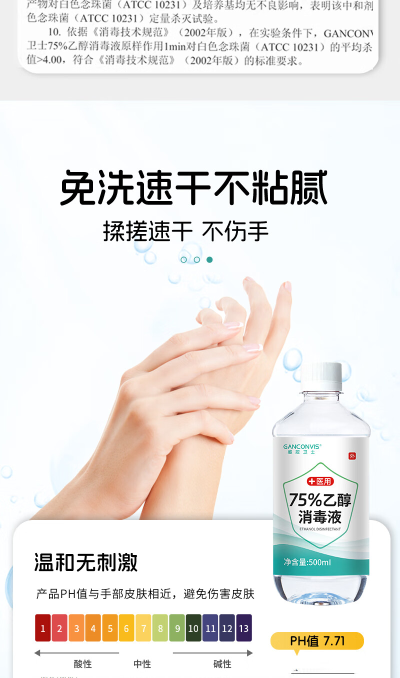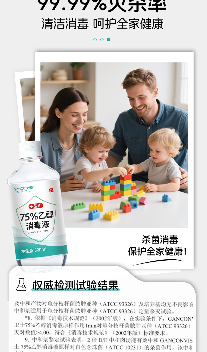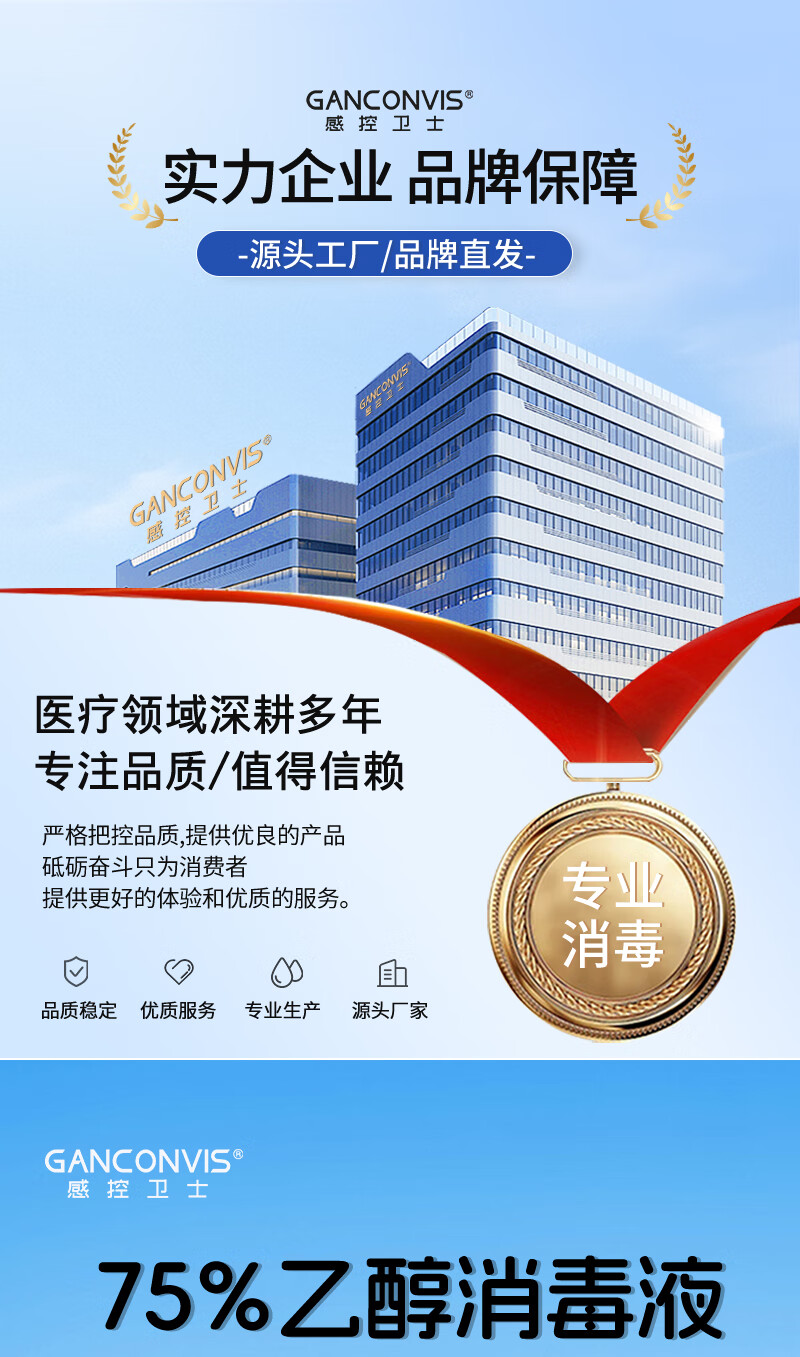 GANCONVIS医用酒精75%消毒液500ml乙醇酒精喷雾替换装皮肤物品清洁消毒