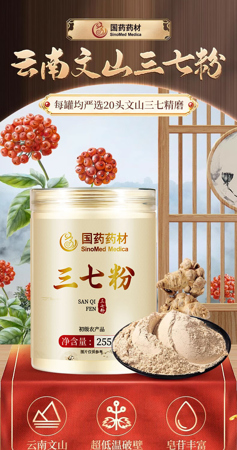 信盛堂国药药材三七粉510g云南文山田七100%正品特级破壁打粉送礼滋补品