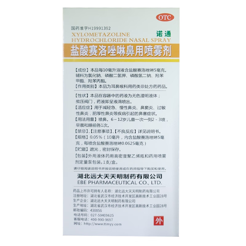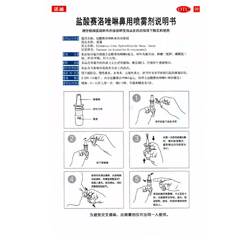 诺通盐酸赛洛唑啉鼻用喷雾剂 0.05%*10ml 6岁以上儿童减轻鼻炎引起的鼻塞流涕 过敏性鼻炎喷剂 抗过敏鼻炎喷雾剂