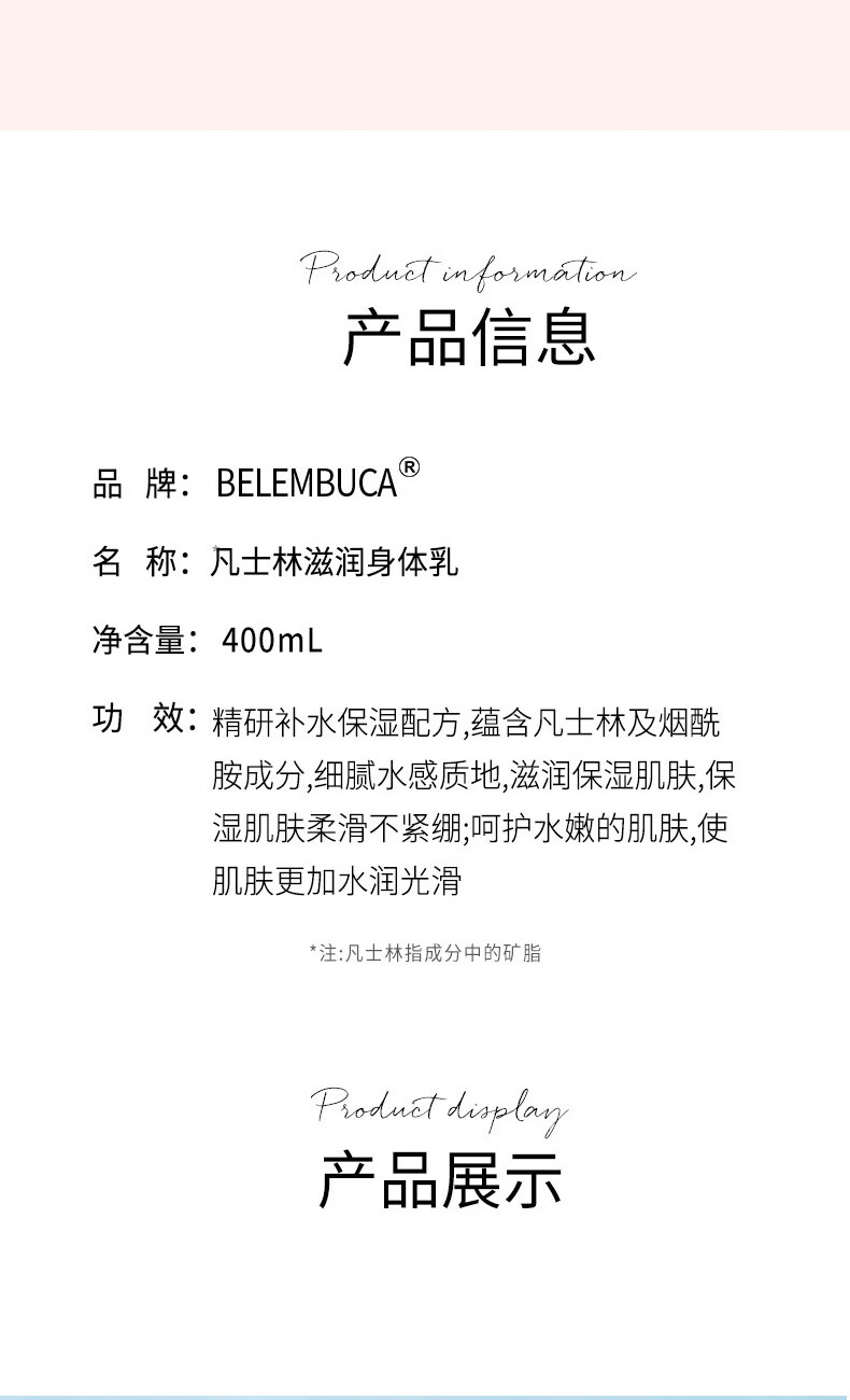BELEMBUCA烟酰胺身体乳倍护滋润保湿防干裂全身成人儿童护肤角质男女 400g 1瓶 烟酰胺滋润身体乳