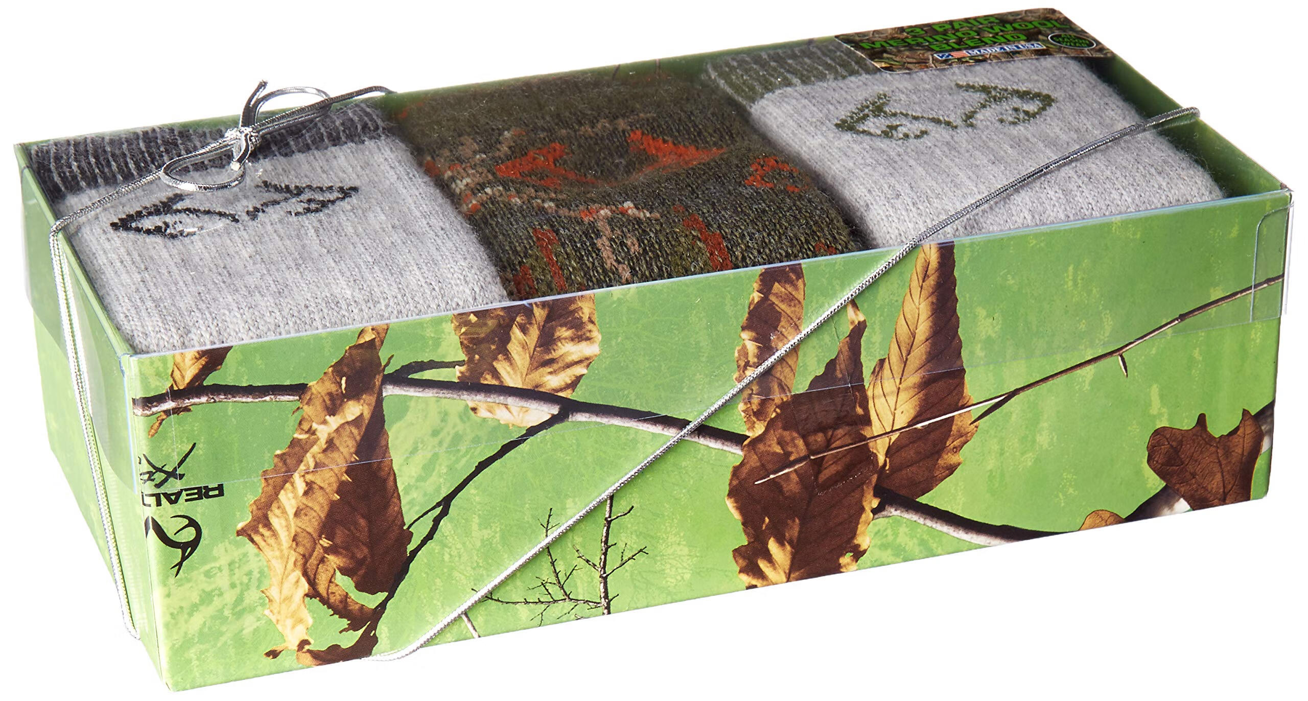 Realtree 男孩户外美利奴羊毛混纺迷彩中筒袜礼盒(3 装) “Multi” 小号