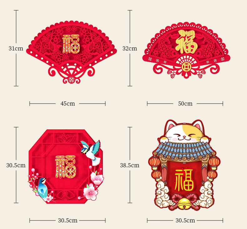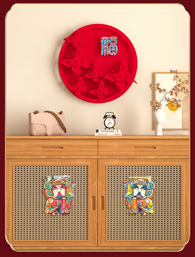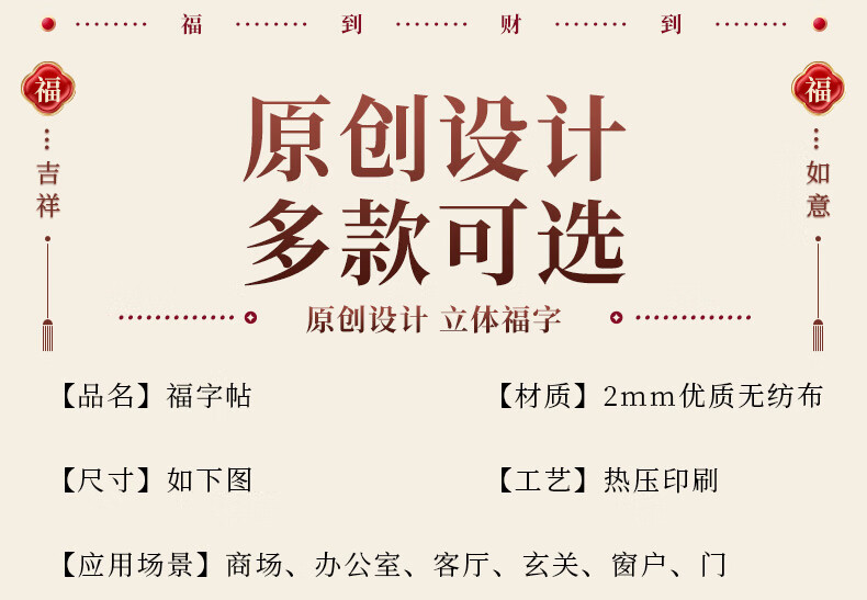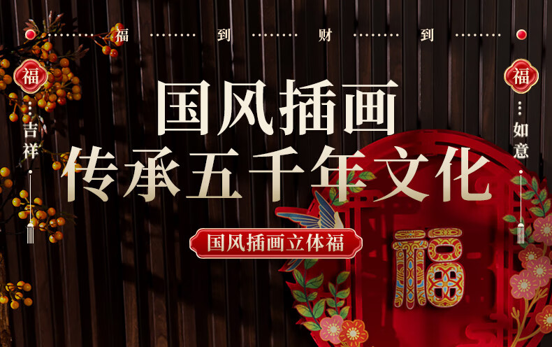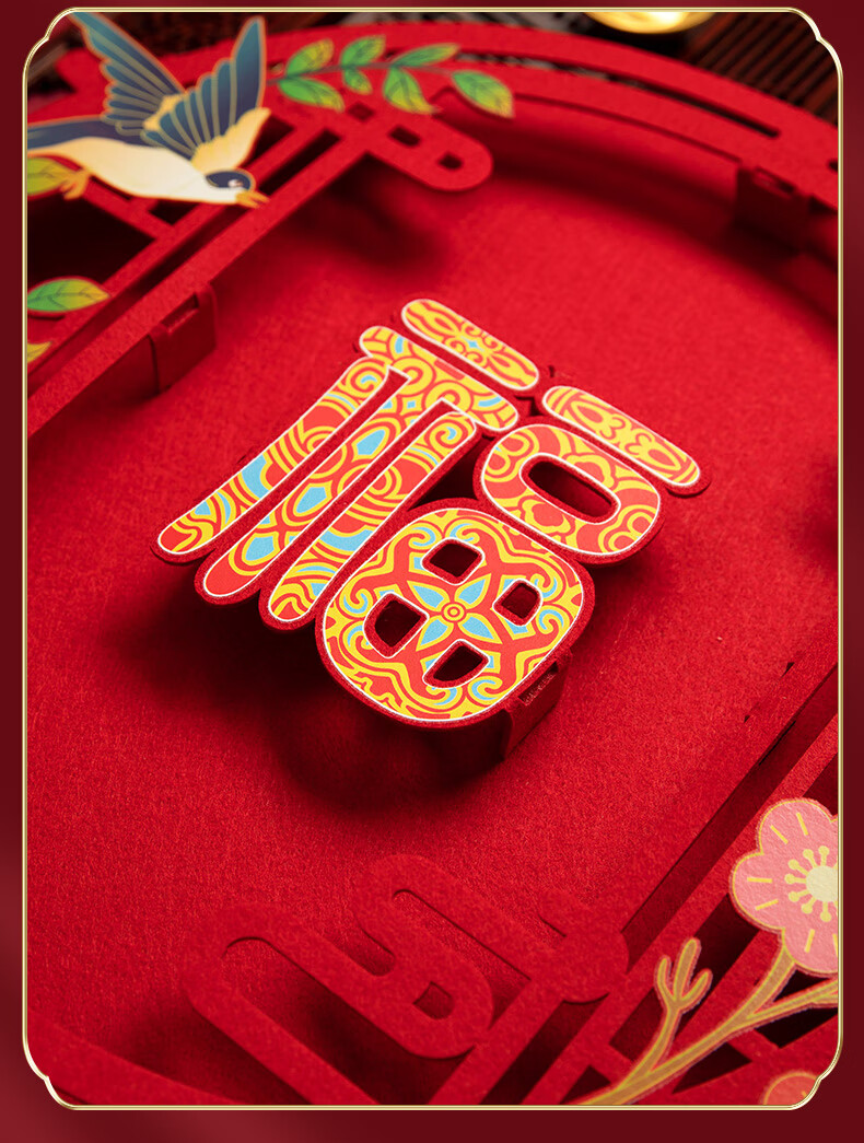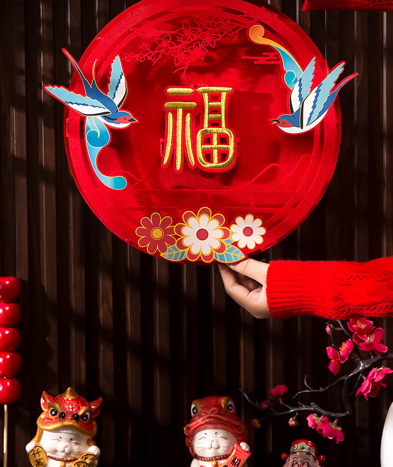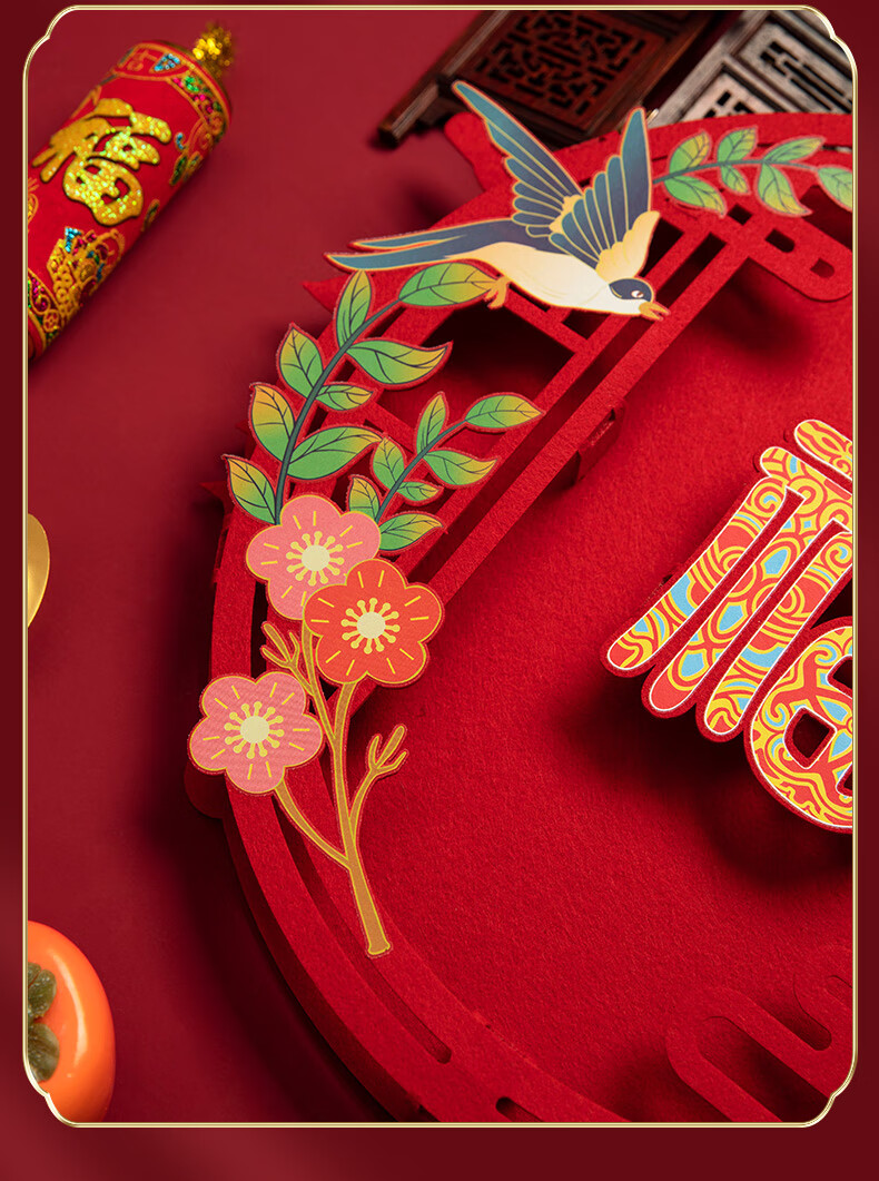渡鹊桥2026马年春节立体绒布福字贴入户大门新年装饰门贴元旦福字帖布置 花藤福