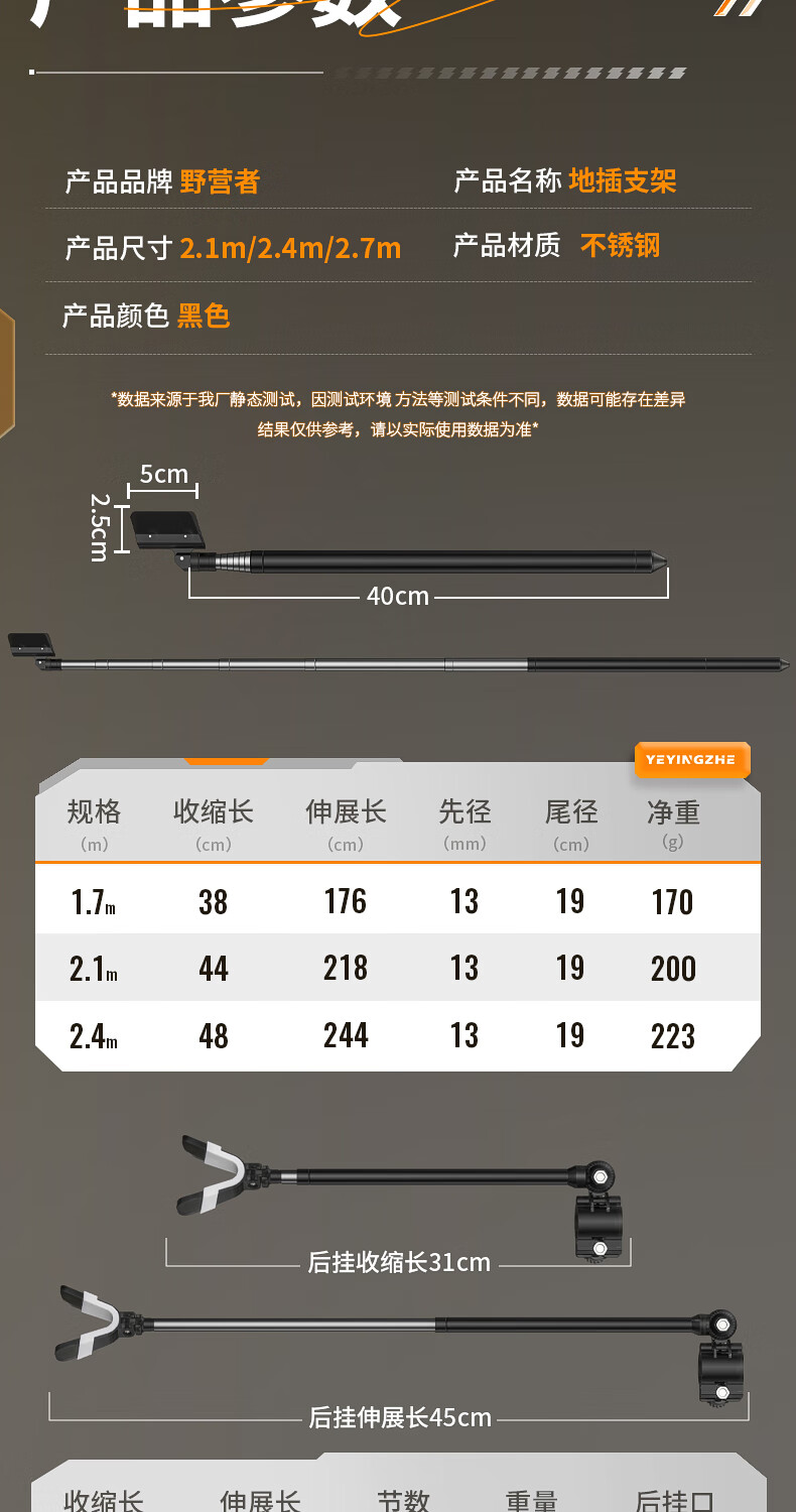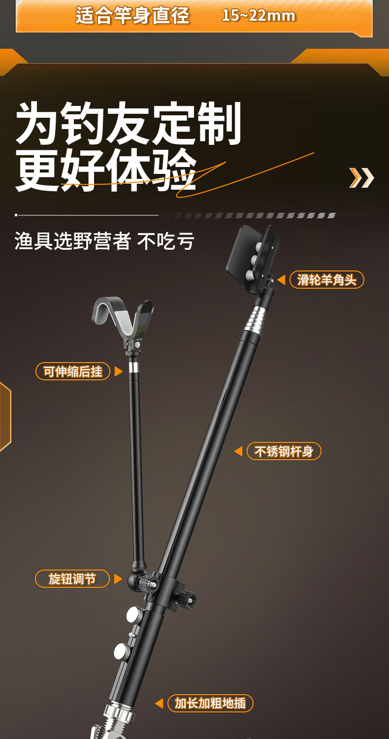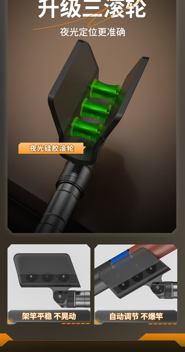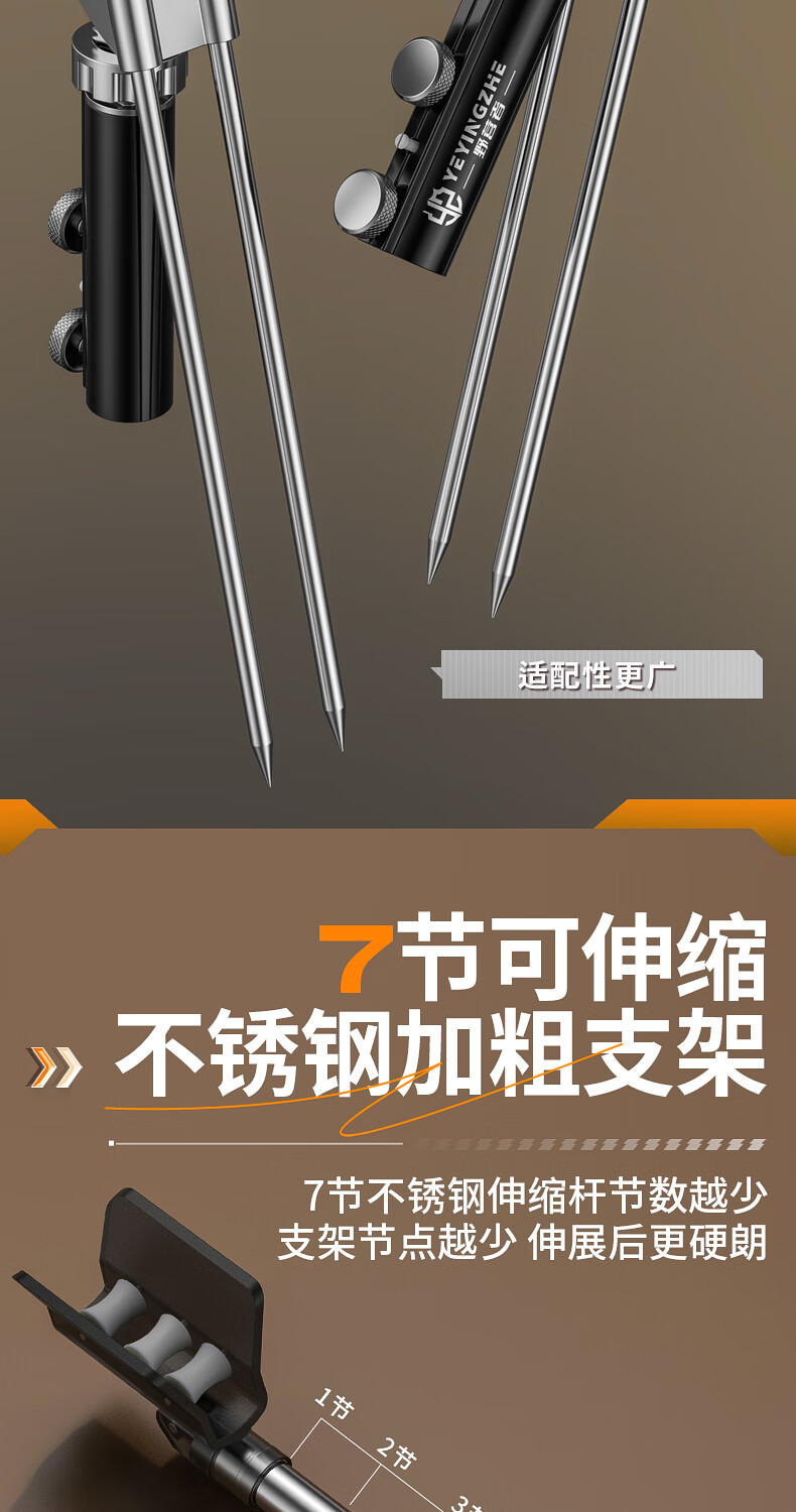 野营者不锈钢炮台支架加粗鱼竿支架钓鱼架杆架竿地插手竿支撑架 2.4m 地插款【双夜光滚轮回弹头】+S型夜光快拆后挂