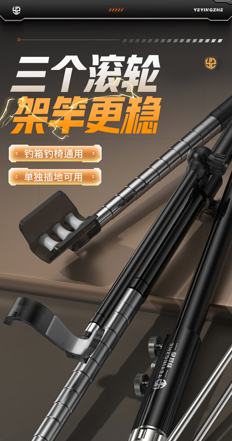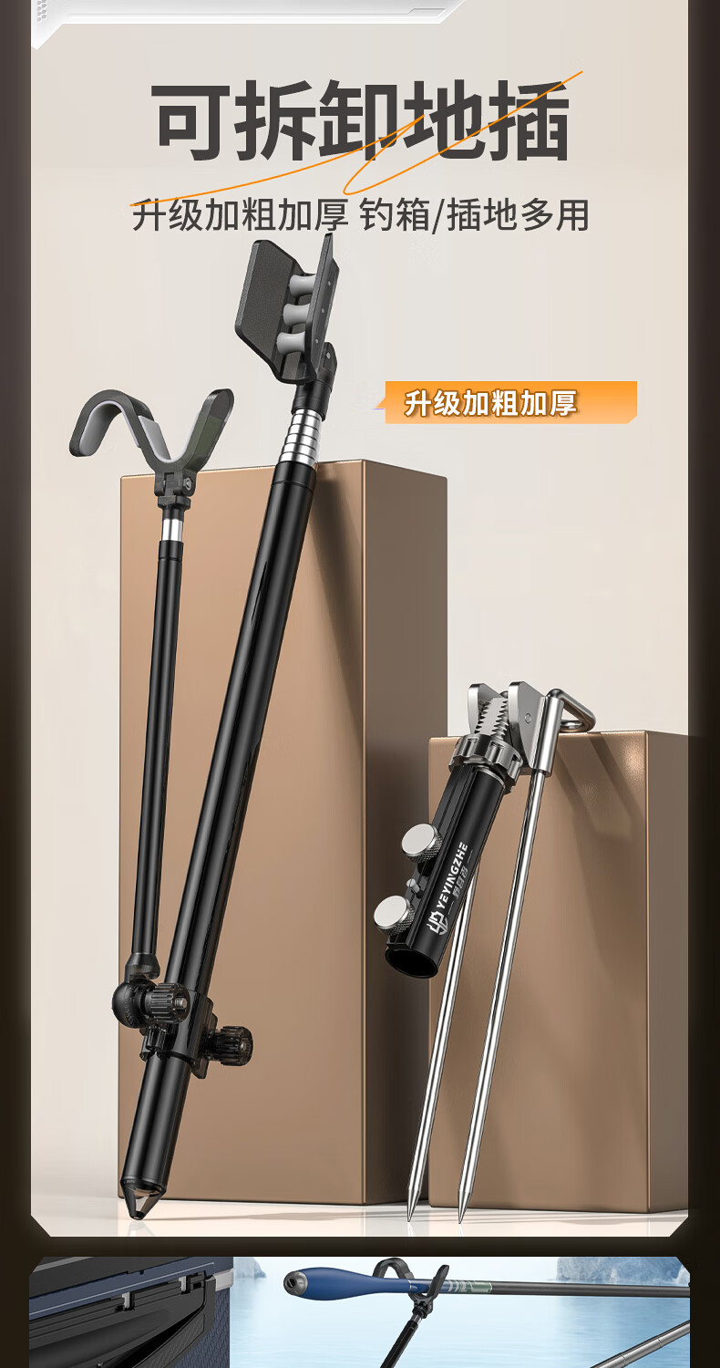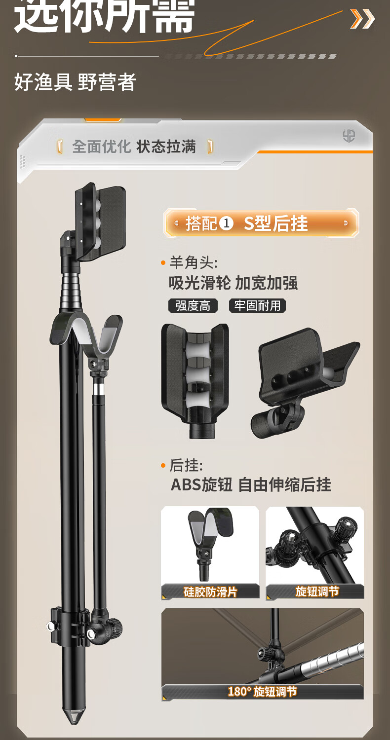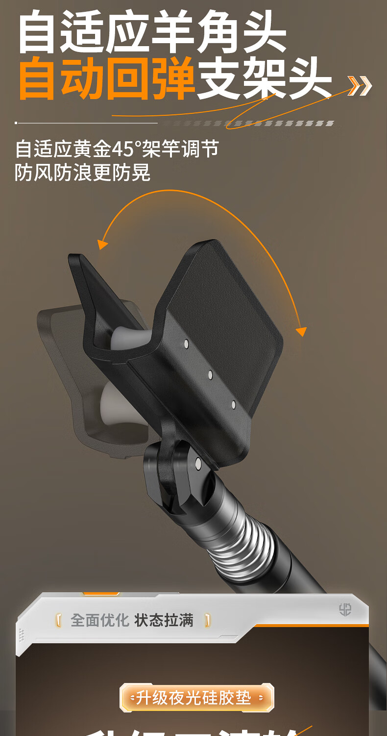 野营者不锈钢炮台支架加粗鱼竿支架钓鱼架杆架竿地插手竿支撑架 2.4m 地插款【双夜光滚轮回弹头】+S型夜光快拆后挂