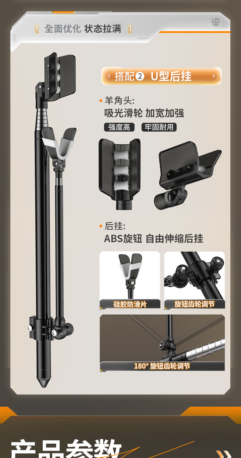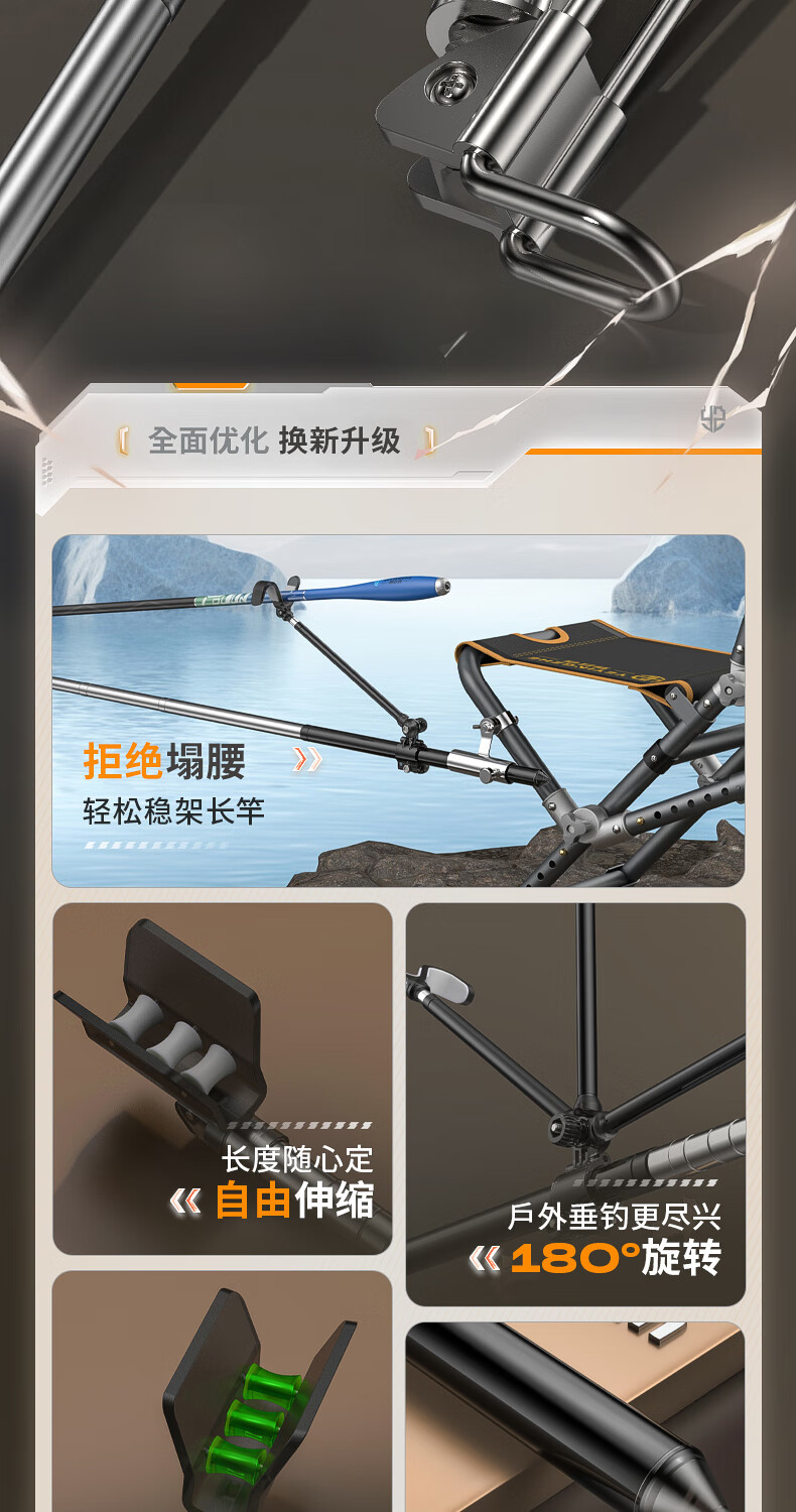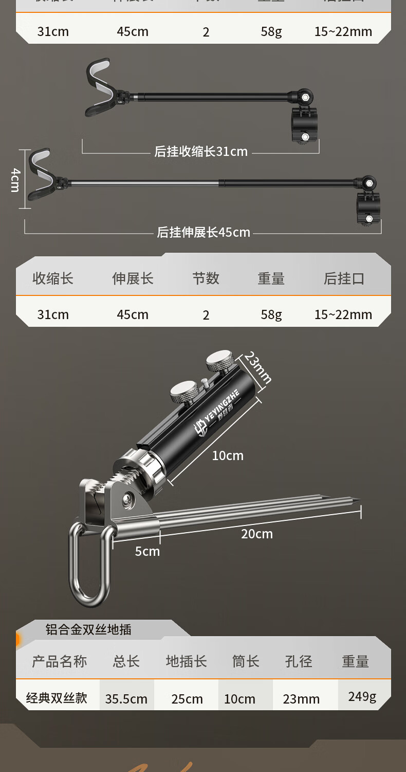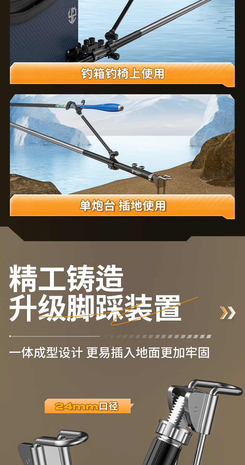 野营者不锈钢炮台支架加粗鱼竿支架钓鱼架杆架竿地插手竿支撑架 2.4m 地插款【双夜光滚轮回弹头】+S型夜光快拆后挂
