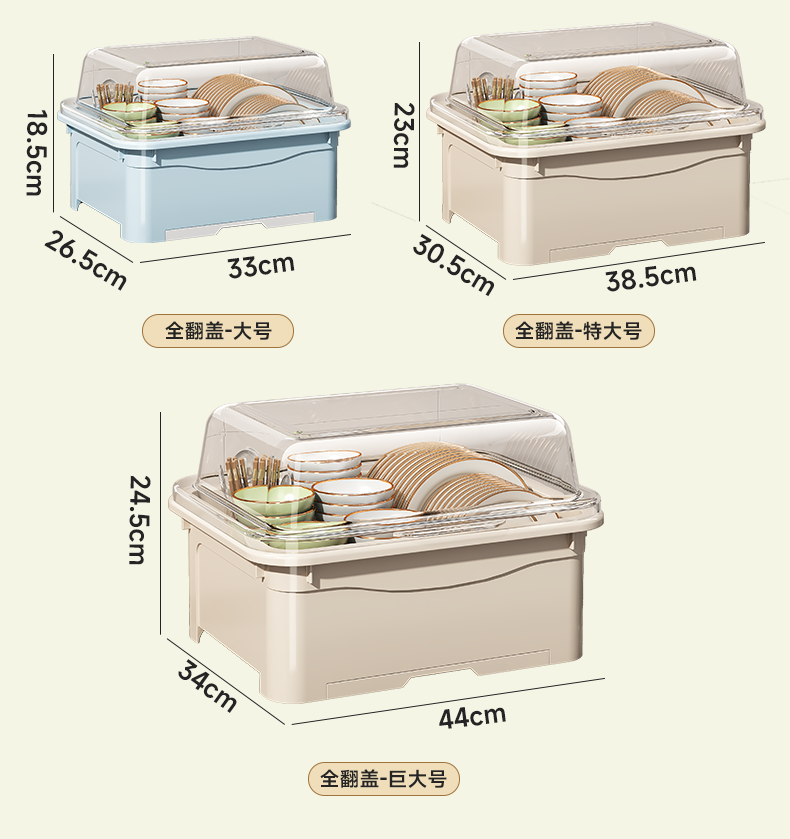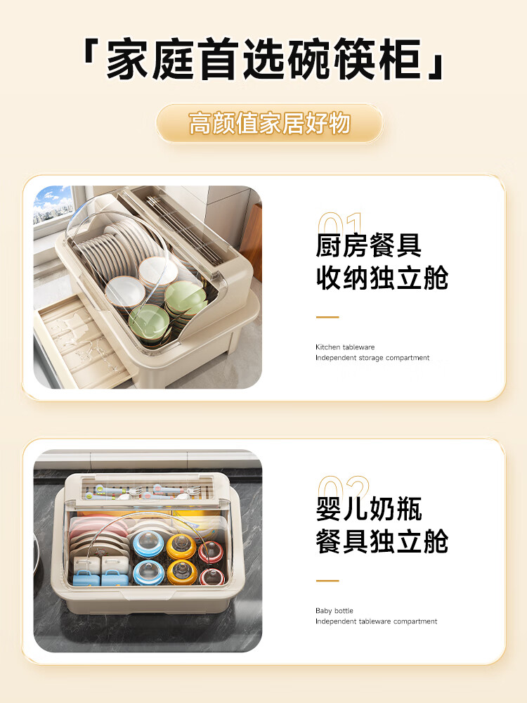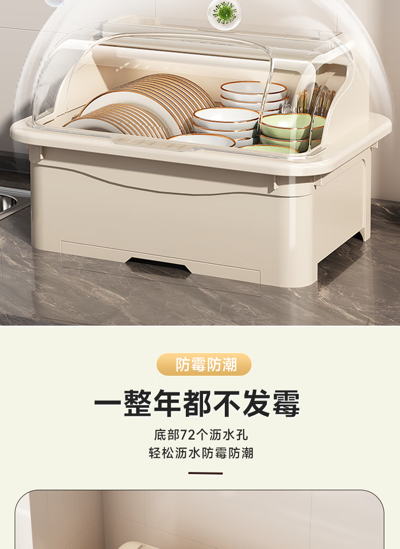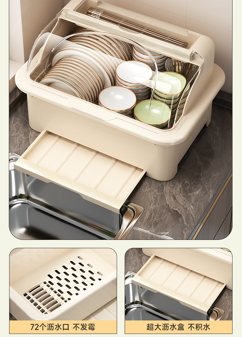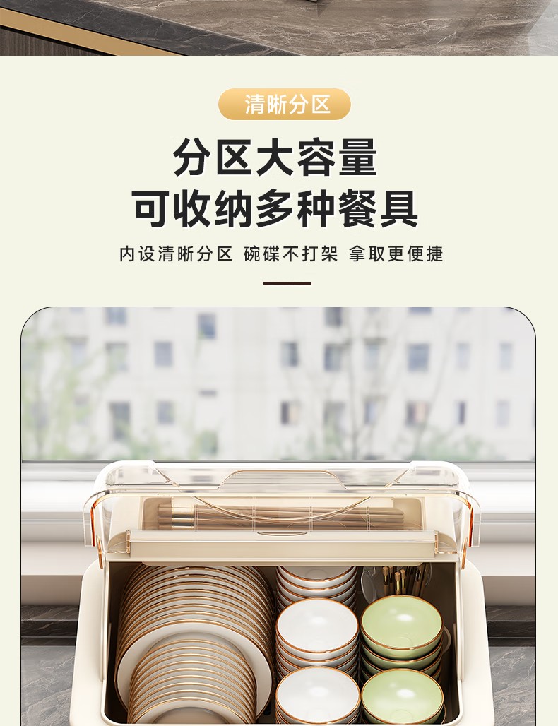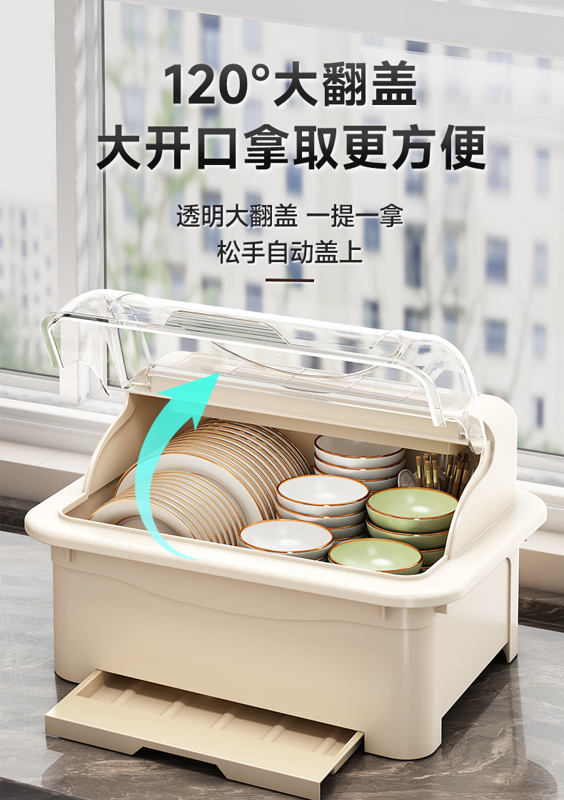 纳份爱厨房碗筷收纳盒家用碗柜碗碟收纳架沥水架带盖宝宝奶瓶餐具收纳盒 【巨大号】半翻盖碗柜-奶油白 大容量-防虫防油烟