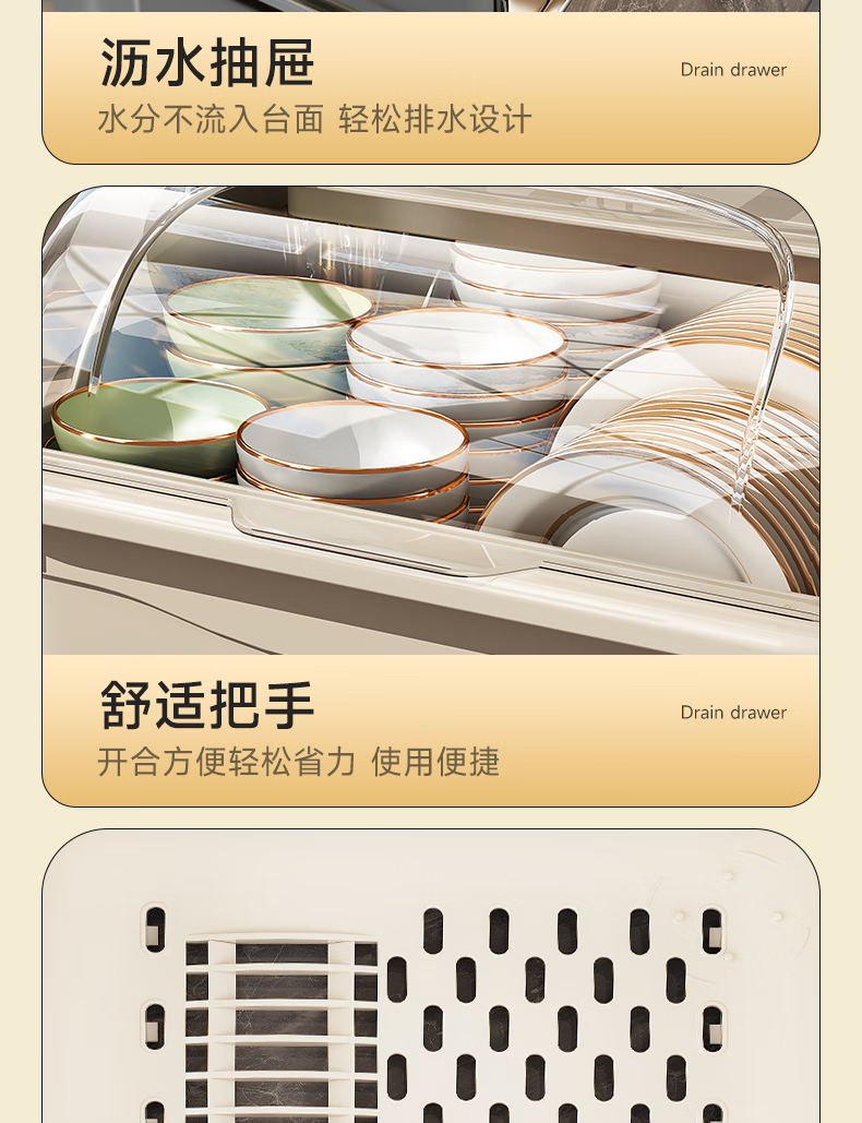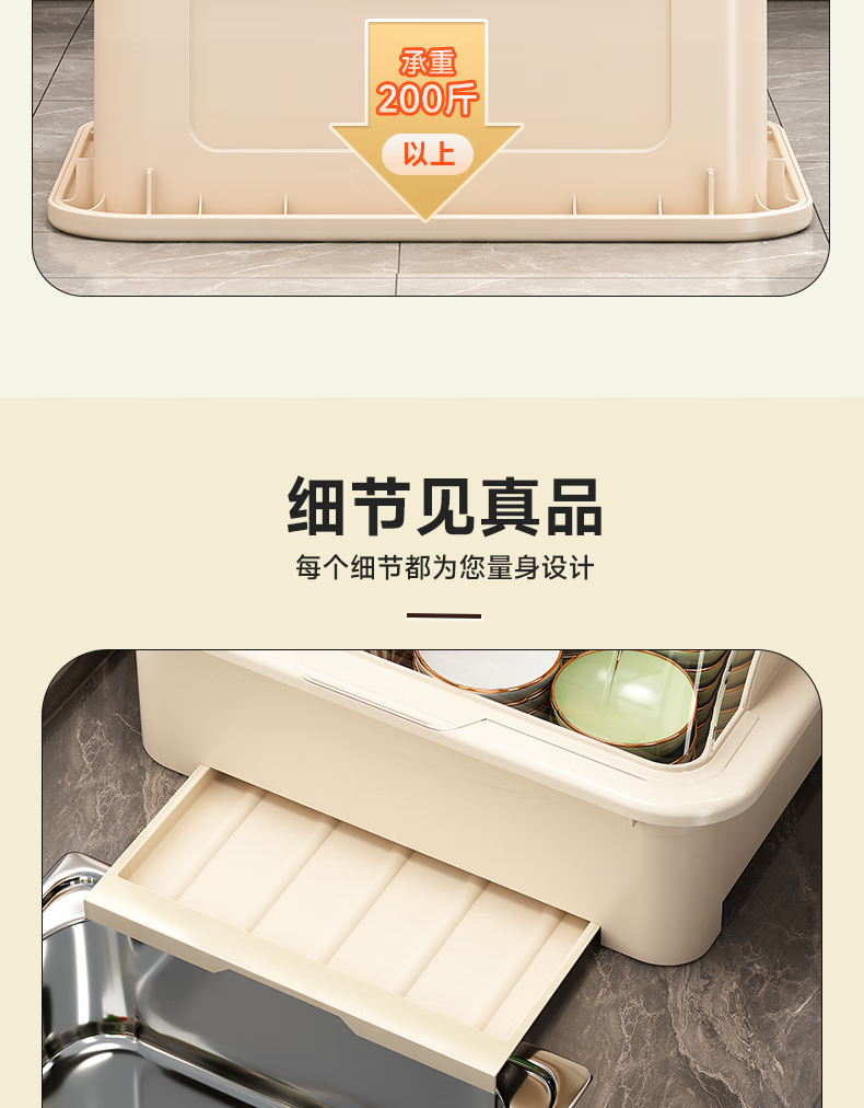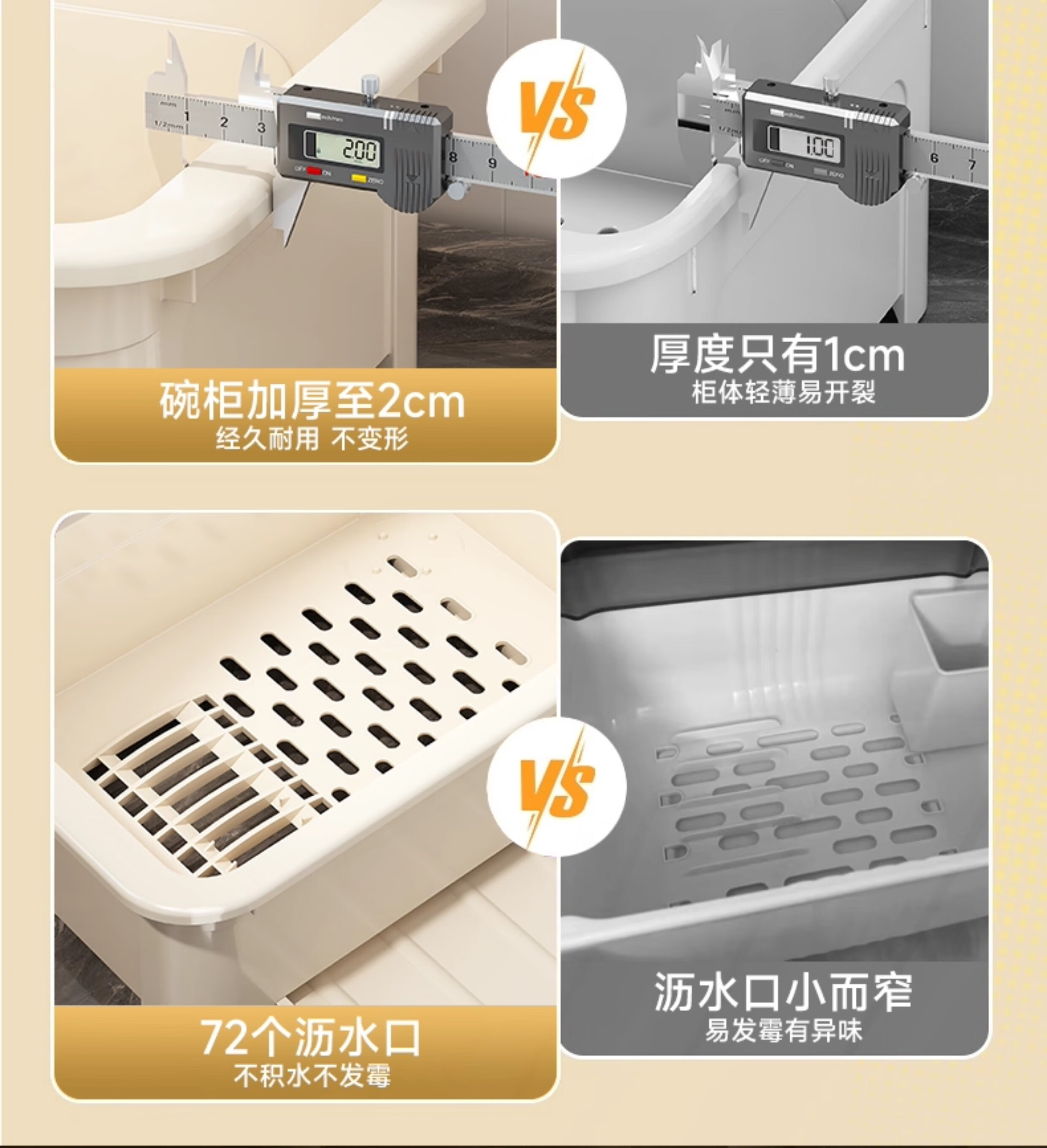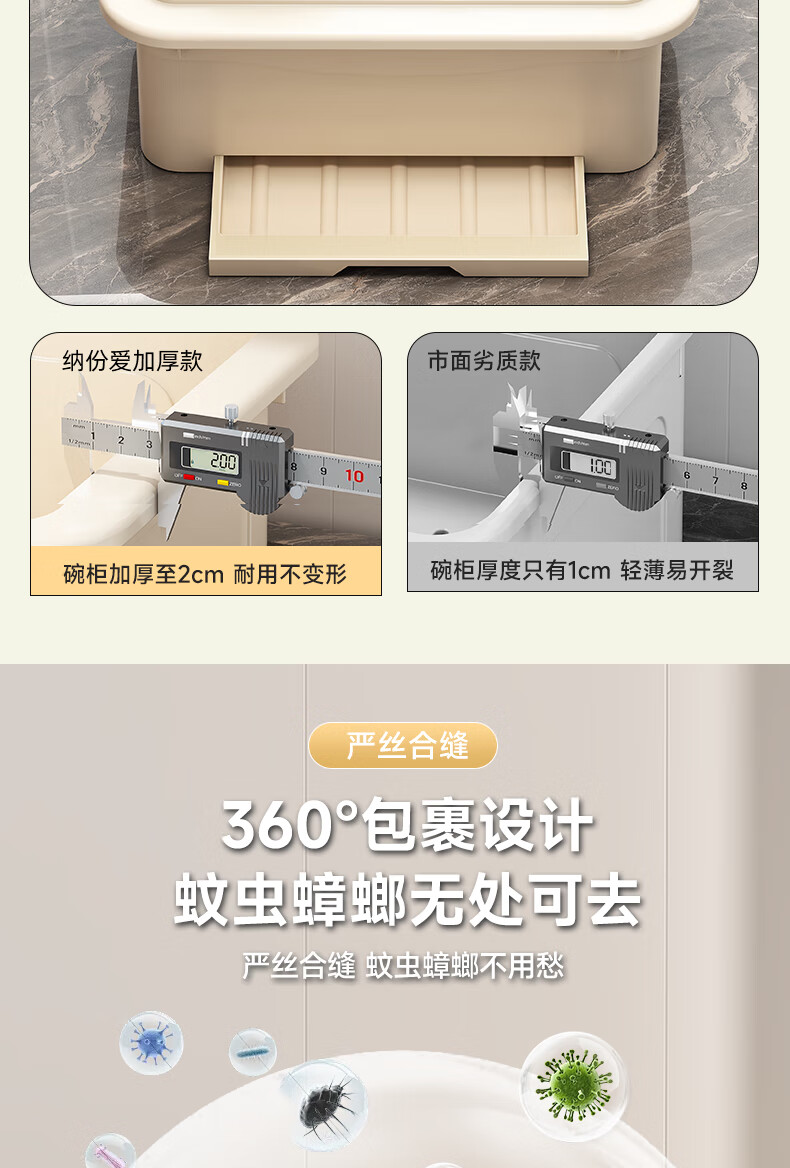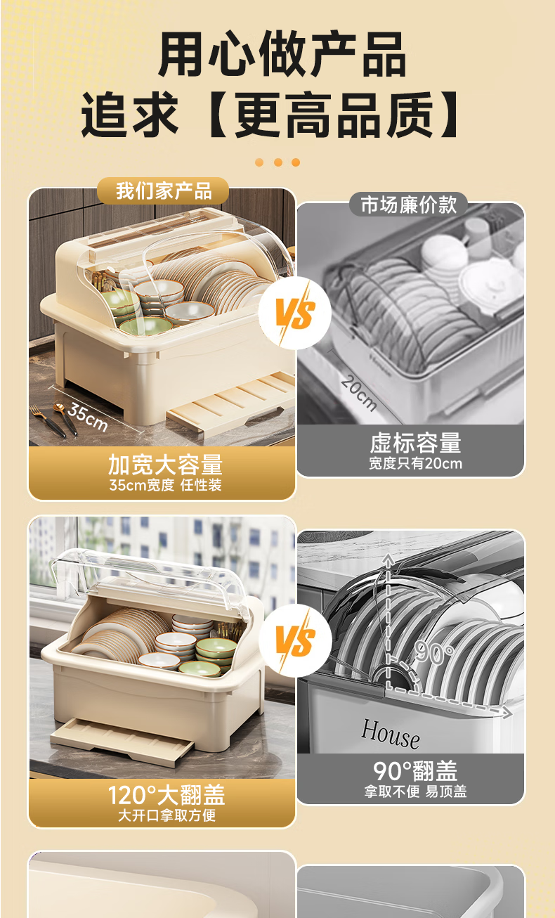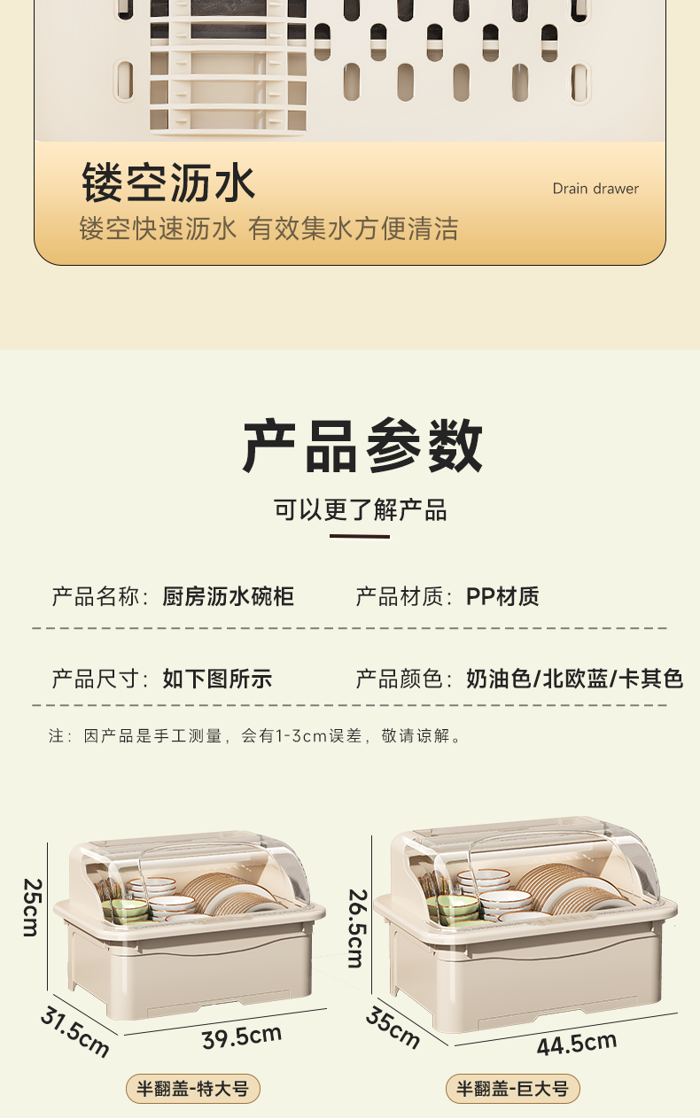 纳份爱厨房碗筷收纳盒家用碗柜碗碟收纳架沥水架带盖宝宝奶瓶餐具收纳盒 【巨大号】半翻盖碗柜-奶油白 大容量-防虫防油烟