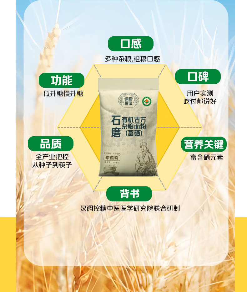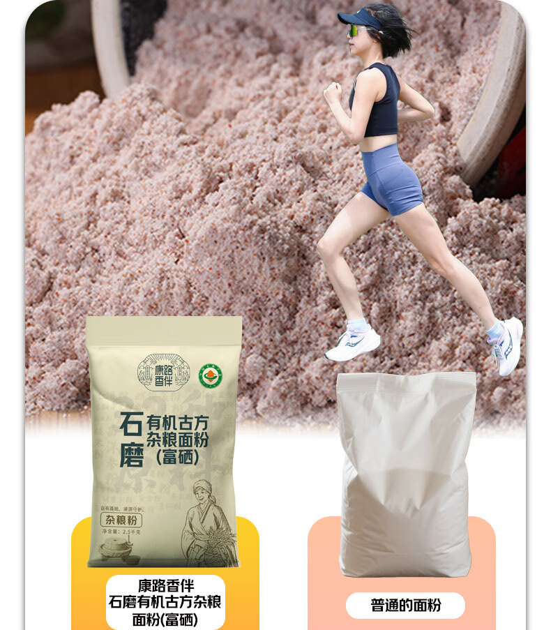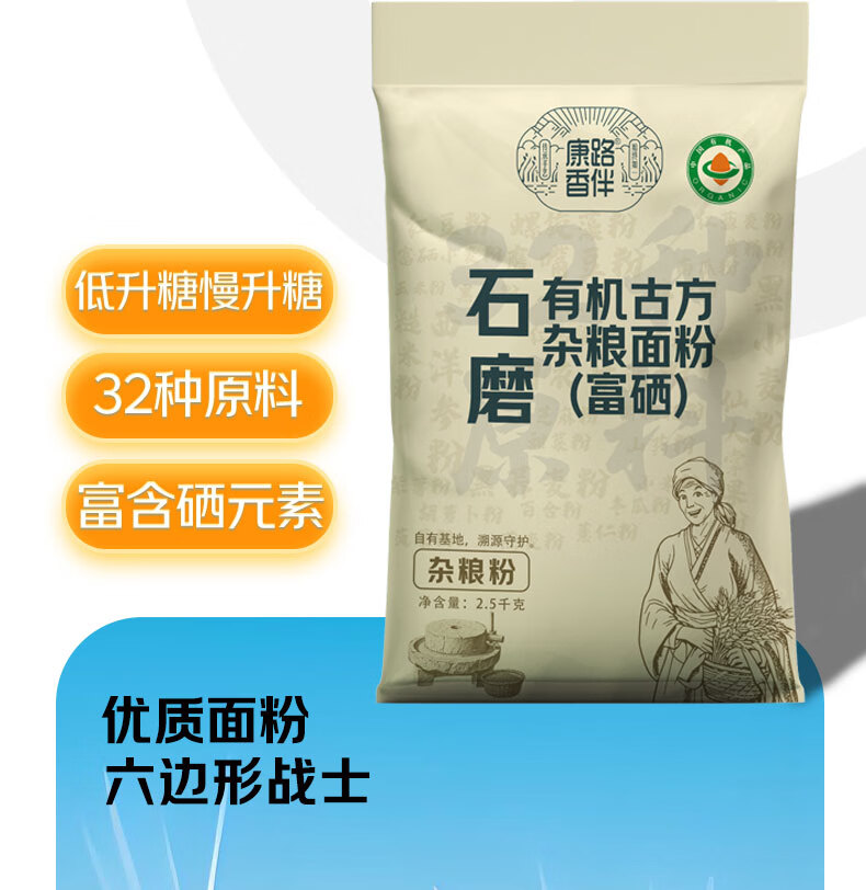 康路香伴石磨有机富硒杂粮面粉5斤 中筋家用面粉无蔗糖馒头包子面条多用途