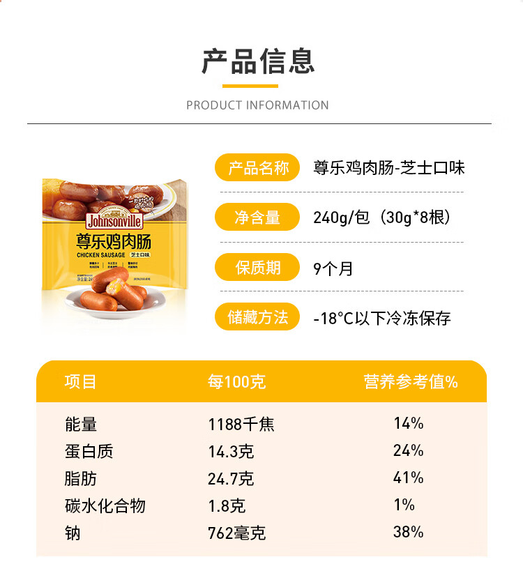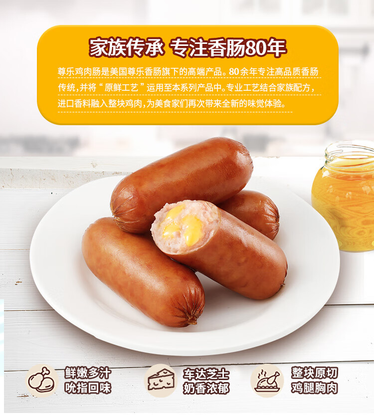 尊乐芝士肠240g 香肠爆汁脆皮8根烤肠鸡肉肠火腿早餐热狗肠烧烤食材