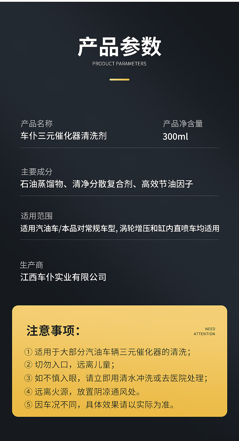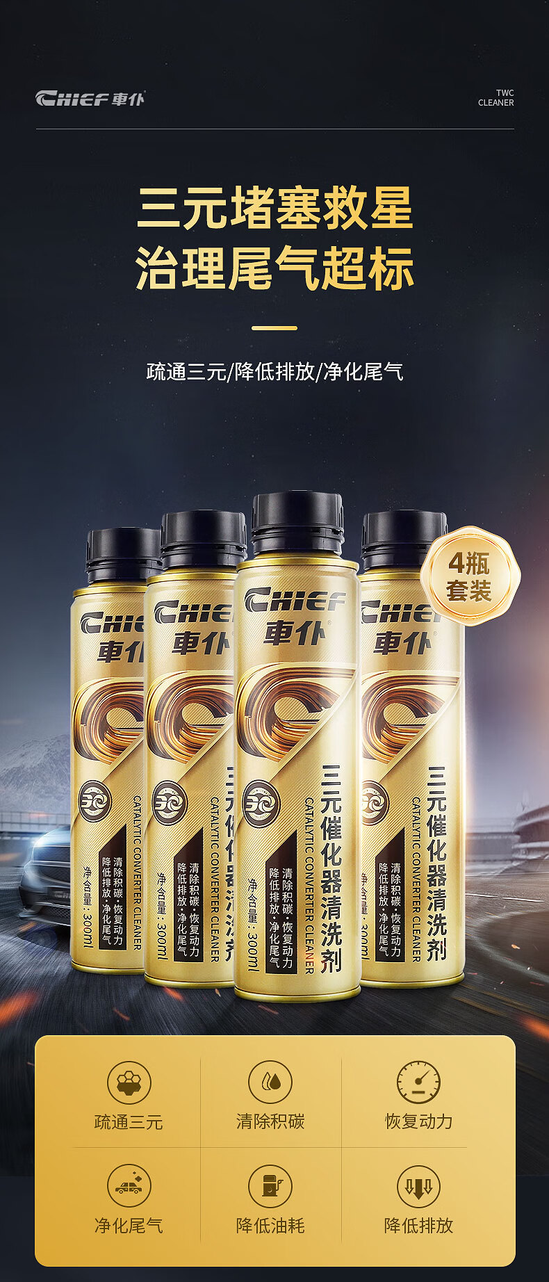 車仆金装三元催化清洗剂300ML免拆发动机内部除积碳氧传感器4瓶装
