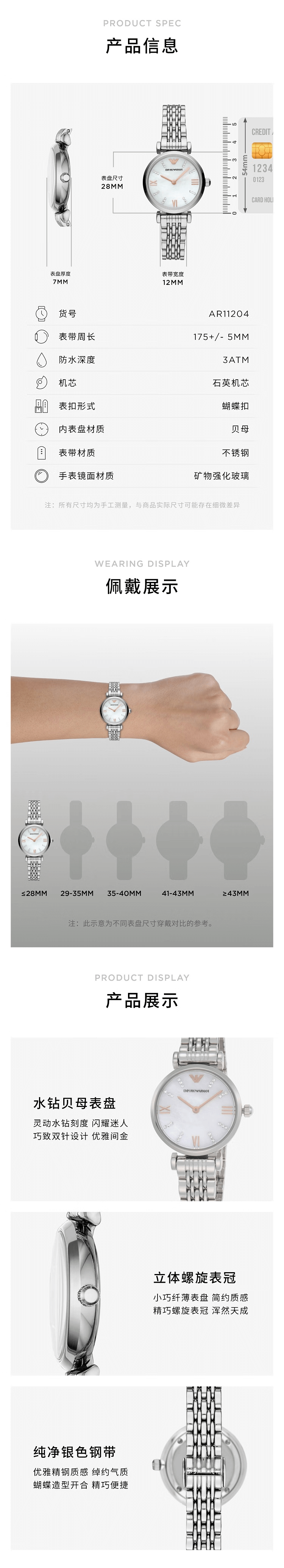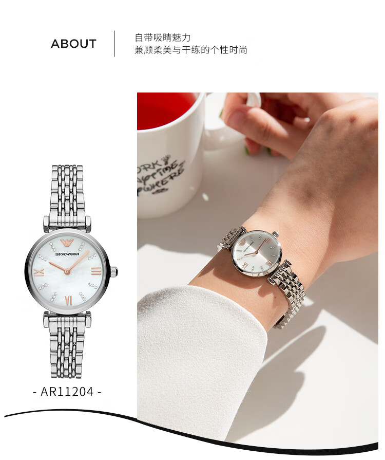 安普里奥·阿玛尼(Emporio Armani)手表女士 白月光系列贝母表盘石英女表生日礼物送女友AR11204