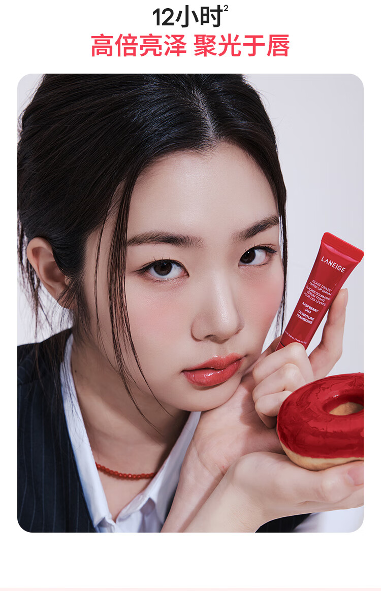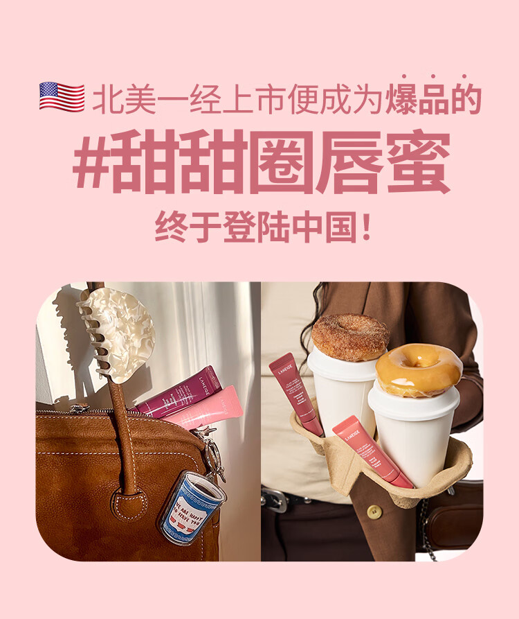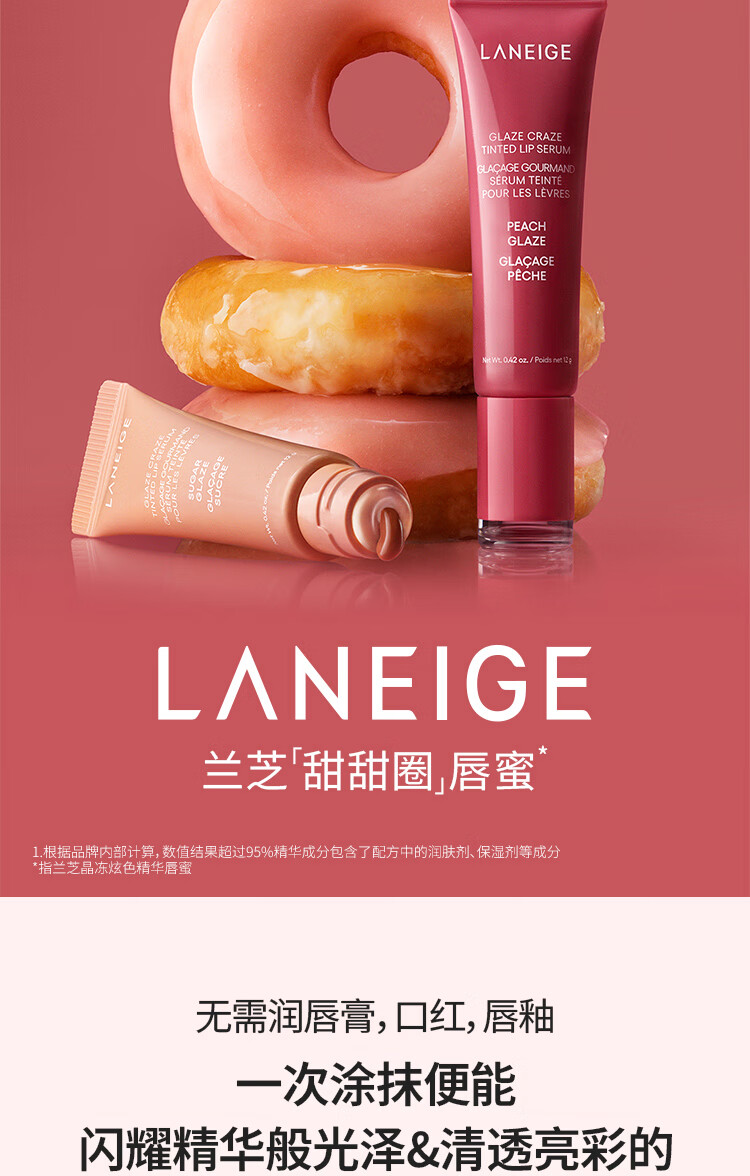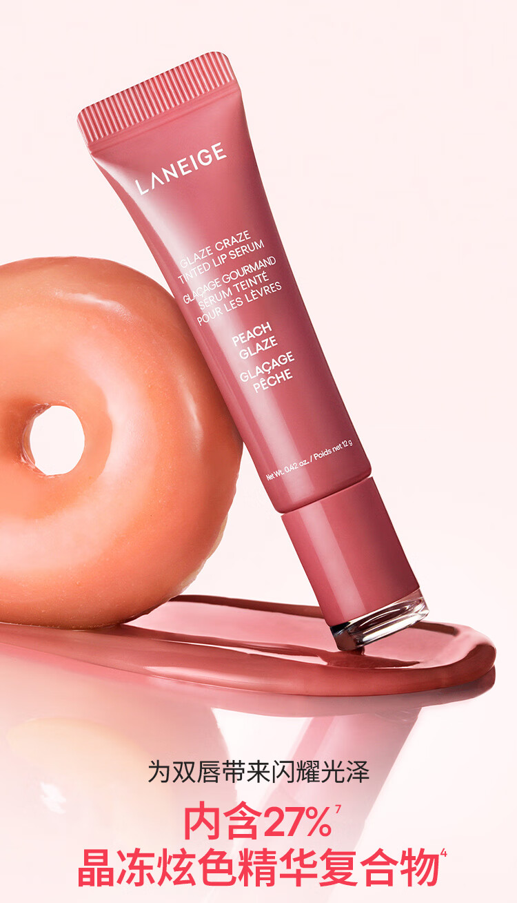 兰芝甜甜圈晶冻炫色精华唇蜜桃桃釉光味12g 保湿清透嘟嘟唇生日礼物