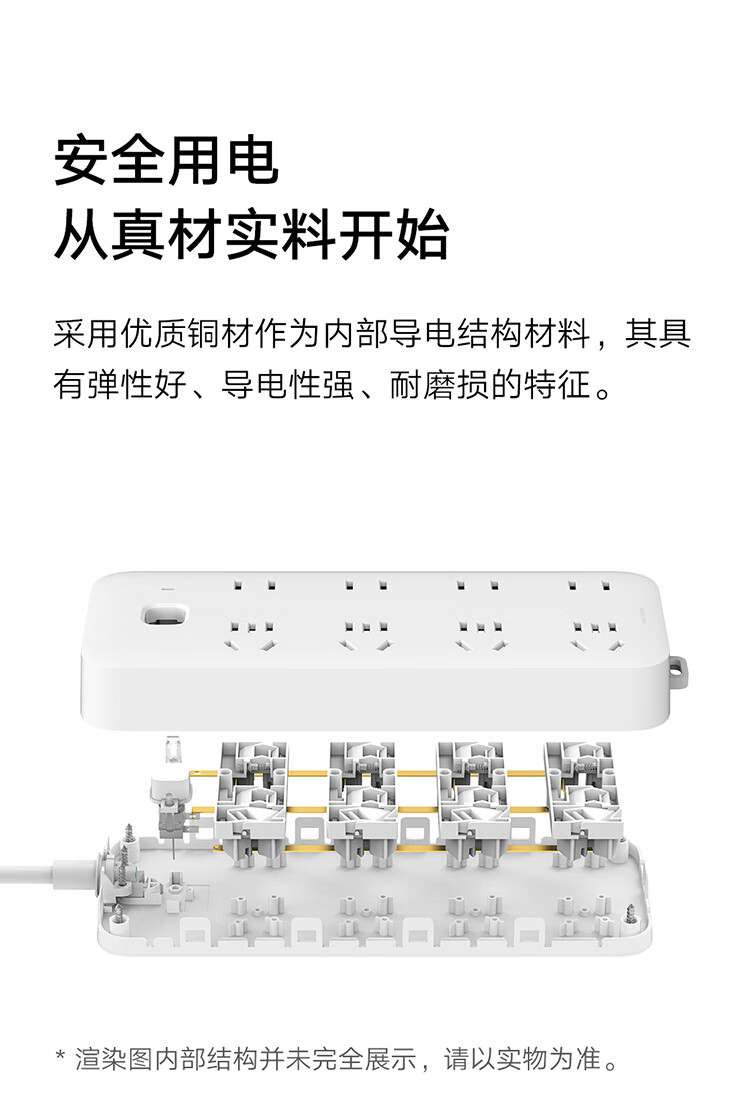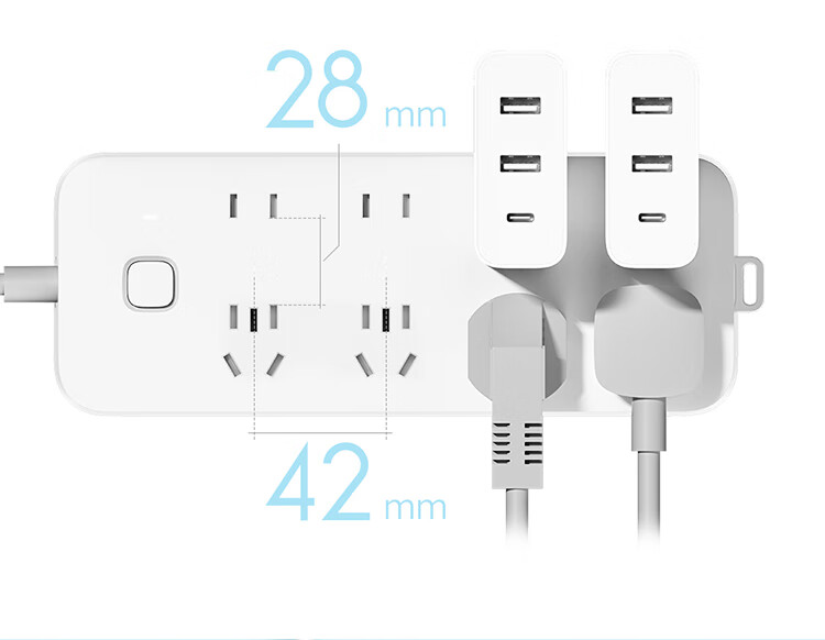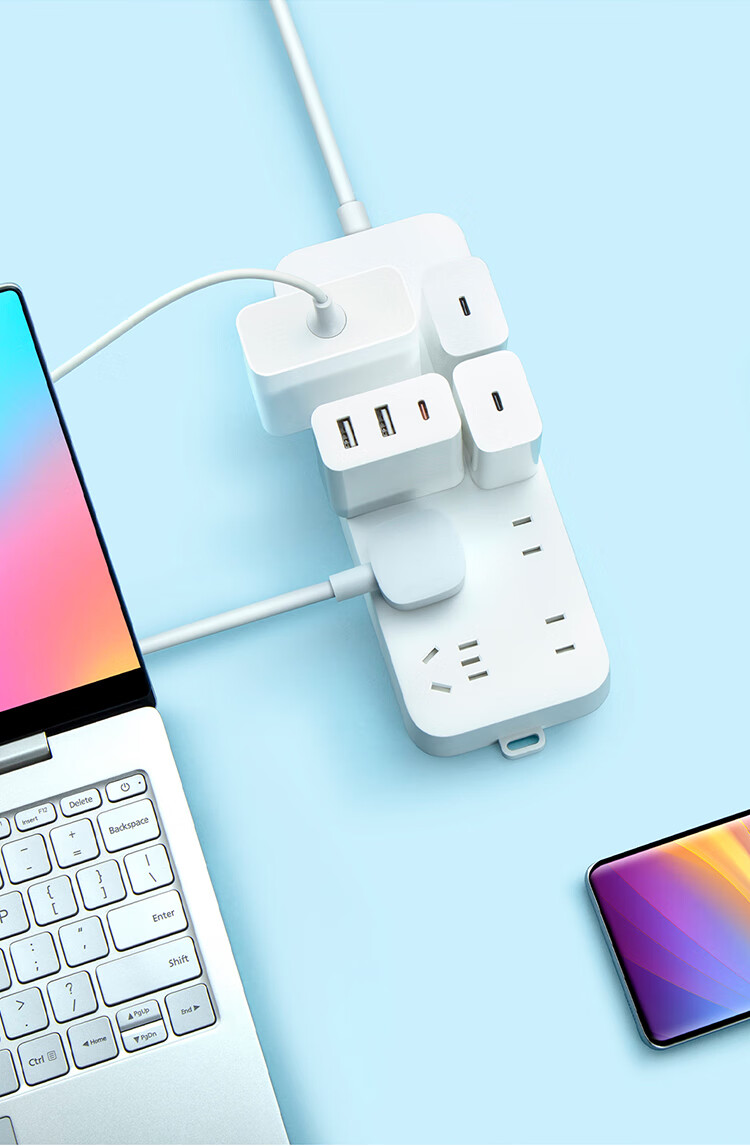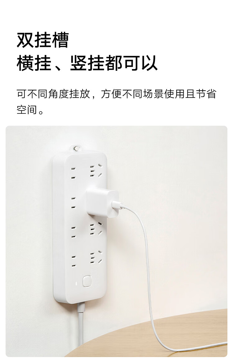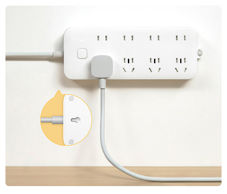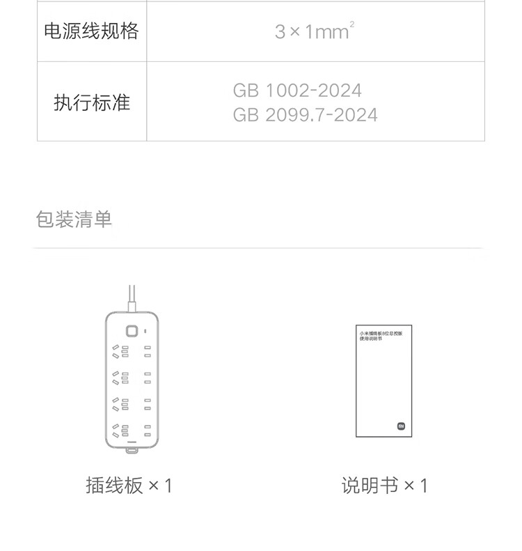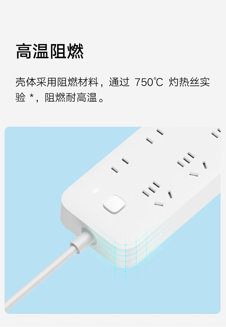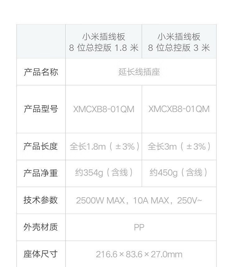 小米(MI)插线板8位总控开关插排插座插板一转多插座全长1.8m适用小米17小米电暖器/热水器/电热毯