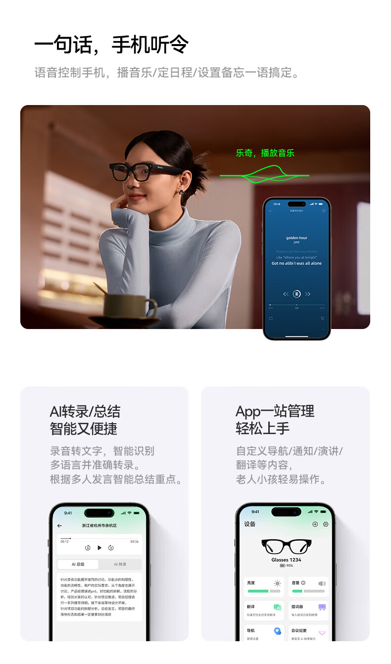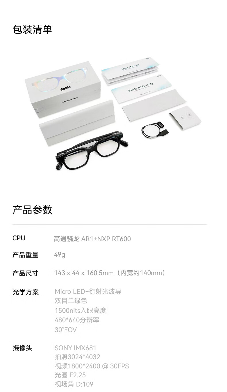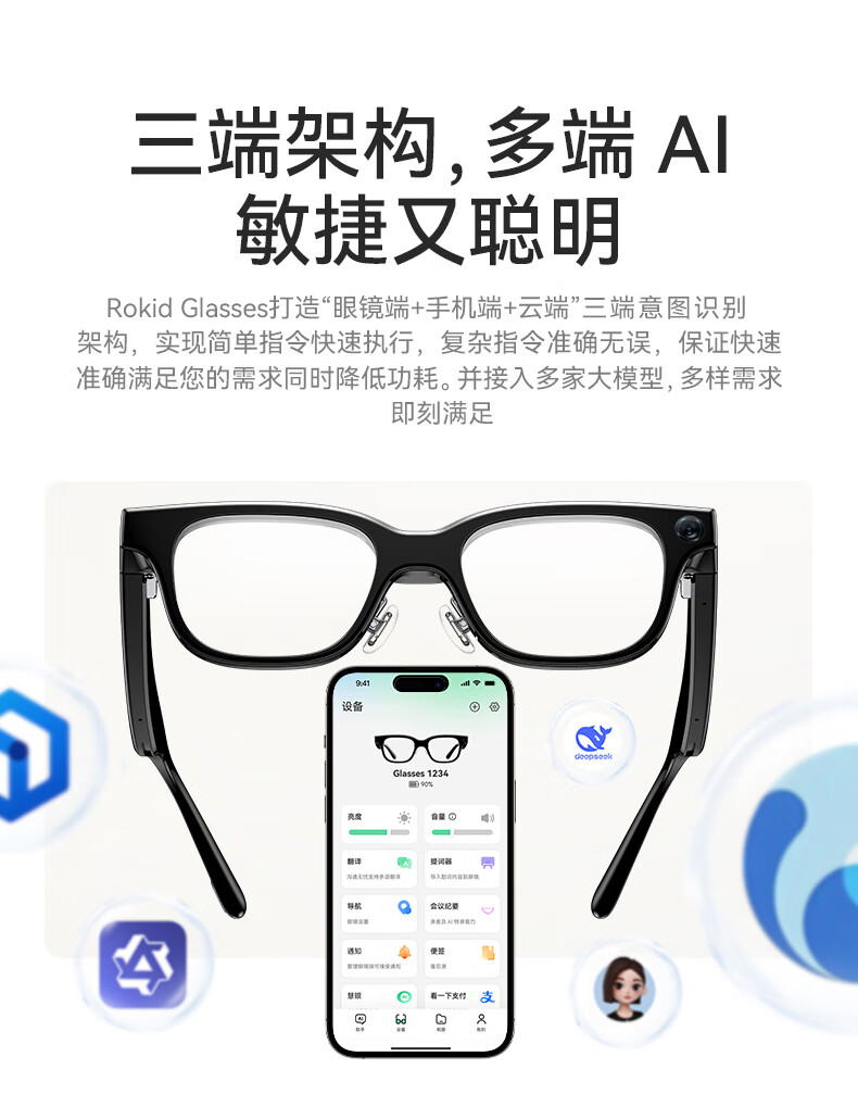 ROKID Glasses乐奇AI眼镜 智能眼镜【现货速发】AR眼镜 AI助手 拍摄眼镜 影视飓风TIM 翻译提词器导航